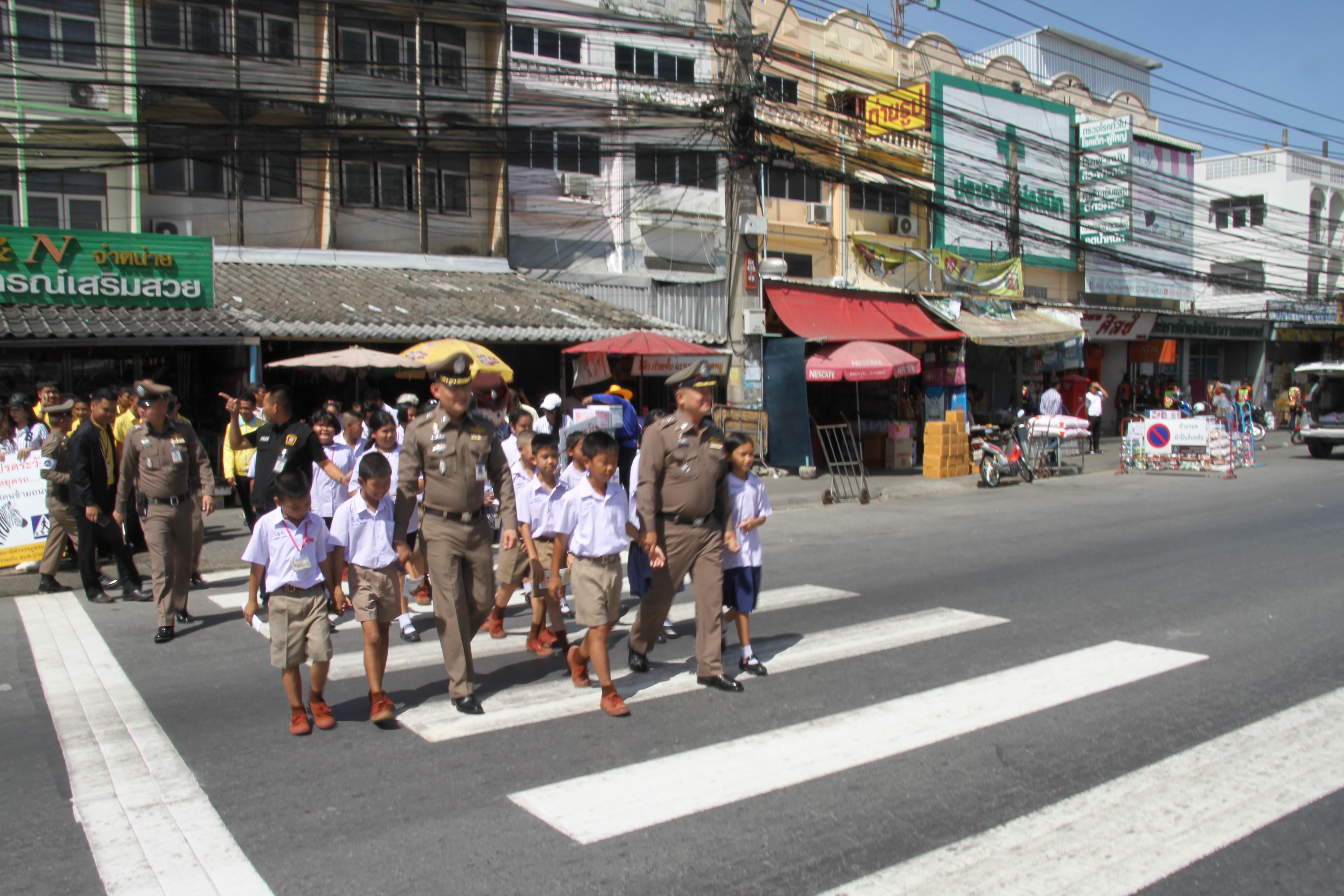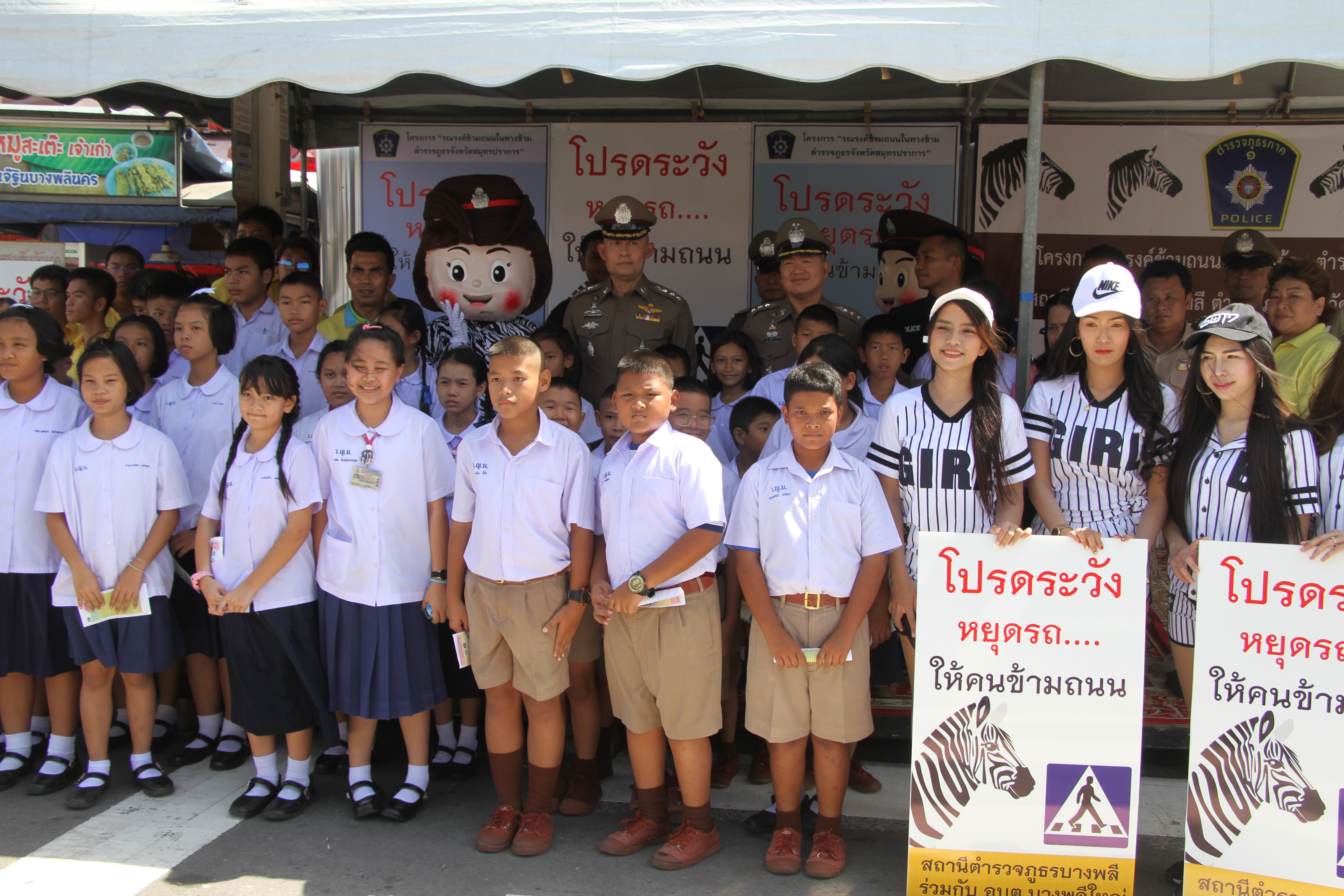 สมุทรปราการ ตำรวจบางพลีเปิดโครงการณรงค์ข้ามถนนในทางม้าลายสร้างจิตสำนึกให้เยาวชน