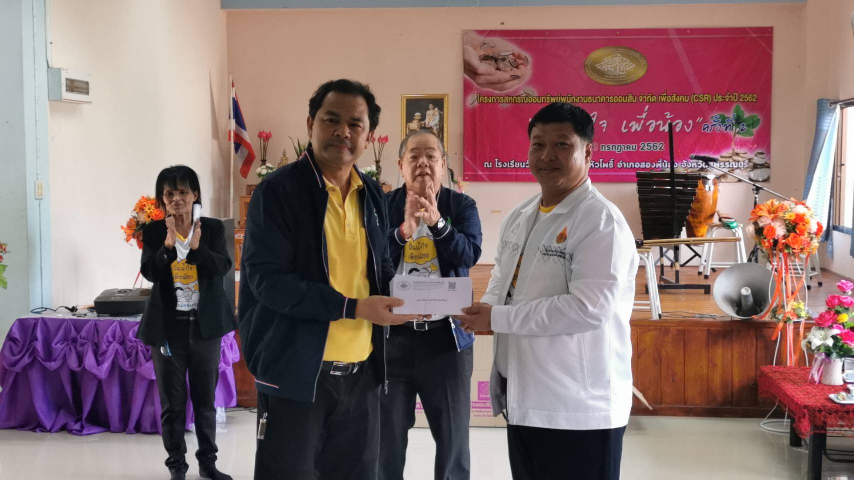 ที่ จ.สุพรรณบุรี สหกรณ์ออมทรัพย์พนักงานธนาคารออมสิน จำกัด ได้จัดโครงการสหกรณ์ออมสินเพื่อสังคม (CSR) กิจกรรม “ปันน้ำใจ เพื่อน้อง” ครั้งที่ 2 ประจำปี 2562 ณ โรงเรียนวัดบางบอน ตำบลหัวโพธิ์ อำเภอสองพี่น้อง จ.สุพรรณบุรี โดยมอบทุนการศึกษาจำนวน 281 ทุนเป็นเงินจำนวนเงิน 172,000 บาท ทุนอาหารกลางวันจำนวน 50,000 บาท ทุนอุปกรณ์การศึกษา 30,000 บาท อุปกรณ์กีฬาจำนวน 10,000 บาท คอมพิวเตอร์ และเครื่องปรับอากาศ จำนวน 100,000 บาท รวมเป็นเงินทั้งสิ้น 362,000 บาท นอกจากนี้ยังมอบกระปุกออมสินซึ่งมีตราสัญลักษณ์ ร.10 ให้แก่คณะครูและเด็กนักเรียนไว้เก็บออมเงินอีกด้วย