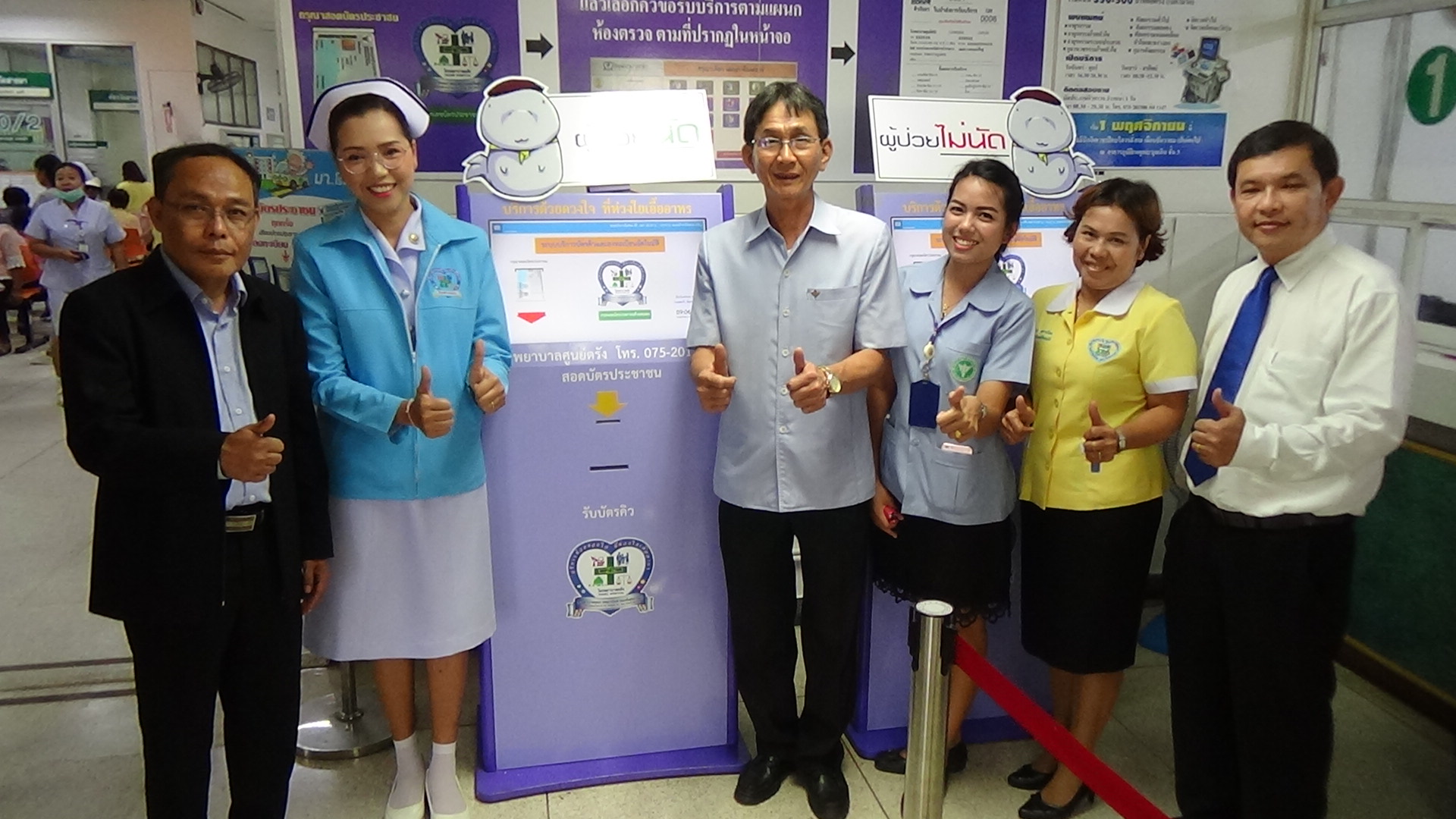 ทั้งนี้ ประชาชนสามารถนัดคิวตรวจรักษาล่วงหน้าผ่านเว็บไซต์ หรือไลน์ แอปพลิเคชัน MOPH Connect ซึ่งจะแจ้งเตือนคิวนัดล่วงหน้า 1 วัน เมื่อมารับบริการที่แผนกผู้ป่วยนอก ใช้บัตรประชาชนลงทะเบียนผู้ป่วยผ่าน “ตู้อัจฉริยะ” (Kiosks) สามารถรับบัตรคิวอัตโนมัติ ตรวจสอบนัด สิทธิการรักษา มีระบบการแจ้งเตือนคิวรับบริการ รับยา ค่าใช้จ่ายผ่าน Line Notify ผู้ป่วยไม่ต้องกังวลและสามารถทำกิจกรรมอื่นได้ระหว่างรอคิว เมื่อสแกนคิวอาร์โค๊ดที่ซองยา ผู้ป่วยสามารถรับฟังการใช้ยาที่ได้รับผ่าน smart phone ซึ่งมี 4 ภาษา จำนวน 13 ชื่อยา 37 รายการ รวมทั้งมีบริการคลินิกแพทย์เฉพาะทางนอกเวลา และคลินิกหมอครอบครัวอีก 6 แห่งกระจายอยู่ในชุมชนเมือง เป็นเครือข่ายเชื่อมโยงข้อมูลการส่งต่อรักษากับโรงพยาบาลตรังโดยให้บริการตรวจโรคทั่วไป อาชีวเวชกรรม แพทย์แผนไทยและแพทย์ทางเลือก นอกจากนี้ ได้เปิดบริการจัดส่งยาทางไปรษณีย์สำหรับกลุ่มผู้ป่วยเรื้อรัง คลินิกอายุรกรรมโรคประสาท เพื่อลดภาระการเดินทาง และลดความแออัดในโรงพยาบาล ซึ่งปกติมีผู้เข้ารับบริการถึง 2,200 – 2,300 คนต่อวัน นอกจากนี้ ได้เยี่ยมชมการดำเนินงานโรงพยาบาลส่งเสริมสุขภาพตำบลนาโยงใต้ ซึ่งเป็นหน่วยปฐมภูมิในทีมคลินิกหมอครอบครัวโรงพยาบาลส่งเสริมสุขภาพตำบลโคกหล่อ เครือข่ายโรงพยาบาลตรัง ให้บริการงานรักษาพยาบาล ส่งเสริมสุขภาพ ควบคุมโรค คลินิกพิเศษโรคเรื้อรัง ทันตกรรม แพทย์แผนไทยและกายภาพบำบัด ให้กับชาวบ้านในชุมชน ให้เข้าถึงการบริการและลดการไปรับบริการในโรงพยาบาลที่ไม่จำเป็น