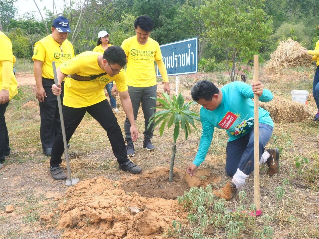 ในเวลาต่อมาได้ร่วมปลูกต้นไม้กับผู้มาร่วมกิจกรรม ประกอบด้วยกระสุนเม็ดสัก 700 ลูก ต้นยางนา 100 ต้น ต้นมะค่าโมง 100 ต้น ต้นมะขาม 100 ต้น พร้อมทั้งมีการสาธิตระบบ AGS Root Zone Watering System “นวัตกรรมการปลูกต้นไม้” ด้วยการทำธนาคารน้ำใต้ดิน ของเทศบาลตำบลหนองมะโมง ซึ่งเป็นการปลูกต้นไม้แบบใหม่ เหมาะกับภาวะฝนทิ้งช่วง หรือในสภาพพื้นที่แห้งแล้ง และ อธิบดี สถ. จะประสานขอให้นายชาตรี๊ ศรีวิชาฐา นายก อบต.เก่าขาม จ.อุบลราชธานี มาช่วยแก้ไขปัญหาน้ำแห้งแล้ง สระน้ำแห้งผากด้วยการทำธนาคารน้ำใต้ดินให้พื้นที่เขาขยายมีน้ำอุดมสมบูรณ์โดยด่วนต่อไป