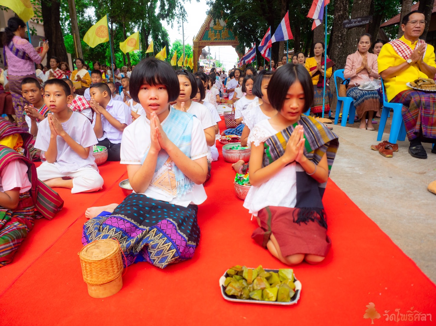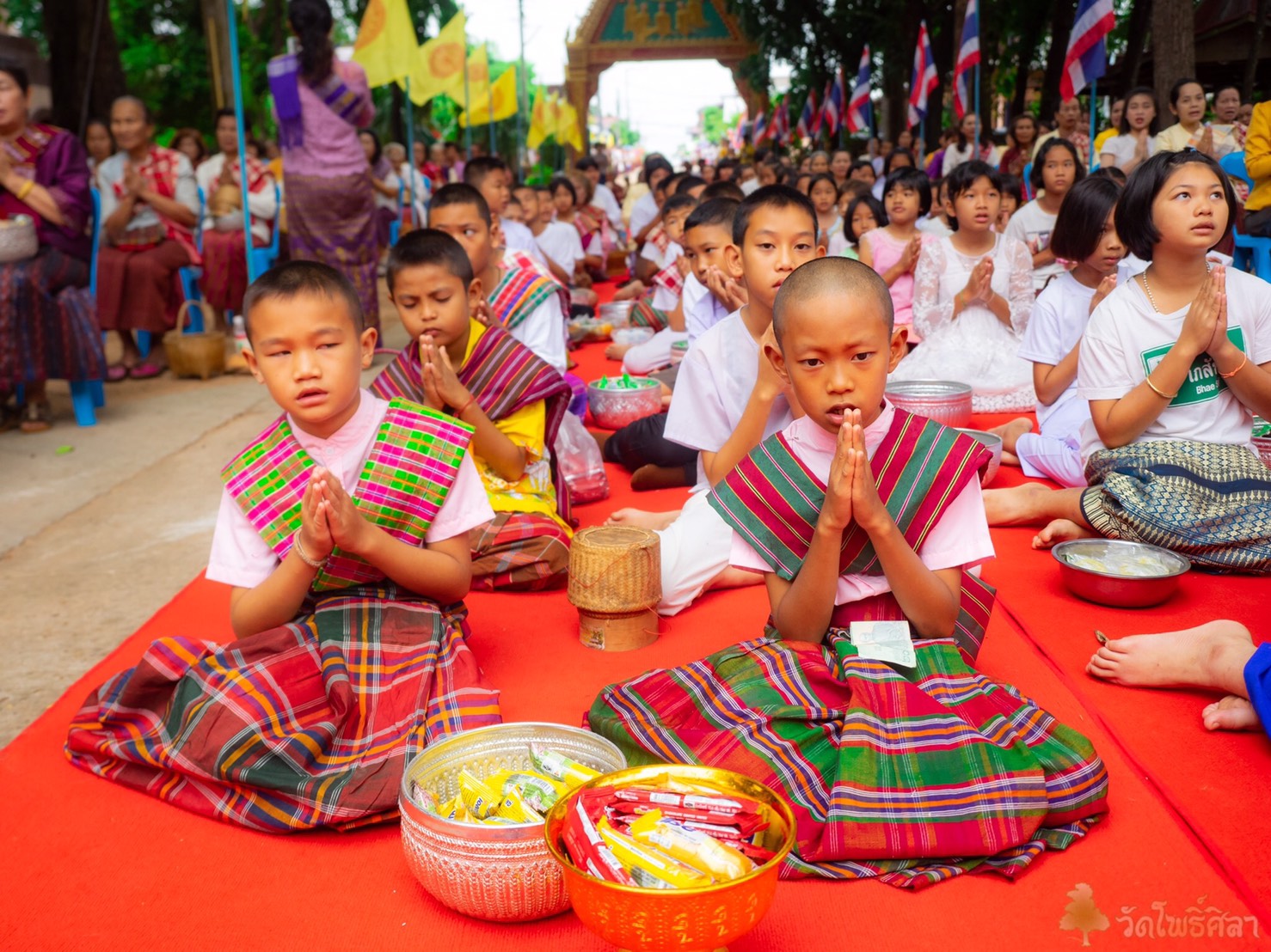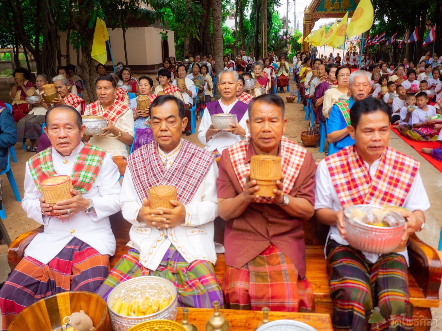 อำนาจเจริญ ทำบุญตักบาตร ถนนสายวัฒนธรรมบ้านเปือย นุ่งชิ่นหมี่ สวมโสร่งไหม ห่มสไบเฉียง พร้อมเพียงกันตักบาตรแรกของเดือนวัดโพธิ์ศิลา