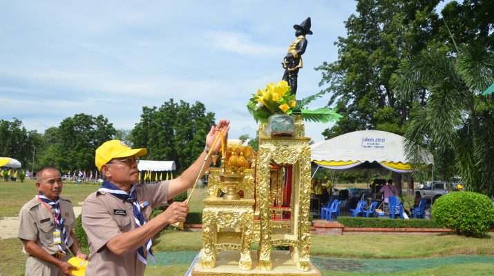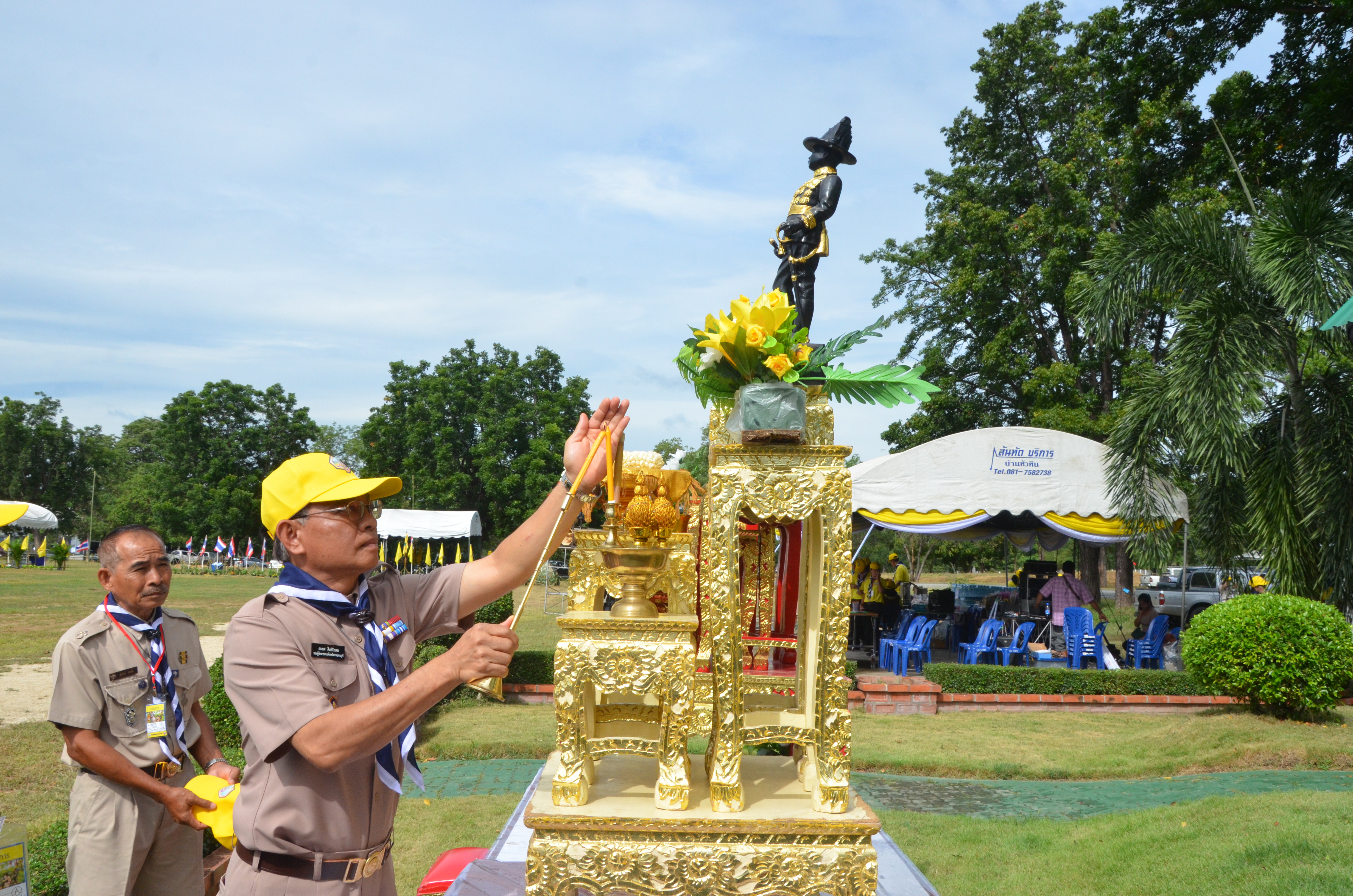 โดยรองผู้ว่าราชการจังหวัดกาญจนบุรี ประธานในพิธีได้เปิดกรวย วางพานพุ่ม ถวายราชสักการะหน้าพระบรมฉายาลักษณ์พระบาทสมเด็จพระเจ้าอยู่หัว ,จุดธูปเทียนบูชาพระรัตนตรัยและวางพวงมาลาจุดเครื่องทองน้อย ถวายราชสดุดีพระบาทสมเด็จพระปรเมนทรมหาวชิราวุธ พระมงกุฎเกล้าเจ้าอยู่หัว พระผู้พระราชทานกำเนิดลูกเสือไทย ตามประเพณีที่ปฏิบัติร่วมน้อมรำลึกในพระมหากรุณาธิคุณ และแสดงความกตัญญูกตเวทิตาธรรม