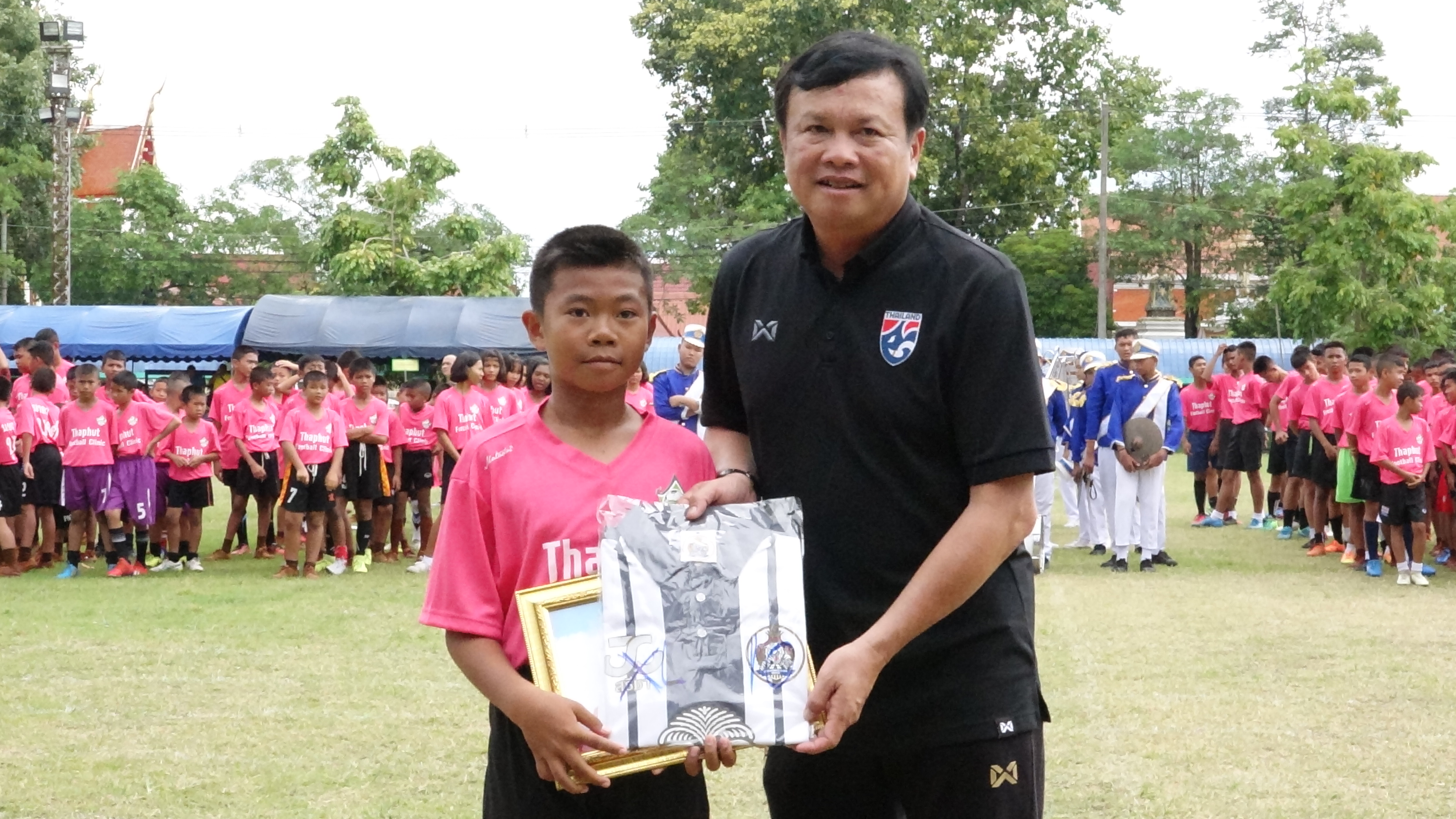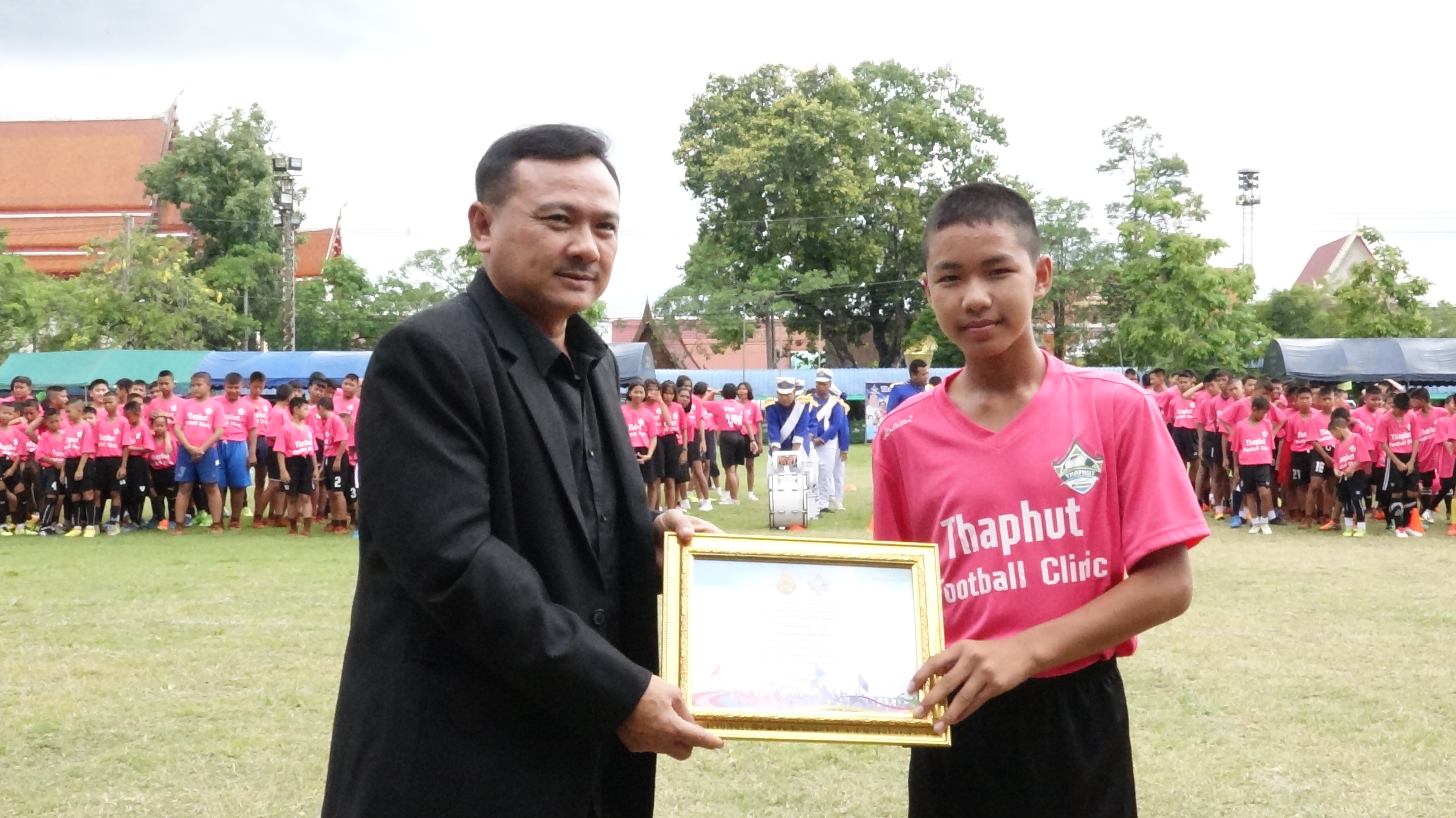 รวมทั้งโค๊ชทีมชาติไทย อีกหลายท่าน และนายจำรัส ตั้งตระกูลธรรม นายกเทศมนตรีเมืองไร่ขิง ที่ปรึกษาทีมฟุตบอล THAPHUTACADEMY FOOTBALL CLUB 2019 พร้อม คณะผู้บริหารเทศบาลฯ ร่วมมอบเกียรติบัตรเยาวชนนักเตะยอดเยี่ยม ซึ่งวัตถุประสงค์ของการจัดกิจกรรม 1.เพื่อพัฒนานักกีฬาฟุตบอลยาวชนของโรงเรียนให้มีการพัฒนาใกล้เคียงในระดับประเทศ 2.เพื่อส่งเสริมความสามัคคีและสัมพันธภาพที่ดีต่อกัน ให้มีความร่วมมือร่วมใจ ในช่วงที่มีการแข่งขันฯ