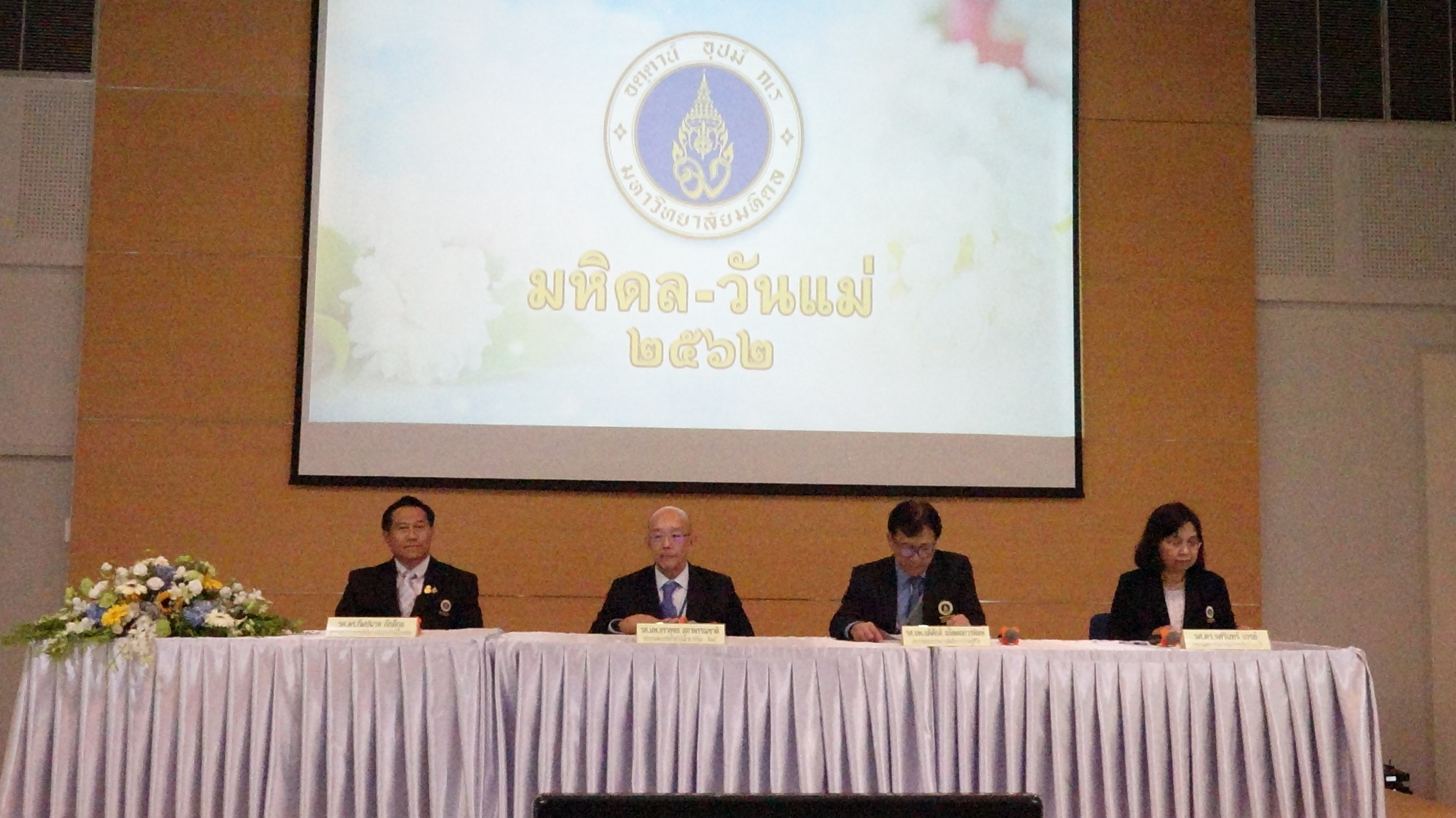 มหาวิทยาลัยมหิดลแถลงข่าวการประกาศผลการคัดเลือกแม่ดีเด่นประเภทต่างๆเนื่องในงาน “มหิดล-วันแม่” ประจำปี 2562 โดยมีรองศาสตราจารย์ นายแพทย์ สรายุทธ สุภาพรรณชาติ รักษาการแทนรองอธิการบดีฝ่ายบริหาร มหาวิทยาลัยมหิดล ในฐานะประธานคณะกรรมการดำเนินงาน “มหิดล-วันแม่” ประจำปี 2562เป็นประธานการแถลงข่าวประกาศผลการคัดเลือกแม่ดีเด่นประภทต่างๆ เนื่องในงาน “มหิดล-วันแม่” ประจำปี2562 พร้อมด้วย รองศาสตราจารย์ ดร.รศรินทร์ เกรย์ ผู้อำนวยการสถาบันวิจัยประชากรและสังคม ในฐานะประธานคณะกรรมการตัดสิน นายแพทย์อดิศักดิ์ ผลิตผลการพิมพ์ ผู้อำพวยกาสถาบันแห่งชาติเพื่อการพัฒนาเด็ก