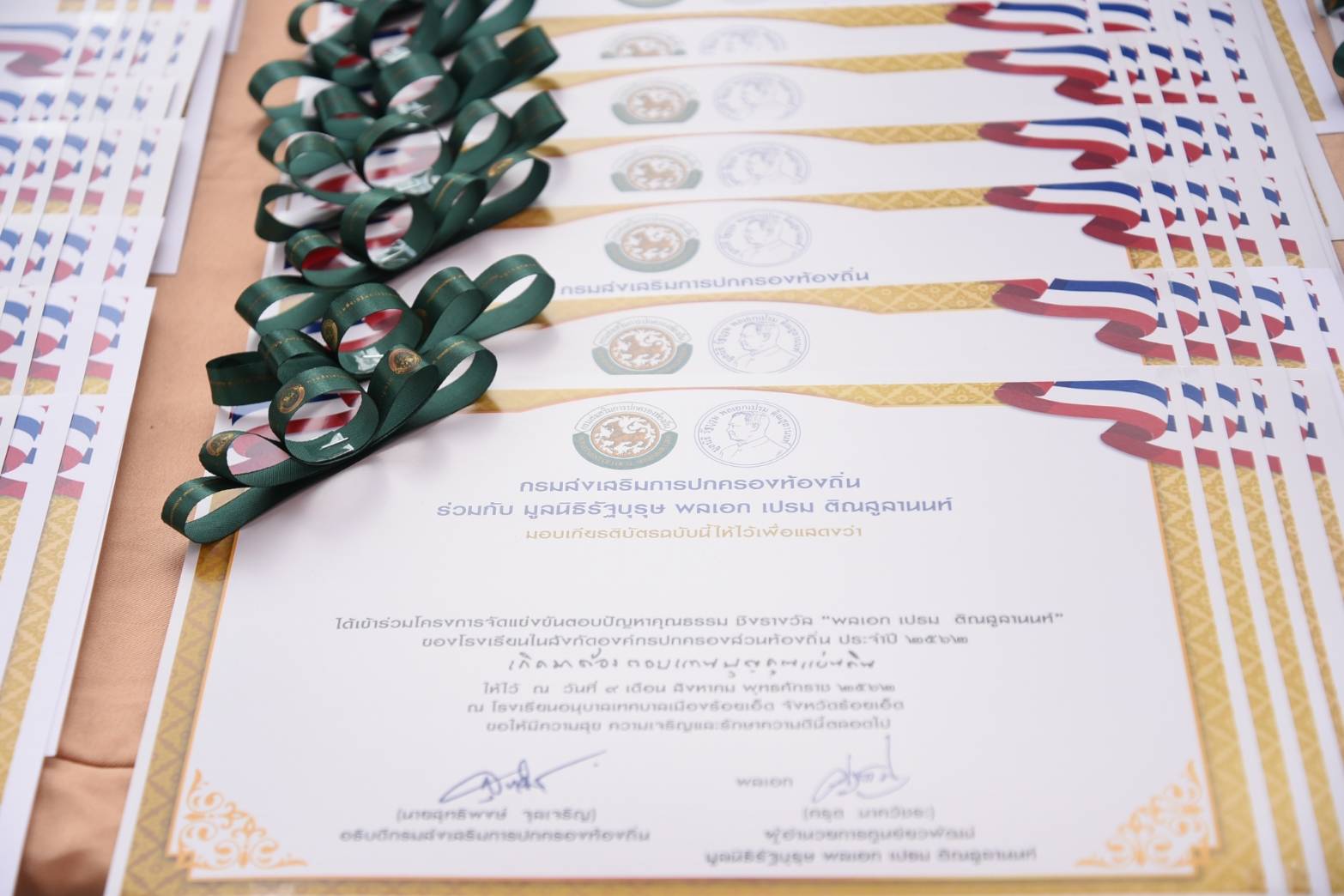 อธิบดี สถ. มอบรางวัลชนะเลิศตอบปัญหาคุณธรรม ชิงรางวัล “พลเอก เปรม ติณสูลานนท์” ประจำปี 2562 ชวนเยาวชนไทยปฏิบัติตามคำสอน พลเอก เปรม “เกิดมาต้องตอบแทนบุญคุณแผ่นดิน”