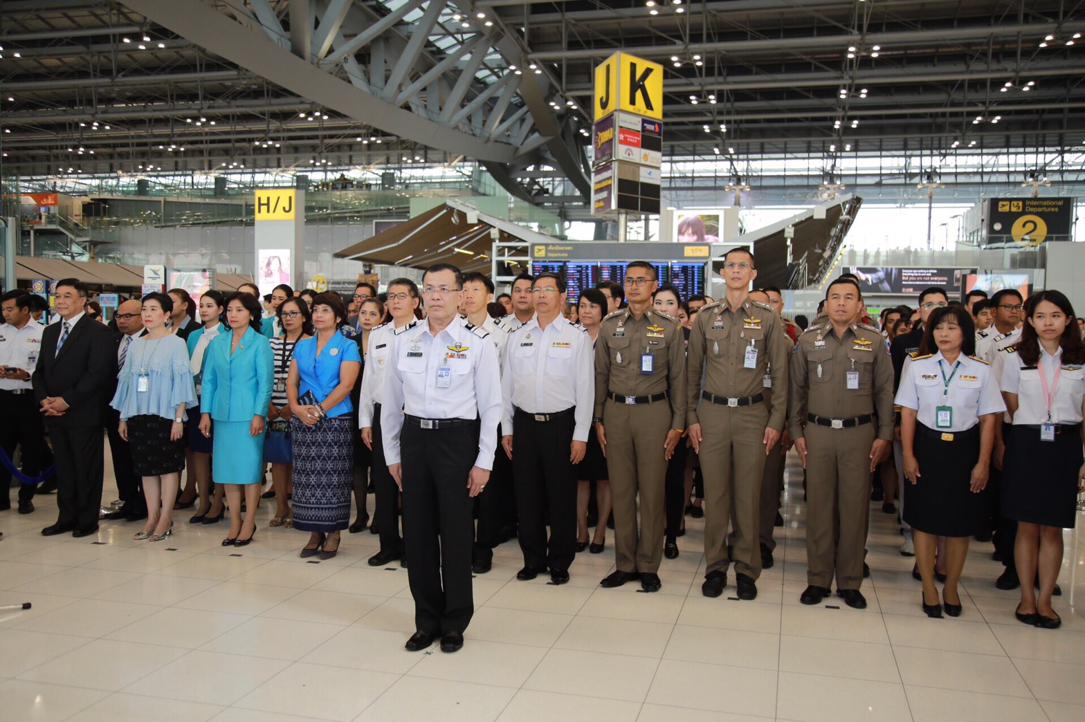 ***** เมื่อวันที่ 9 สิงหาคม 2562 นาวาอากาศโทสุธีรวัฒน์ สุวรรณวัฒน์ ผู้อำนวยการท่าอากาศยานสุวรรณภูมิ บริษัท ท่าอากาศยานไทย จำกัด (มหาชน) (ทอท.) เป็นประธานในพิธีวางพานพุ่มถวายพระพร กล่าวถวายราชสดุดีเฉลิมพระเกียรติ และกล่าวถวายพระพรชัยมงคล สมเด็จพระนางเจ้าสิริกิติ์ พระบรมราชินีนาถ พระบรมราชชนนี พันปีหลวง เนื่องในวโรกาสเฉลิมพระชนมพรรษา 87 พรรษา 12 สิงหาคม 2562 ในโอกาสนี้ มีผู้บริหารและพนักงาน ทสภ. พร้อมด้วยผู้แทนจากหน่วยงานราชการ สายการบิน ผู้ประกอบการที่ปฏิบัติงานภายใน ทสภ. เข้าร่วมพิธี และร่วมลงนามถวายพระพรฯ เพื่อแสดงออกถึงความจงรักภักดีโดยพร้อมเพรียงกัน ณ บริเวณด้านหน้าซุ้มนิทรรศการเฉลิมพระเกียรติฯ ห้องโถงผู้โดยสารขาออก ชั้น 4 ประตู 5