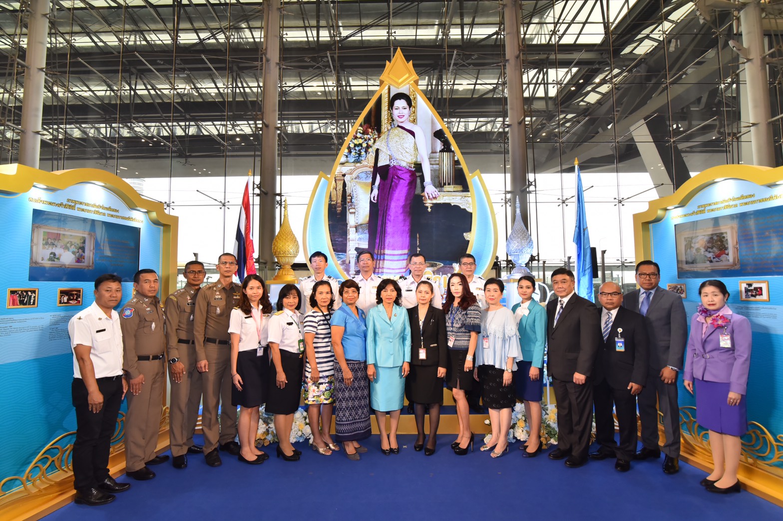 ***** ท่าอากาศยานสุวรรณภูมิ (ทสภ.) จัดกิจกรรมเฉลิมพระเกียรติสมเด็จพระนางเจ้าสิริกิติ์ พระบรมราชินีนาถ พระบรมราชชนนีพันปีหลวง เนื่องในวโรกาสเฉลิมพระชนมพรรษาครบ 87 พรรษา 12 สิงหาคม 2562 พร้อมจัดซุ้มนิทรรศการเฉลิมพระเกียรติเผยแพร่พระราชประวัติและพระราชกรณียกิจให้ผู้โดยสารชาวไทยและชาวต่างประเทศ