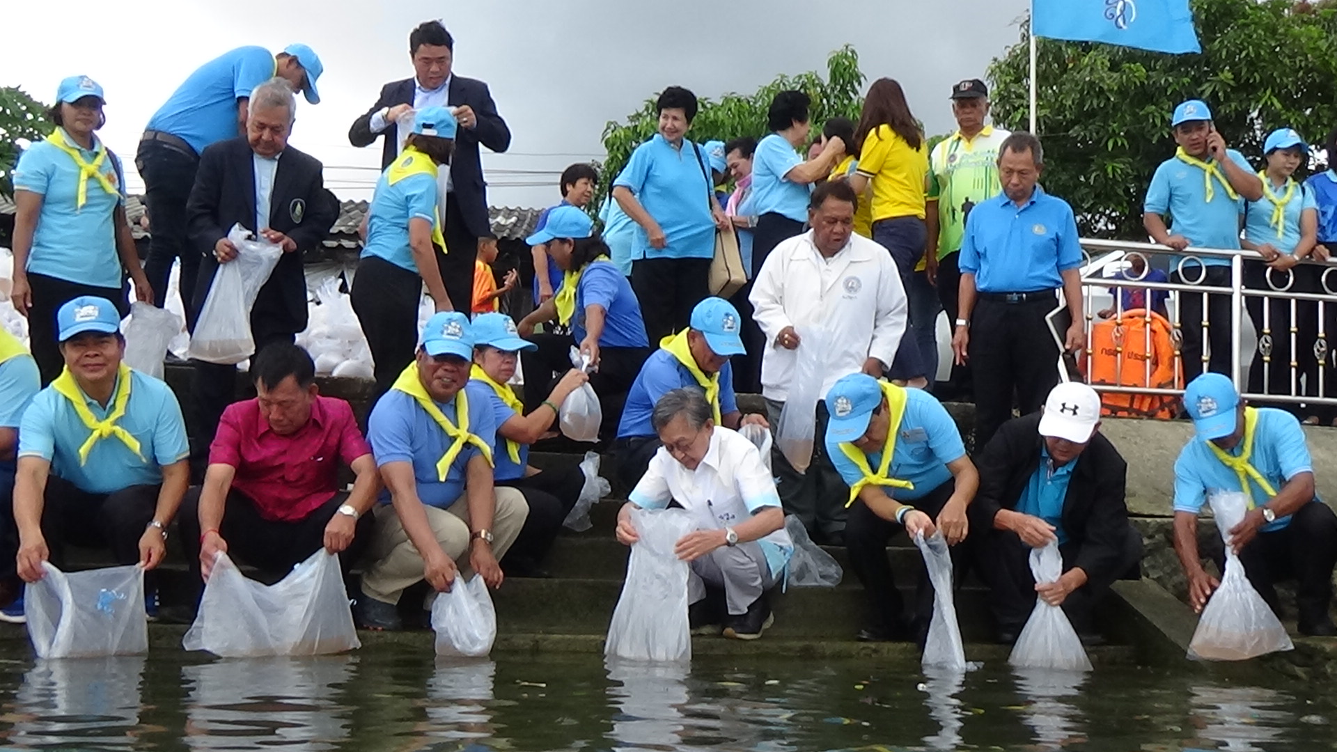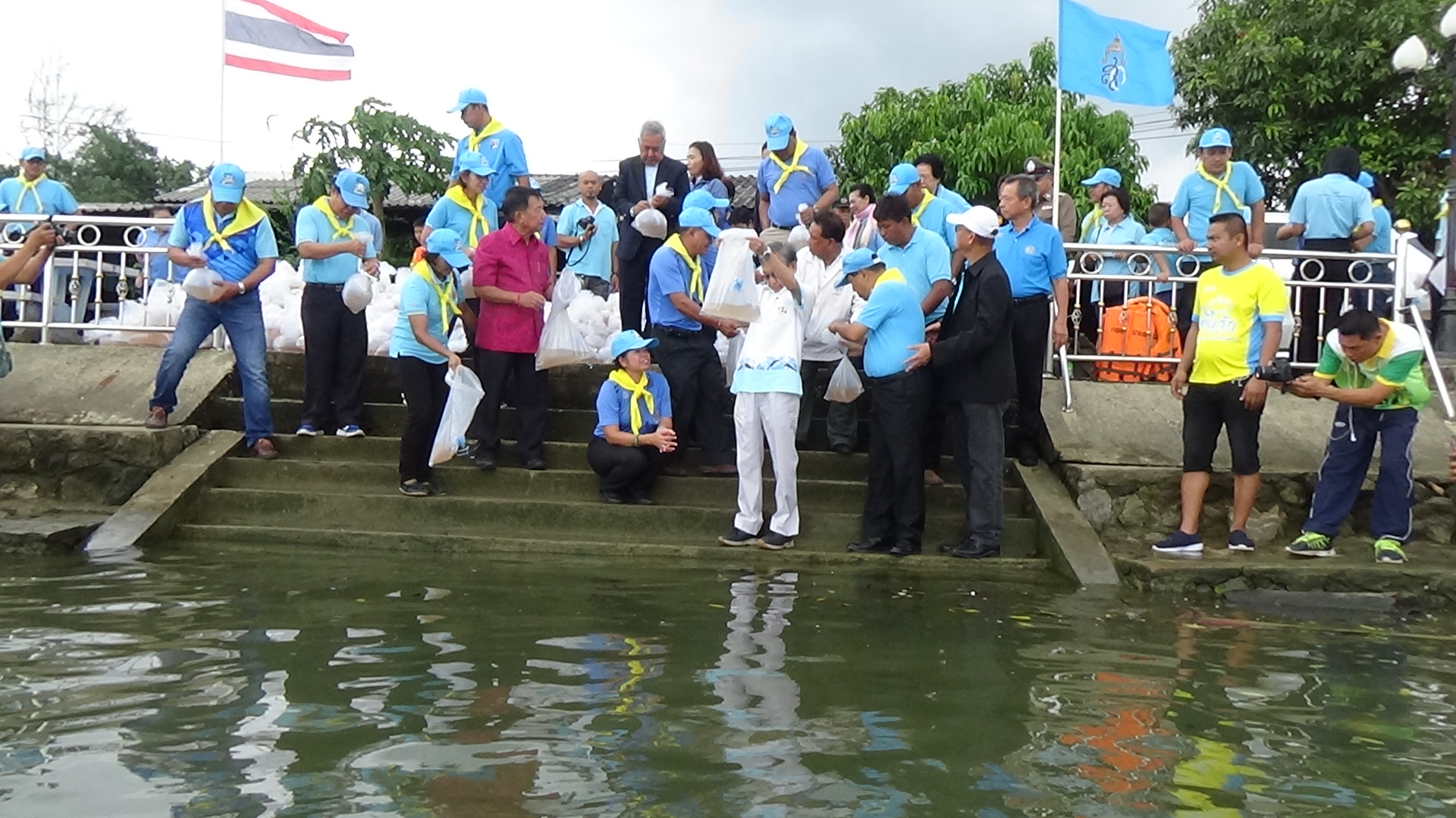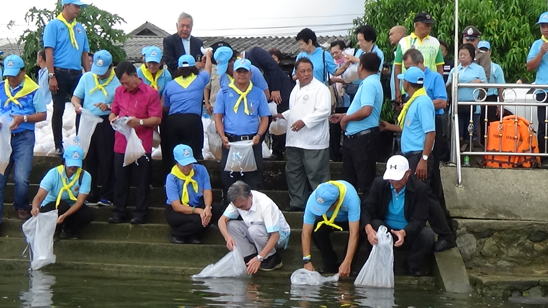 ที่บริเวณริมฝั่งแม่น้ำตรัง ใต้สะพานพระยารัษฎานุประดิษฐ์ ฝั่งหน้าวัดย่านซื่อ อำเภอกันตัง จังหวัดตรัง นายลือชัย เจริญทรัพย์ ผู้ว่าราชการจังหวัดตรัง เป็นประธานในพิธีเปิดโครงการปล่อยลูกกุ้ง-ลูกปลา คืนสู่ธรรมชาติ ครั้งที่ 6 โดยมีนายชวน หลีกภัย ประธานรัฐสภาและประธานสภาผู้แทนราษฎร นายพรชัย สุขโสม นายอำเภอกันตัง นายสรนนท์ จิโรจน์มนตรี นายกเทศมนตรีเมืองกันตัง ส่วนราชการ ประชาชนจิตอาสา เราทำความ ดีด ด้วยหัวใจ พร้อมใจกันปล่อยพันธุ์น้ำ