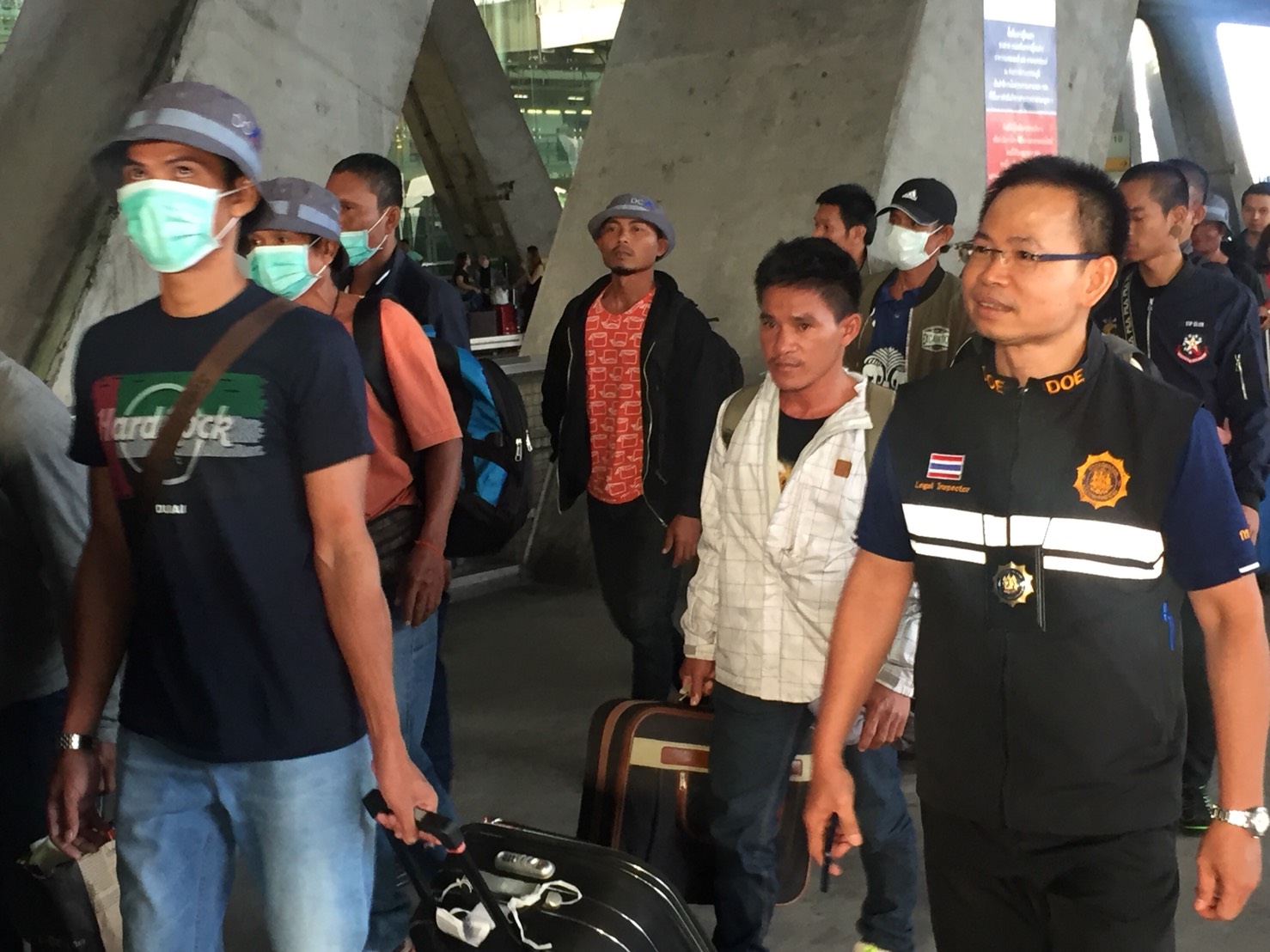 ***** ในการเดินทางกลับของลูกเรือประมงไทย 18 คน ครั้งนี้ ถือเป็นผลเสร็จจากการร่วมบูรณาการให้ความช่วยเหลือจาก หน่วยงานใน ศรชล.ประกอบด้วย กองทัพเรือ กรมประมง และกรมเจ้าท่า ตลอดจนกระทรวงแรงงาน และกระทรวงการต่างประเทศ โดยหลังจากคณะลูกเรือประมงเดินทางมาถึงท่าอากาศยานสุวรรณภูมิได้รับการต้อนรับจากคณะของหน่วยงานที่ให้ความช่วยเหลือแล้ว ทางเจ้าหน้าที่จากกระทรวงแรงงานจะพาลูกเรือทั้งหมด 18 คน เดินทางไปยังกระทรวงแรงงาน เพื่อให้เจ้าหน้าที่จากกรมการจัดหางาน กรมพัฒนาสังคมและสวัสดิการ กระทรวงพัฒนาสังคม และความมั่นคงของมนุษย์ และเจ้าหน้าที่ตำรวจจากกองบังคับการปราบปรามการค้ามนุษย์ โดยมีเจ้าหน้าที่ของ ศรชล.ประกอบด้วยกองทัพเรือ กรมประมง และกรมเจ้าท่า ร่วมตรวจสอบข้อเท็จจริงจากลูกเรือประมงไทย เพื่อดำเนินการให้ความช่วยเหลือ และดำเนินการในส่วนที่เกี่ยวข้องตามอำนาจหน้าที่ของแต่ละหน่วยงานต่อไป ณ ห้องประชุมชั้น 10 กรมการจัดหางาน กระทรวงแรงงาน พร้อมกันนี้ลูกเรือประมงทั้งหมดจะเข้าพบหม่อมราชวงศ์จัตุมงคล โสณกุล รัฐมนตรีว่าการกระทรวงแรงงาน เพื่อแสดงความขอบคุณที่ให้ความช่วยเหลือให้ได้เดินทางกลับมาประเทศไทยโดยสวัสดิภาพ หลังจากนั้นกรมการจัดหางานจะเป็นผู้อำนวยความสะดวกในการจัดรถรับ – ส่ง ไปยังสถานีขนส่งผู้โดยสาน(หมอชิต) เพื่อเดินทางกลับภูมิลำเนาต่อไป