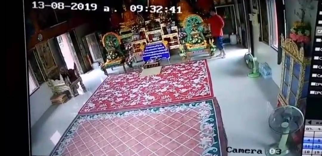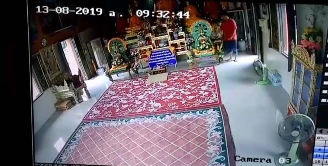 เสื่อมหนักเงินวางทำบุญรอบฐานพระก็ไม่เว้นโจรอ้วนเสื้อแดงย่องเข้าประตูด้านข้างพระอุโบสถ ขโมยเงินที่วางบนฐานพระ ญาติโยมวางทำบุญรอบฐานองค์พระไปจนเกลี้ยง หลังก่อเหตุยังใจเย็นเดินเข้าไปคุยกับหญิงที่ดูแลวัด ชวนขึ้นมาไหว้พระในพระอุโบสถที่เพิ่งก่อเหตุไปสดๆร้อนๆ
