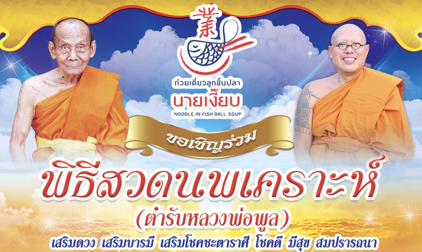 พระครูปลัดสิทธิวัฒน์ เจ้าอาวาส วัดไผ่ล้อม ต.พระปฐมเจดีย์ อ.เมือง จ.นครปฐม ขอเชิญญาติโยม ร่วมพิธีสวดนพเคราะห์เสริมบารมี ตำรับหลวงพ่อพูล วันที่ 9 ก.ย. 62 เวลา 18.19 น. ณ ร้านก๋วยเตี๋ยวลูกชิ้นปลานายเงี๊ยบ พุทธมณฑล สาย 4 โดยนายสมชาติ สาลีพัฒนา เจ้าของร้านก๋วยเตี๋ยวลูกชิ้นปลานายเงี๊ยบ พุทธมณฑล สาย 4 เป็นประธานฝ่ายฆราวาส ซึ่ง พิธีสวดนพเคราะห์ มีคติความเชื่อว่า การขอพรเทพยดา ดาวพระเคราะห์ ซึ่งสถิตในดวงชะตาให้มาช่วยปัดเป่าทุกข์ภัย บันดาลให้เกิดสวัสดิมงคล มีความสุขสมบูรณ์เจริญรุ่งเรืองก้าวหน้าปราศจากอุปสรรคทั้งปวง