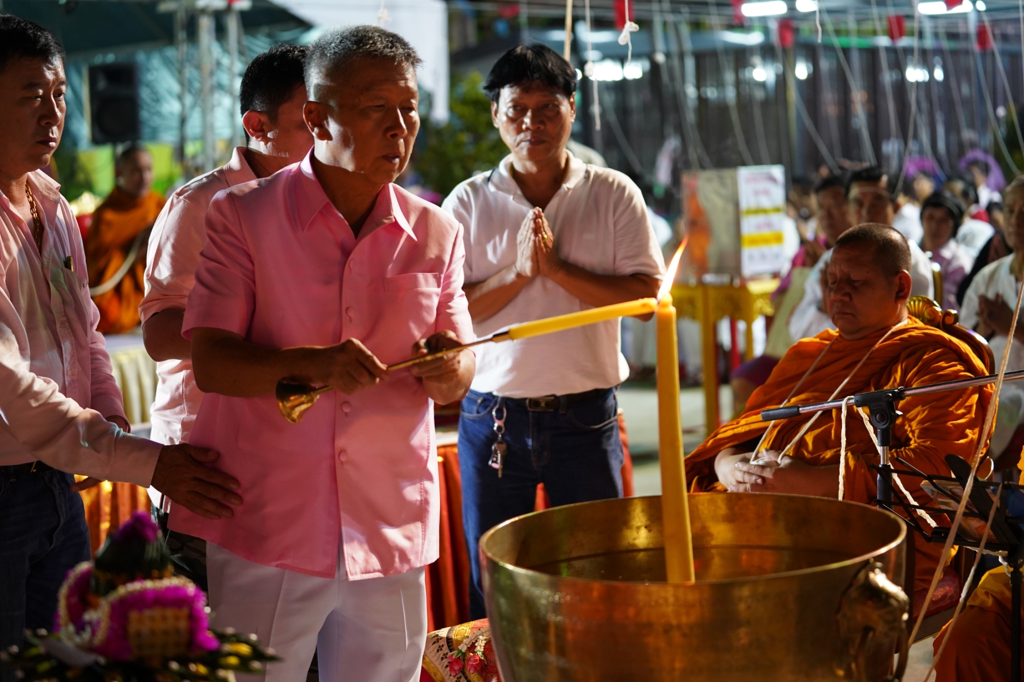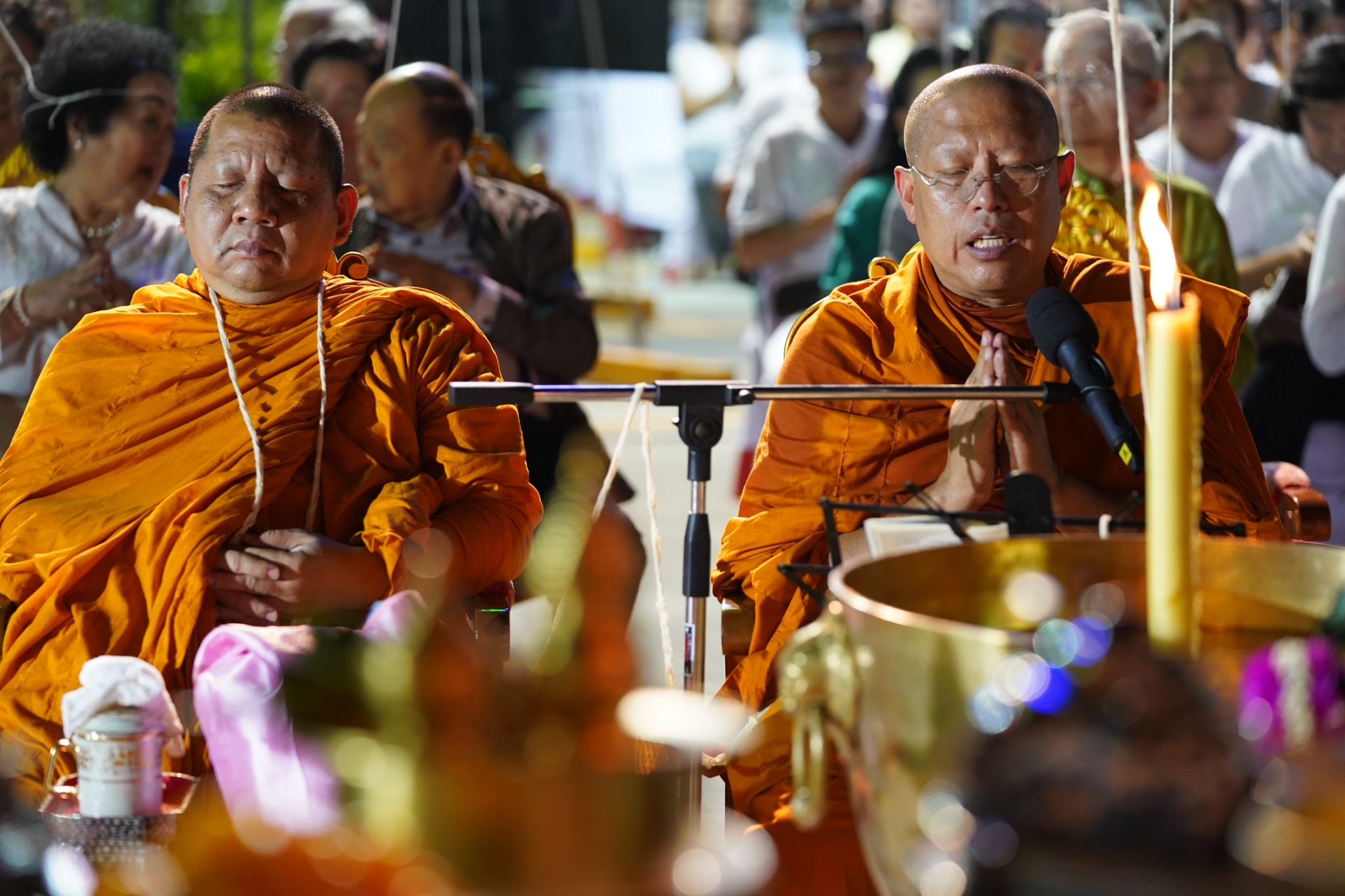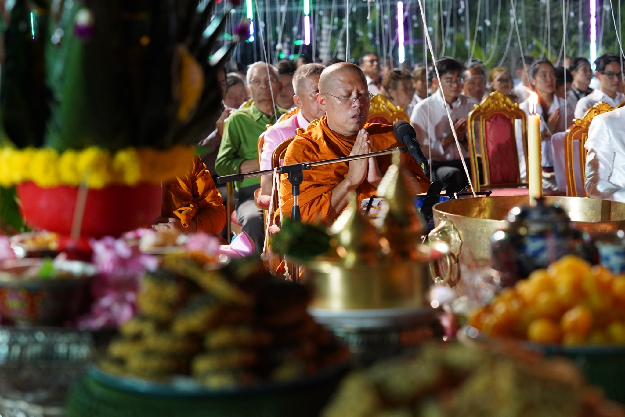 การบูชานพเคราะห์ประกอบพิธีทั้งทางพุทธและพราหมณ์ ตามคตินิยมแบบโบราณ เนื่องเพราะวันจันทร์ที่ 9 ก.ย. 62 เป็นวันมงคล ฤกษ์ดีพิธีเริ่มเวลา 18.19 น. อาจารย์ เชน พงษ์พรม และอาจารย์กบ สักกเทพ อ่านโองการบูชาเทพยดา บูชาถวายเครื่องสังเวย ต่อสิ่งศักดิ์สิทธิ์ทั้งหลาย จากนั้นเข้าสู่พิธีสวดนพเคราะห์ เสริมบารมี โดยคณะสงฆ์สวดเจริญพระพุทธมนต์ สำหรับการสวดนพเคราะห์ พระสงฆ์เป็นผู้สวดบทพระปริตร ตามกำหนดบทของดาวนพเคราะห์ โดยสวดสลับกันกับโหร ซึ่งโหรทำหน้าที่กล่าวคาถาบูชาเทพยดาเป็นทำนองสรภัญญะ เมื่อโหรกล่าวคำบูชาเทพยดาจบแล้ว พระสงฆ์ก็เจริญพระพุทธมนต์ตามบทของดาวพระเคราะห์ สลับกันไปกับโหรที่สวดบูชาเทวดานพเคราะห์องค์นั้นๆ จนครบ 9 องค์”