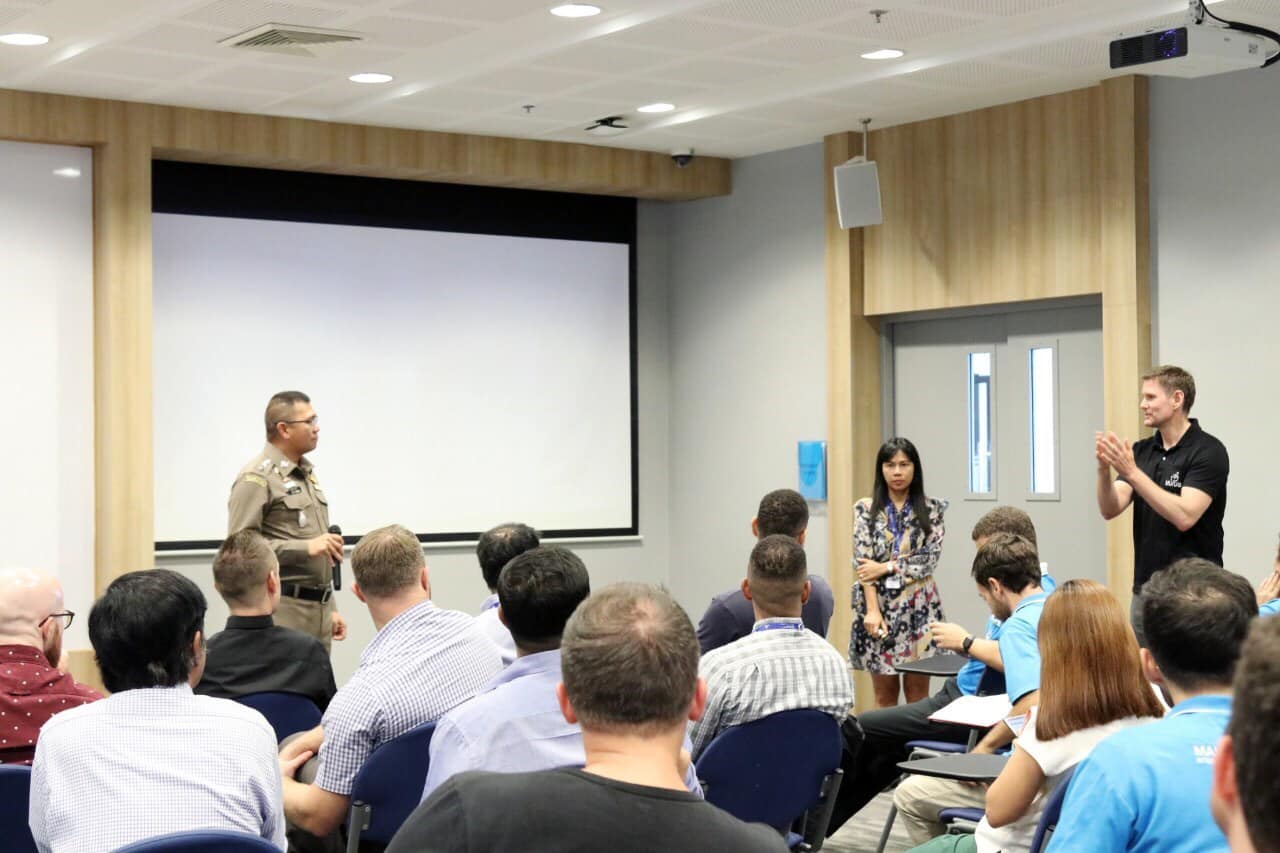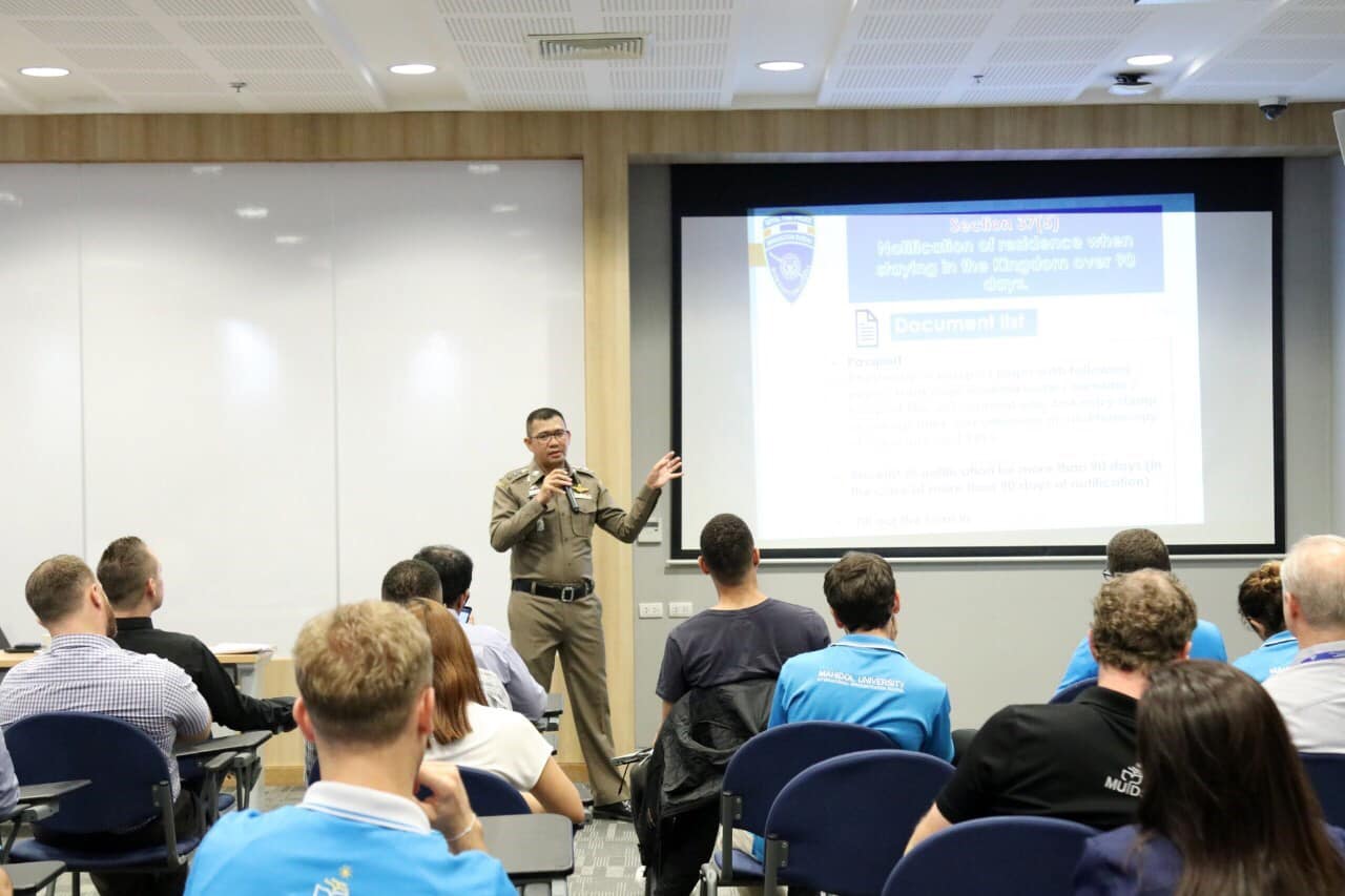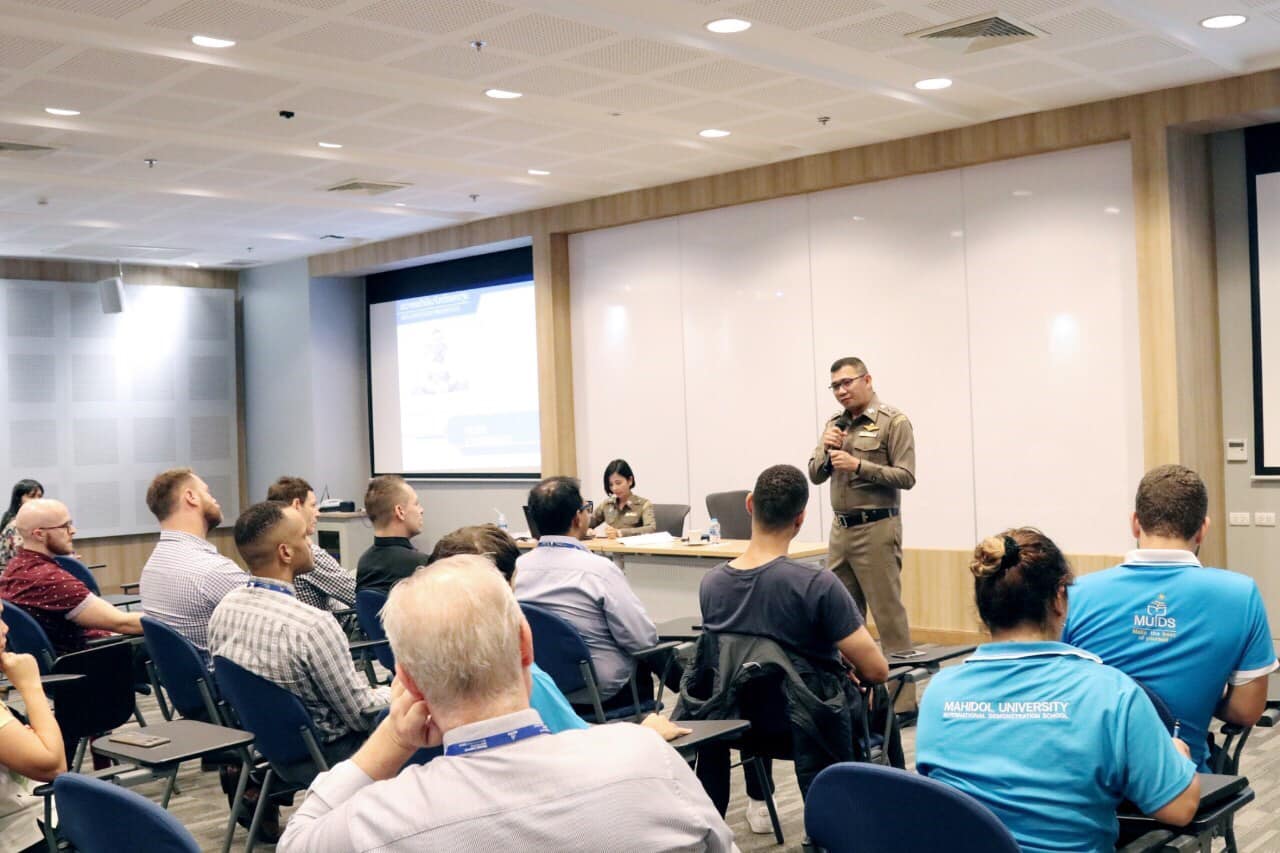วันที่ 15 ส.ค.2562 ที่โรงเรียนสาธิตนานาชาติ มหาวิทยาลัยมหิดล ตำบลศาลายา อำเภอพุทธมณฑล จังหวัดนครปฐม พ.ต.อ.ประวิทย์ ศิริธร ผกก.ตม.จว.นครปฐม บก.ตม.3 พร้อมด้วย พ.ต.ต.หญิงสุรัชนา จิตภิบาล สว.ตม.จว.นครปฐม บก.ตม.3 ได้รับเชิญไปเป็นวิทยากรบรรยายภาษาอังกฤษเกี่ยวกับการขอรับ/เปลี่ยนประเภทการตรวจลงตรา รหัส B และการแจ้งที่พักอาศัยตามมาตรา 37-38 ตามพ.ร.บ.คนเข้าเมือง พ.ศ.2522