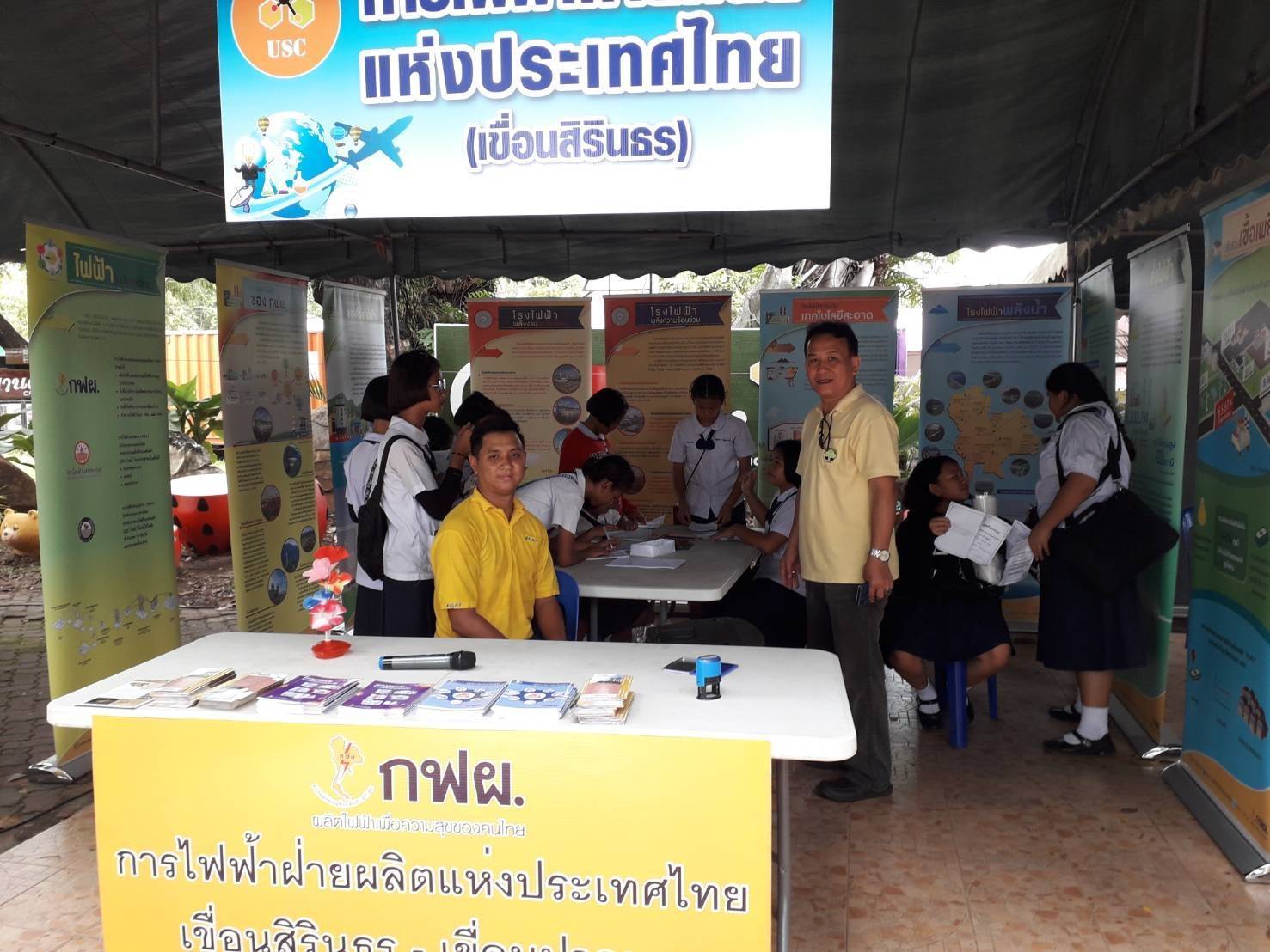 วันที่ 18 สิงหาคม 2562 นายนที ศรีสมรรถการ หัวหน้างานประชาสัมพันธ์ฯ และนายกฤษฎา จำปาแพง ผู้ปฏิบัติงานประชาสัมพันธ์ เขื่อนสิรินธร อำเภอสิรินธา จังหวัดอุบลราชธานี เป็นผู้แทน กธอ-ฟ. จัดบูธนิทรรศการ กฟผ. ร่วมงานสัปดาห์วิทยาศาสตร์ ระหว่างวันที่ 18-20 สิงหาคม 2562ได้แก่ จัดบูทให้ความรู้ภารกิจ กฟผ. ความรับผิดชอบด้านการผลิตพลังงานไฟฟ้า ให้เกิดความมั่นคง ทั้งด้านเศรษฐกิจ สังคม ชุมชน และสิ่งแวดล้อม ตลอดจนจัดกิจกรรมวาดภาพระบายสี เกมส์ละเล่น และตอบคำถามด้านพลังงาน ภารกิจ กฟผ. รับสิ่งของรางวัลจาก กฟผ.