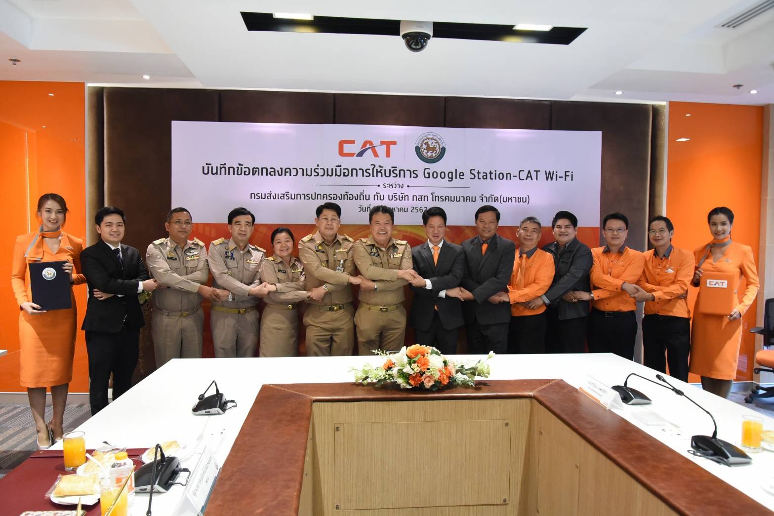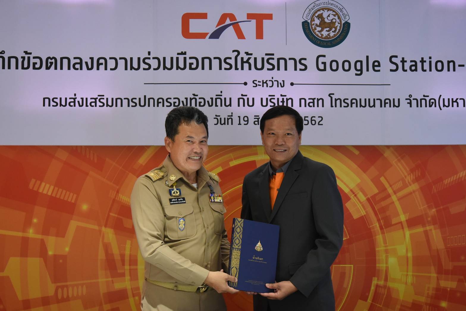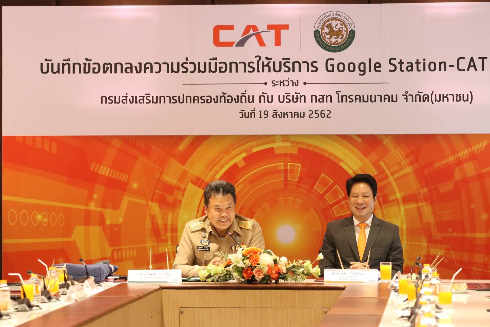 เมื่อวันที่ 19 สิงหาคม 2562 เวลา 15.00 น. นายสุทธิพงษ์ จุลเจริญ อธิบดีกรมส่งเสริมการปกครองท้องถิ่น ลงนามความร่วมมือการให้บริการ Google Station – CAT WiFi ร่วมกับ บริษัท กสท โทรคมนาคม จำกัด (มหาชน) หรือ CAT โดยมี ดร.ดนันท์ สุภัทรพันธุ์ รองกรรมการผู้จัดการใหญ่ ผู้บริหารสายงาน สายงานการตลาดและบริการ ร่วมลงนาม และมี นายจำเนียร แพทย์กิจ ผู้จัดการฝ่ายผลิตภัณฑ์บรอดแบนด์ และผู้บริหารกรมส่งเสริมการปกครองท้องถิ่น เข้าร่วมเป็นเกียรติ ณ อาคารสำนักงานใหญ่ บริษัท กสท โทรคมนาคม จำกัด (มหาชน)