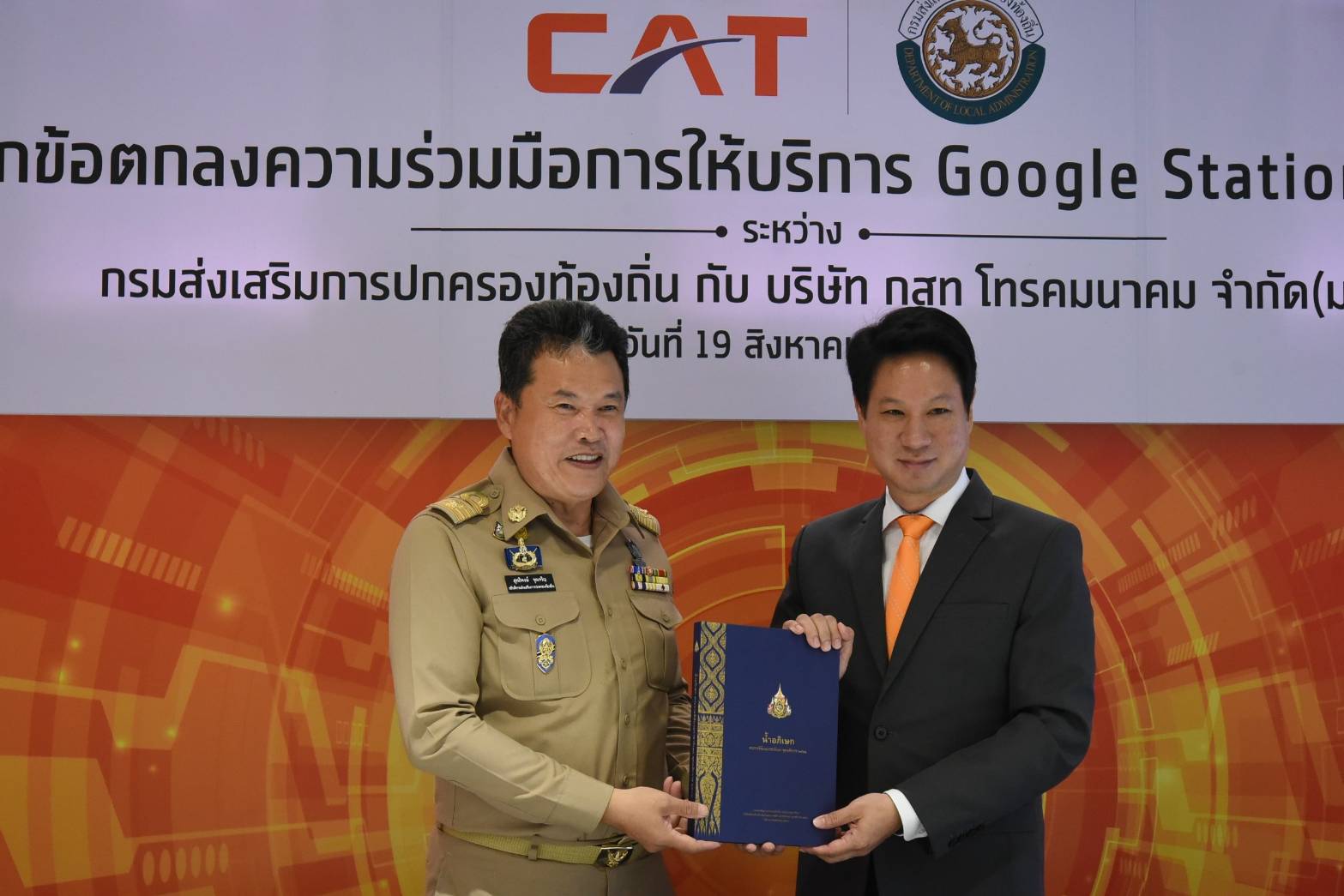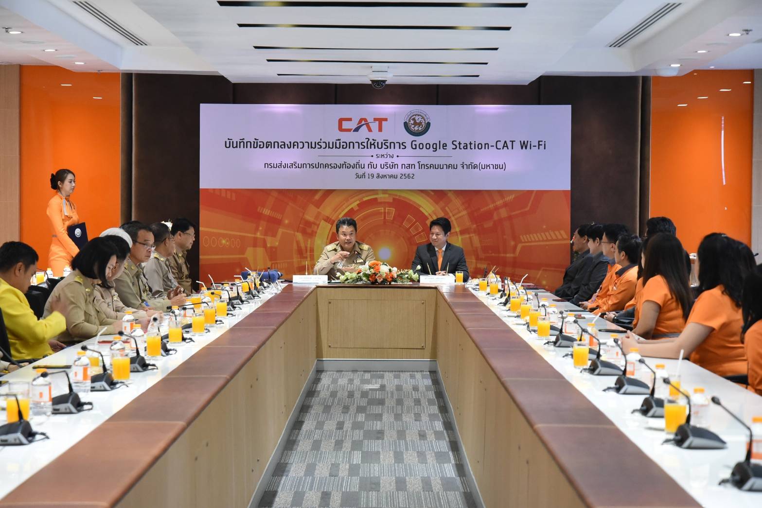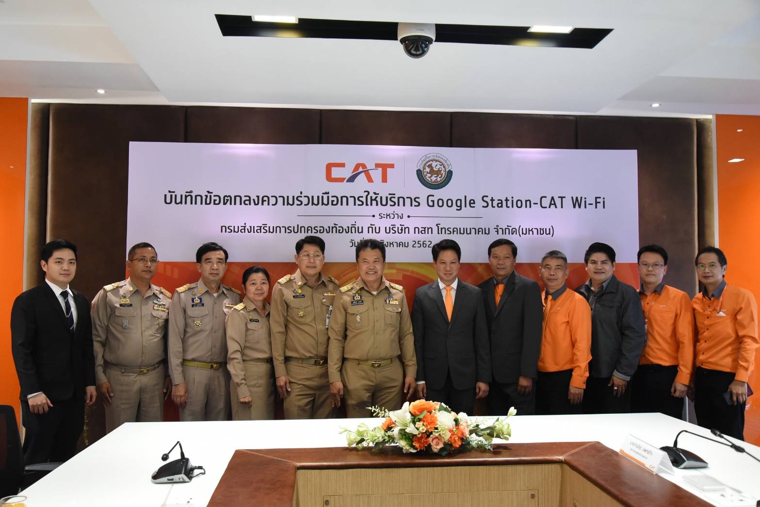 เมื่อวันที่ 19 สิงหาคม 2562 เวลา 15.00 น. นายสุทธิพงษ์ จุลเจริญ อธิบดีกรมส่งเสริมการปกครองท้องถิ่น ลงนามความร่วมมือการให้บริการ Google Station – CAT WiFi ร่วมกับ บริษัท กสท โทรคมนาคม จำกัด (มหาชน) หรือ CAT โดยมี ดร.ดนันท์ สุภัทรพันธุ์ รองกรรมการผู้จัดการใหญ่ ผู้บริหารสายงาน สายงานการตลาดและบริการ ร่วมลงนาม และมี นายจำเนียร แพทย์กิจ ผู้จัดการฝ่ายผลิตภัณฑ์บรอดแบนด์ และผู้บริหารกรมส่งเสริมการปกครองท้องถิ่น เข้าร่วมเป็นเกียรติ ณ อาคารสำนักงานใหญ่ บริษัท กสท โทรคมนาคม จำกัด (มหาชน)