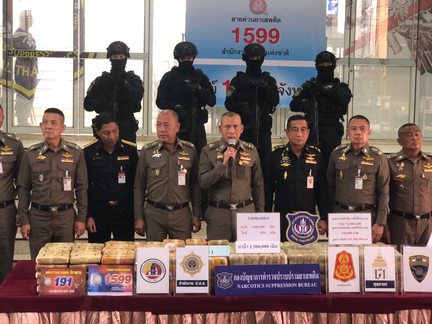 เมื่อวันที่ ๒๐ ส.ค.๖๒ เวลา ๑๐.๐๐ น. ณ กองบัญชาการตำรวจปราบปรามยาเสพติด โดยการแถลงข่าวครั้งนี้ สามารถจับกุมขบวนการค้ายาเสพติดรายสำคัญจำนวน ๓ คดี ผู้ต้องหา 3 คน ของกลางยาบ้าจำนวน ๑,๕๐๐,๐๐๐ เม็ด ไอซ์ น้ำหนักประมาณ ๙๗๐ กรัม ยึดรถยนต์กระบะบรรทุก และทรัพย์สินอีกจำนวนหนึ่ง ซึ่งเป็นผู้ต้องหาตามหมายจับรายสำคัญเครือข่าย PR เงินล้าน