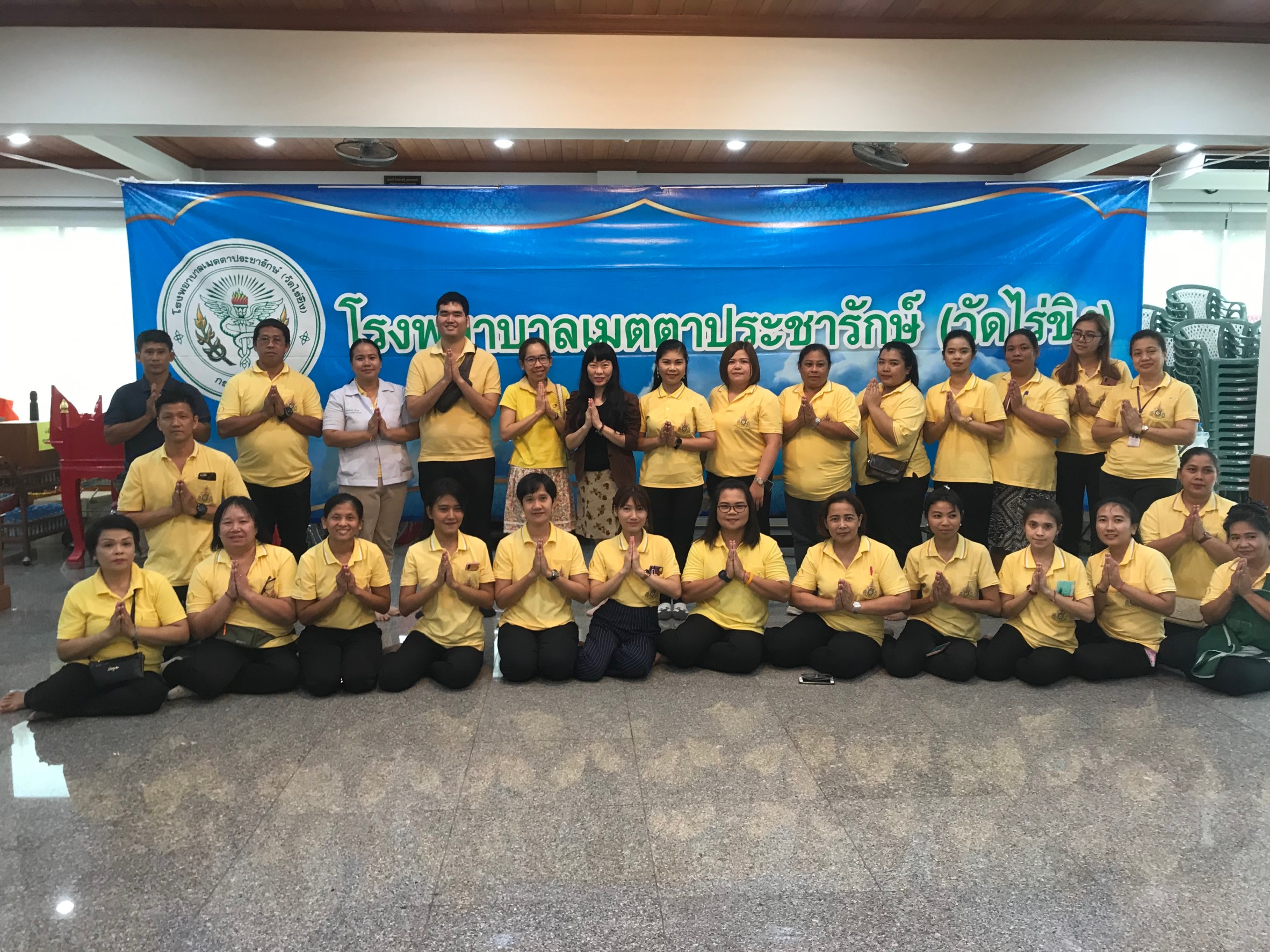นางสาวเสาวนีย์ กำจร รักษาการรองผู้อำนวยการด้านอำนวยการ โรงพยาบาลเมตตาประชารักษ์ (วัดไร่ขิง)นำคณะแพทย์ พยาบาล บุคลากร ออกหน่วยแพทย์เคลื่อนที่ โครงการหน่วยแพทย์เคลื่อนที่ตรวจสุขภาพให้องค์ความรู้ด้านสุขภาพแก่พระสงฆ์และประชาชน รอบศาสนสถาน เฉลิมพระเกียรติ เนื่องในโอกาสมหามงคลพระราชพิธี บรมราชาภิเษก ประกอบด้วยเจาะเลือดตรวจสุขภาพ ตรวจทันตกรรม ตรวจสายตา มอบแว่นตาสำหรับผู้มีปัญหาด้านสายตา การแนะนำด้านโภชนาการ จ่ายยาและเวชภัณฑ์