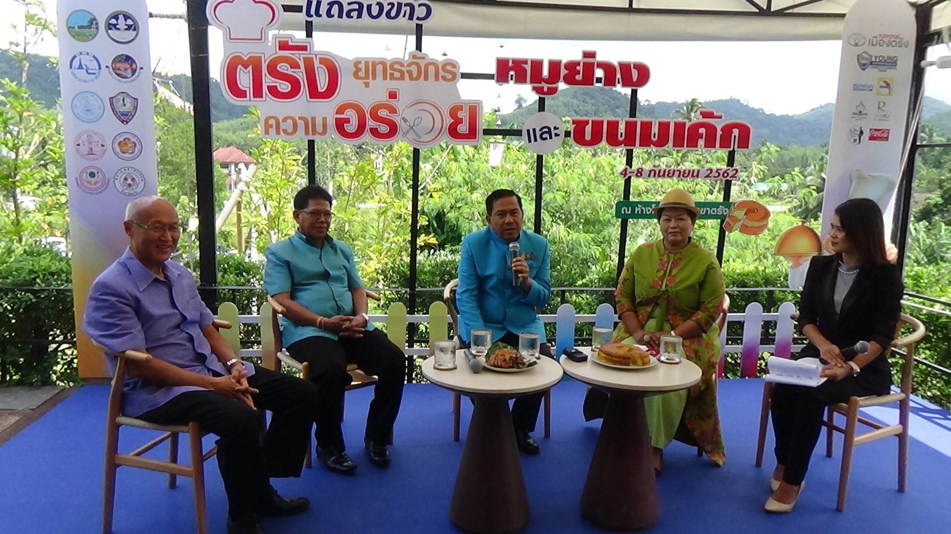 ที่ร้านกะช่องฮิลล์ อ.นาโยง จ.ตรัง นายลือชัย เจริญทรัพย์ ผู้ว่าราชการจังหวัดตรัง พร้อมด้วย นางสาวนันทวัน ศิริโภคพัฒน์ ผู้อำนวยการการท่องเที่ยวแห่งประเทศไทย (ททท.) สำนักงานตรัง นายศุภศักดิ์ ศรีหมาน ท่องเที่ยวและกีฬาจังหวัดตรัง และนายพิชัย มะนะสุทธิ์ ประธานหอการค้าจังหวัดตรัง เป็นประธานและร่วมแถลงข่าวการจัดงาน “ตรังยุทธจักรความอร่อยกับหมูย่างและขนมเค้กจังหวัดตรัง” ประจำปี 2562 ณ กะช่องฮิลล์ อ.นาโยง จ.ตรัง กิจกรรมในปีนี้ ประกอบด้วยการออกร้านจำหน่ายสินค้าของผู้ประกอบการหมูย่างและขนมเค้กทั่วจังหวัดตรังกว่า 40 รายในราคาพิเศษ โดยหมูย่างกิโลกรัมละ 400 บาทจากราคา 420 บาท ขนมเค้กกล่องใหญ่ราคา 70 บาท จากราคาปกติ 80 บาท และขนมเค้กกล่องเล็ก 40 บาท และการออกร้านจำหน่ายอาหารชื่อดัง อาหารถิ่นจังหวัดตรัง การจำหน่ายสินค้าที่ระลึกพื้นเมืองกว่า 200 และกิจกรรมนาทีทอง การจำหน่ายหมูย่างในราคาพิเศษ กิโลกรัมละ 370 บาท วันละ 30 กิโลกรัมเท่านั้น