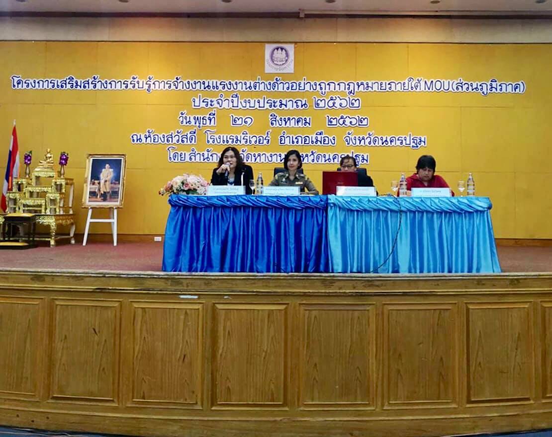 จังหวัดนครปฐมจัดโครงการเสริมสร้างการรับรู้สู่การจ้างแรงงานต่างด้าวถูกกฎหมายภายใต้MOU ส่วนภูมิภาคประจำปี2562