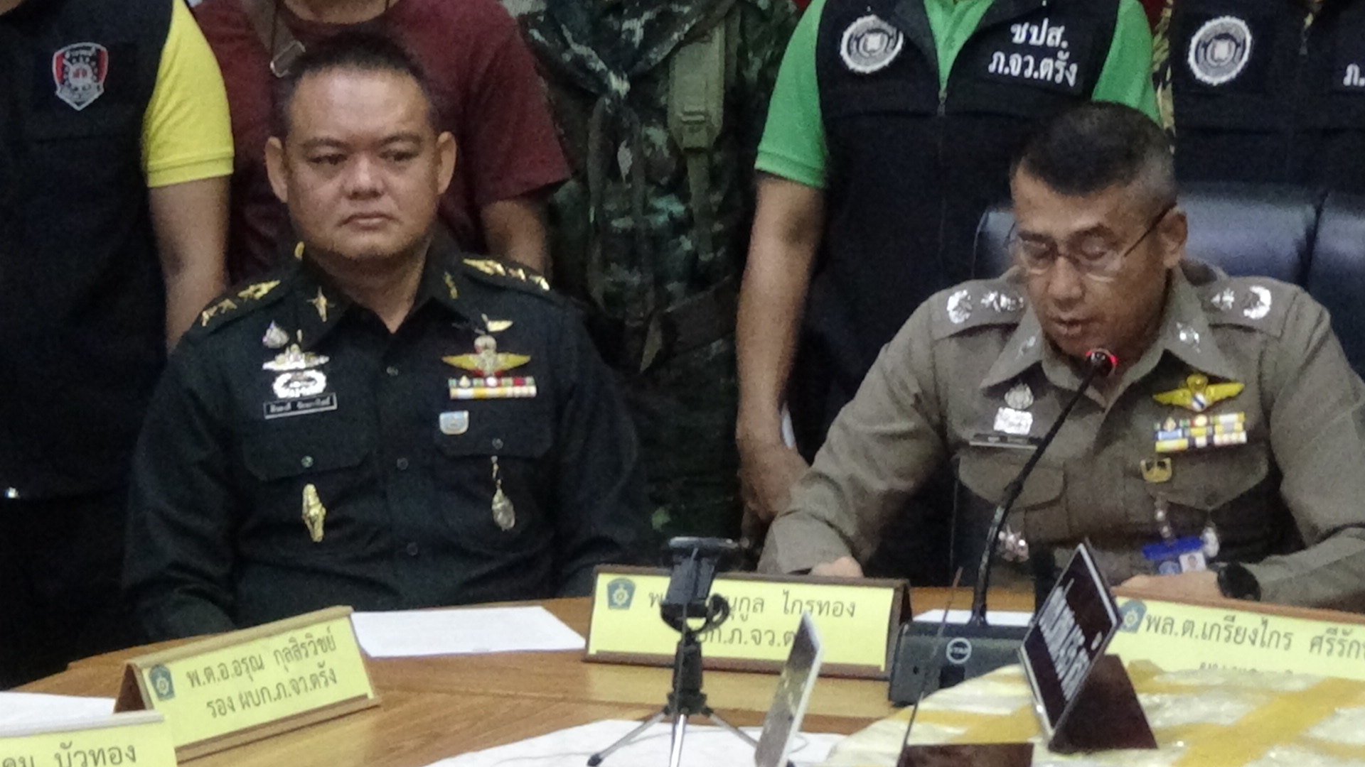 ภายใต้บังคับบัญชา ของพลตำรวจโทรณศิลป์ ภู่สาระ ผู้บัญชาการตำรวจภูธรภาค 9 พลตรีเกรียงไกร ศรีรักษ์ ผบ.พล.ร.5 กองกำลังเทพสตรี ได้มอบหมายให้ พลตำรวจตรีนุกูล ไกรทอง ผู้บังคับการตำรวจภูธรจังหวัดตรัง พันตำรวจเอกสันทัด วินสน รองผู้บังคับการตำรวจภูธรจังหวัดตรัง พันเอกอุทิศ อนันตนานนท์ รองผู้บัญชาการกองพลทหารราบที่ 5 และพันเอกพีระพงศ์ วัลลภาทิตย์ ผู้บังคับกองพันทหารราบที่ 4 กรมทหารราบที่ 15 ค่ายพระยารัษฎานุประดิษฐ์ อำเภอห้วยยอด จังหวัดตรัง ได้แถลงผลการจับกุมยาเสพติดรายสำคัญดังนี้