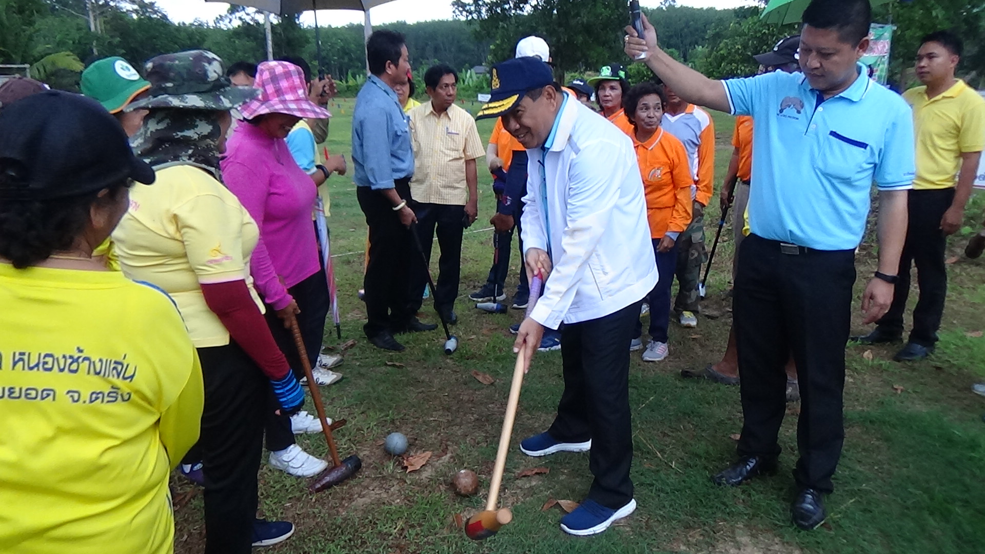 ที่สนามกีฬาชมรมผู้สูงอายุวู้ดบอลตำบลทุ่งต่อ อำเภอห้วยยอด จังหวัดตรัง นายลือชัย เจริญทรัพย์ ผู้ว่าราชการจังหวัดตรัง พบปะพูดคุยกับประชาชนที่มาเล่นกีฬาวู้ดบอลพร้อมทั้งเล่นวู้ดบอลกับประชาชนด้วย และจากการสอบถามประชาชนที่มากีฬาวู้ดบอล ว่ากีฬาวู้ดบอล เกิดขึ้นจากชาวใต้หวัน ที่มีบิดาป่วยและพยายามรักษาด้วยการออกกำลังกาย เมื่อเดินจับราวบันได ซึ่งเป็นบันไดไม้และมีลูกกลมๆสามารถหมุนได้ จึงเกิดแนวคิดนำมาเป็นกีฬาให้บิดาได้เล่นและถือเป็นการออกกำลังกาย ซึ่งกีฬาวู้ดบอลนั้นอุปกรณ์จะมีไม้ตีและลูกบอลที่ทำจากไม้ โดยผู้ตีนั้นจะต้องตีให้เข้าประตูที่มีลักษณะเป็นตุ๊กตา จะกี่ครั้ง ผู้ที่ตีน้อยครั้งกว่าแล้วเข้าประตูจะเป็นผู้ชนะ