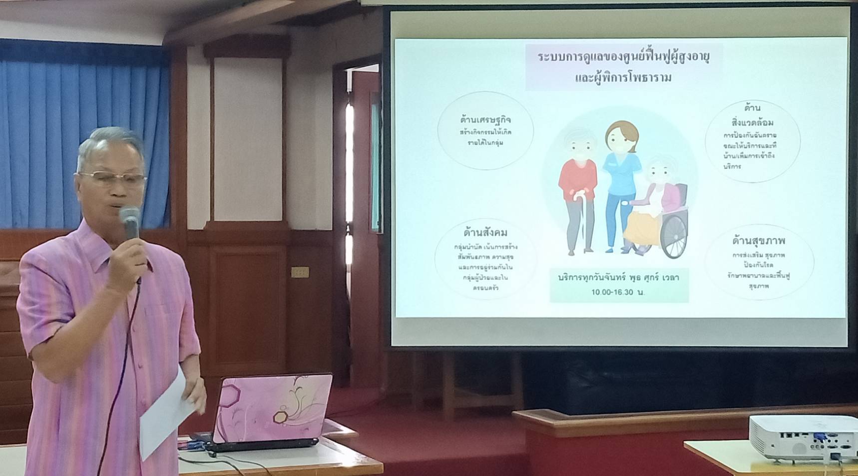 ราชบุรี เทศบาลสกลนครพร้อมคณะศึกษาดูงานศูนย์ฟื้นฟูผู้สูงอายุโพธาราม. ที่ห้องประชุมเทศบาลเมืองโพธาราม อ.โพธาราม จ.ราชบุรี นำโดยท่าน พ.ต.อ.สิทธิชัย สิทธิวงศ์ สมาชิกสภาเทศบาลเมืองสกลนครพร้อมคณะเดินทางเยี่ยมชมศูนย์ฟื้นฟูสมรรถภาพผู้สูงอายุและผู้พิการโดยมีนายสวัสดิ์ จังพานิช นายกเทศมนตรีเทศบาลเมืองโพธาราม จ.ราชบุรี และ เทศบาลสกลนคร พร้อมสมาชิกเยี่ยมชมการปฎิบัติหน้าที่ของอาสาสมัครและแพทย์พยาบาลตลอดจนชุมชนเขตเทศบาลที่มีแผนการปฎิบัติงานบูรณาการร่วมระหว่างภาครัฐและเอกชน