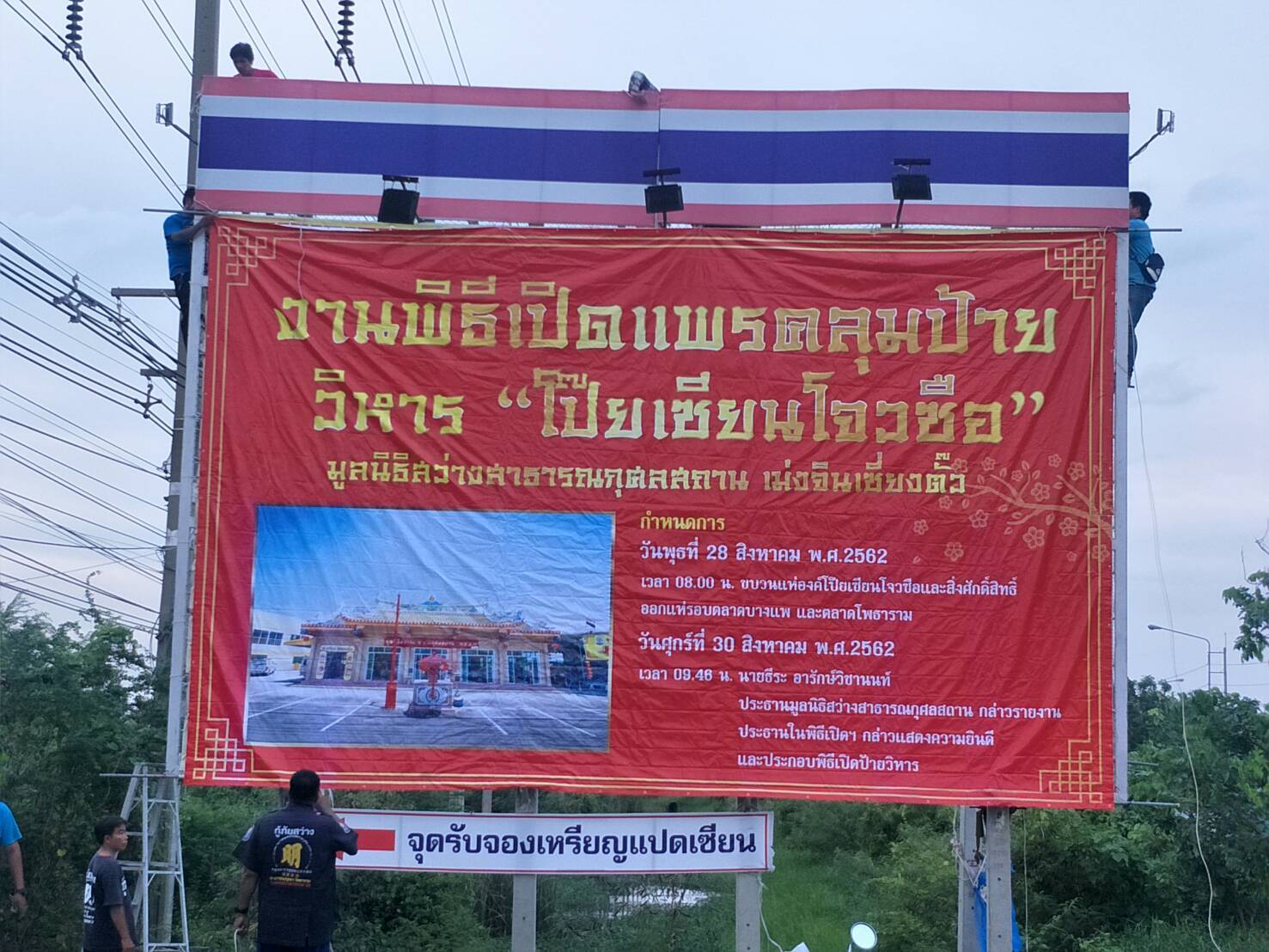ราชบุรี วันที่ 30 สิงหาคม 2562 คณะกรรมการมูลนิธิสว่างสาธารณกุศลสถาน อำเภอโพธาราม จังหวัดราชบุรี จะทำพิธีเปิด วิหาร “โป้ยเซียนโจวซือ”ณ.บริเวณถนนเพชรเกษมสายใหม่ขาเข้ากรุงเทพฯ