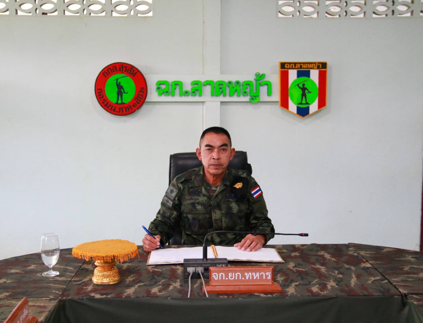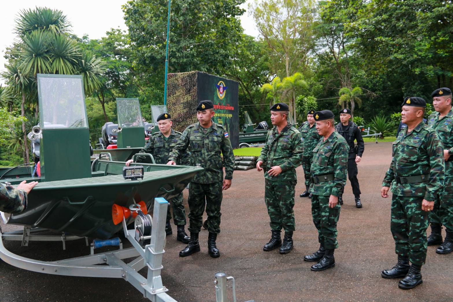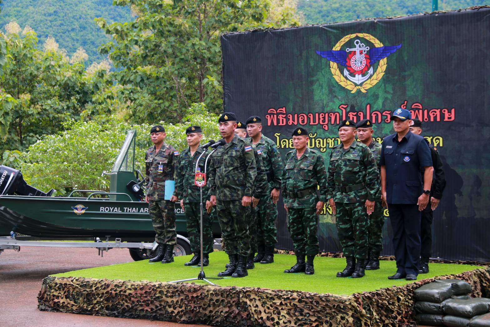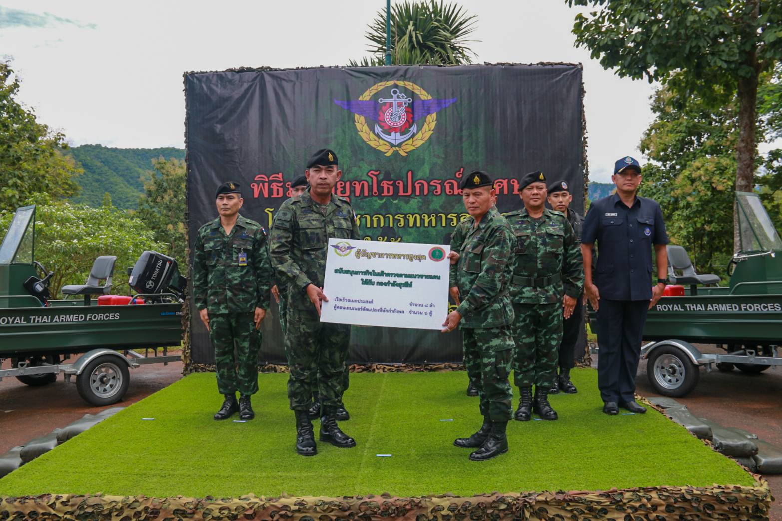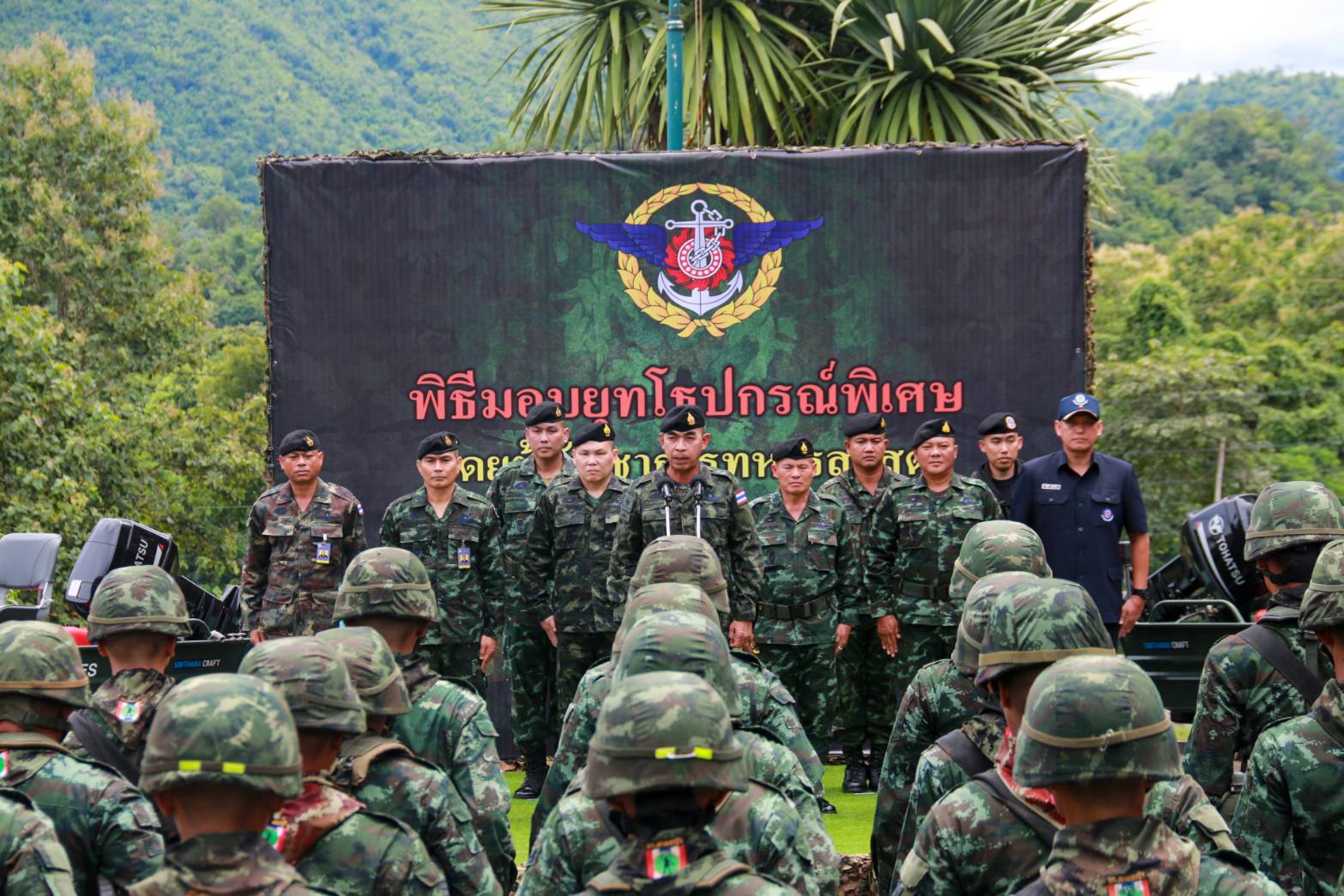 ที่หน่วยเฉพาะกิจลาดหญ้า กองกำลังสุรสีห์ อำเภอทองผาภูมิ จังหวัดกาญจนบุรี พล.ท.สุพจน์ มาลานิยม เจ้ากรมยุทธการทหาร ในฐานะ หัวหน้าฝ่ายยุทธการศูนย์บัญชาการทางทหาร เป็นผู้แทน ผู้บัญชาการทหารสูงสุด/ผู้บัญชาการศูนย์บัญชาการทางทหาร ในโอกาสเดินทางมามอบยุทโธปกรณ์พิเศษให้แก่กองกำลังสุรสีห์ ได้แก่ เรือเร็วอเนกประสงค์ จำนวน 8 ลำ และตู้คอนเทนเนอร์ดัดแปลงเป็นที่พักกำลังพล จำนวน 6 ตู้ โดยมี พล.ต.ฐกัด หลอดศิริ ผู้บัญชาการกองพลทหารราบที่ 9 ในฐานะ ผู้บัญชาการกองกำลังสุรสีห์ เป็นผู้รับมอบยุทโธปกรณ์ ซึ่งจะเป็นการเสริมสร้างขีดความสามารถของกองกำลังสุรสีห์ ในการปฏิบัติภารกิจของกองทัพไทย ในการอำนวยการร่วมป้องกันประเทศ รวมถึงรักษาผลประโยชน์แห่งชาติ ให้มีประสิทธิภาพมากยิ่งขึ้นตั้งแต่ยามปกติ