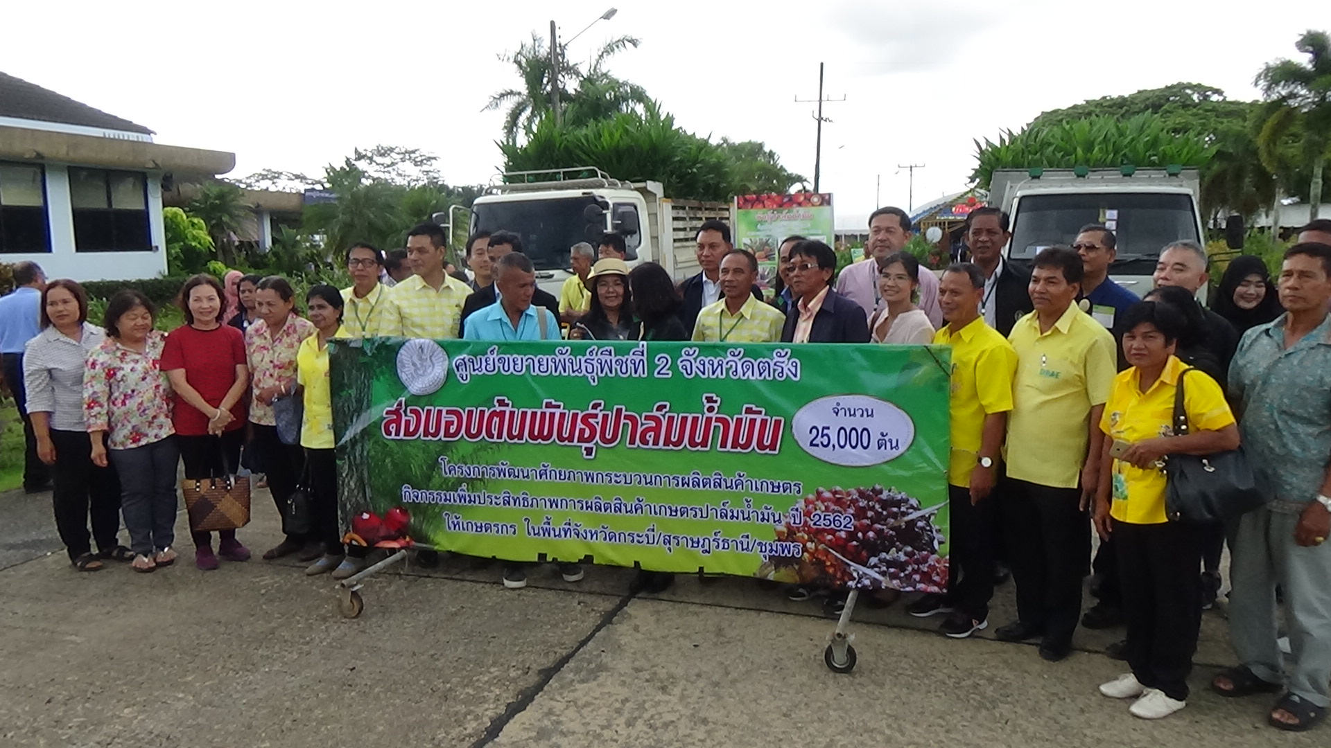 ศูนย์ขยายพันธุ์พืชที่ 2 จังหวัดตรัง จัดงานวันรณรงค์และถ่ายทอดความรู้การผลิตขยายพันธุ์พืช (เปิดบ้านศูนย์ขยายพันธุ์พืชที่ 2 จังหวัดตรัง) เพื่อให้บริการตามความต้องการของเกษตรกร และมอบพันธุ์ต้นปาล์มให้กับเกษตรกร จาก 3 จังหวัด จำนวย 25,000 ต้น ที่ศูนย์ขยายพันธุ์พืชที่ 2 จังหวัดตรัง นางกุลฤดี พัฒนาอิ่ม รองอธิบดีกรมส่งเสริมการเกษตร เป็นประธานเปิดงานวันถ่ายทอดความรู้การผลิตขยายพันธุ์พืชพันธุ์ดี ตามที่ศูนย์ขยายพันธุ์พืชที่ 2 จังหวัดตรัง มีบทบาท ภารกิจ และหน้าที่รับผิดชอบในการศึกษา พัฒนา วิจัย ทดสอบ ประยุกต์และถ่ายทอดเทคโนโลยีการผลิตพืชพันธุ์ดี วางแผนการผลิตพืชพันธุ์ดี ให้เป็นไปตามนโยบายยุทธศาสตร์และความสอดคล้องกับความต้องการของเกษตรกร ผลิตพืชพันธุ์ดี ให้มีคุณภาพและได้มาตรฐานส่งเสริมและถ่ายทอดเทคโนโลยีด้านการผลิตและขยายกระจายพันธุ์พืช