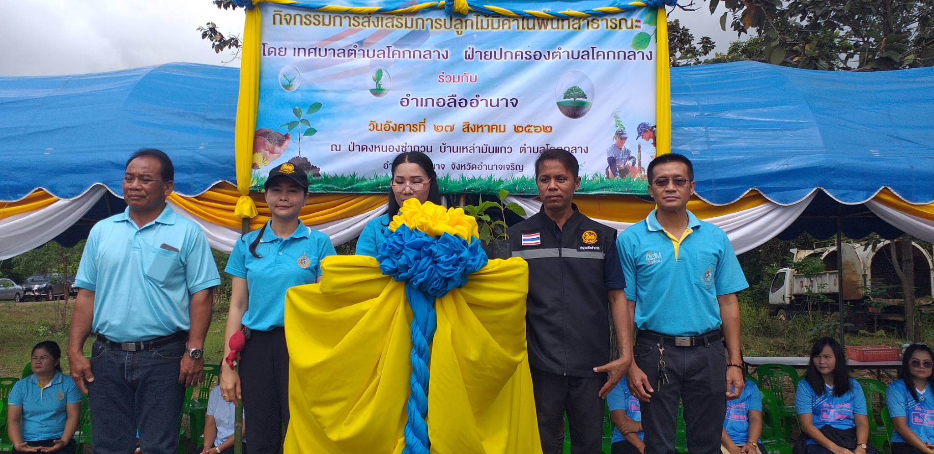นายธนูศักดิ์ เสมอภาค นายอำเภอลืออำนาจ จังหวัดอำนาจเจริญ มอบหมายให้นางวัชราภรณ์ นาท้าว ปลัดอาวุโสพร้อมด้วยหัวหน้าส่วนราชการ นายธนกฤต บัวเขียว ท้องถิ่นอำเภอ นายกรกฤช เลิศพรหมคุณ นางสาวรพีพร โมฬีพันธ์ ประจำตำบลโคกกลาง กำนัน ผู้ใหญ่บ้าน ประชาชน จำนวน 251 คน ร่วมกันปลูกต้นไม้มีค่า เพื่อเพิ่มพื้นที่สีเขียว รักษาสมดุลของธรรมชาตินางสาวเพียรวิภา โพศาราช นายก เทศมนตรีโคกกลาง กล่าวว่า ได้นำต้นไม้มีค่า อาทิเช่น ไม้พะยูง ไม้ประดู่ ไม้ยางนา และต้นตะเคียนหิน จำนวน 800 ต้น ทำการปลูกระหว่างวันที่ 26-27 ส.ค.62 และจะทำการดูแลรักษา