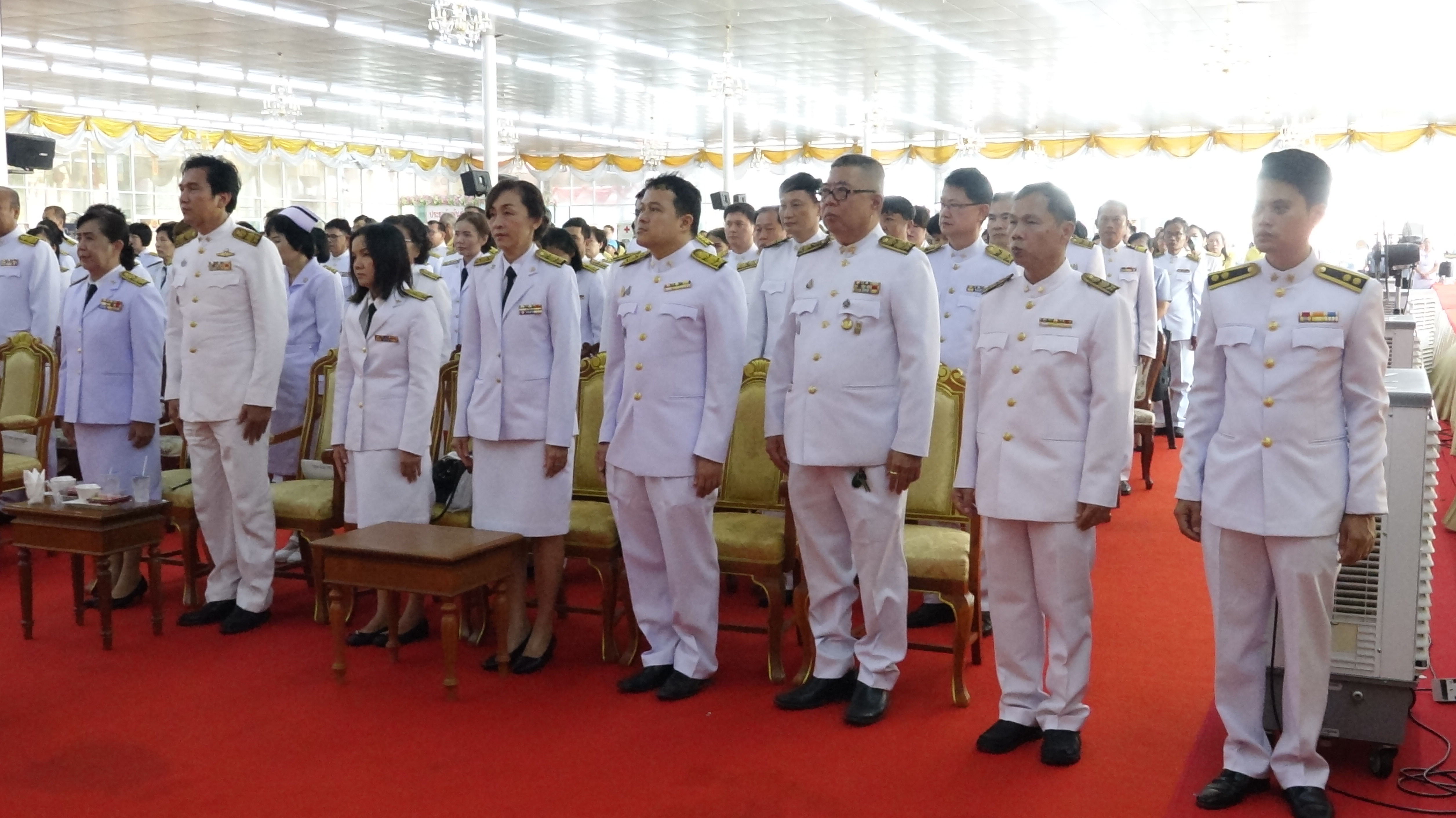 ซึ่งนายแพทย์ณรงค์ ตั้งตรงไพโรจน์ นายแพทย์สาธารณสุขจังหวัดนครปฐม ประธานในพิธีได้จุด ธูป เทียน บูชาพระรัตนตรัย จุดเครื่องทองน้อย บูชาพระอุบาลีคุญูปมาจารย์ อดีตเจ้าอาวาสวัดไร่ขิง พระอารามหลวง พร้อมเปิดกรวยถวายราชสักการะ หน้าพระบรมฉายาลักษณ์พระบาทสมเด็จพระวชิรเกล้าเจ้าอยู่หัว และกราบบังคมทูลถวายพระพรชัยมงคล พระบาทสมเด็จพระวชิรเกล้าเจ้าอยู่หัว โดยพร้อมผู้เข้าร่วมพิธีร่วมกันร้องเพลงสรรเสริญพระบารมี และเพลงสดุดีจอมราชา