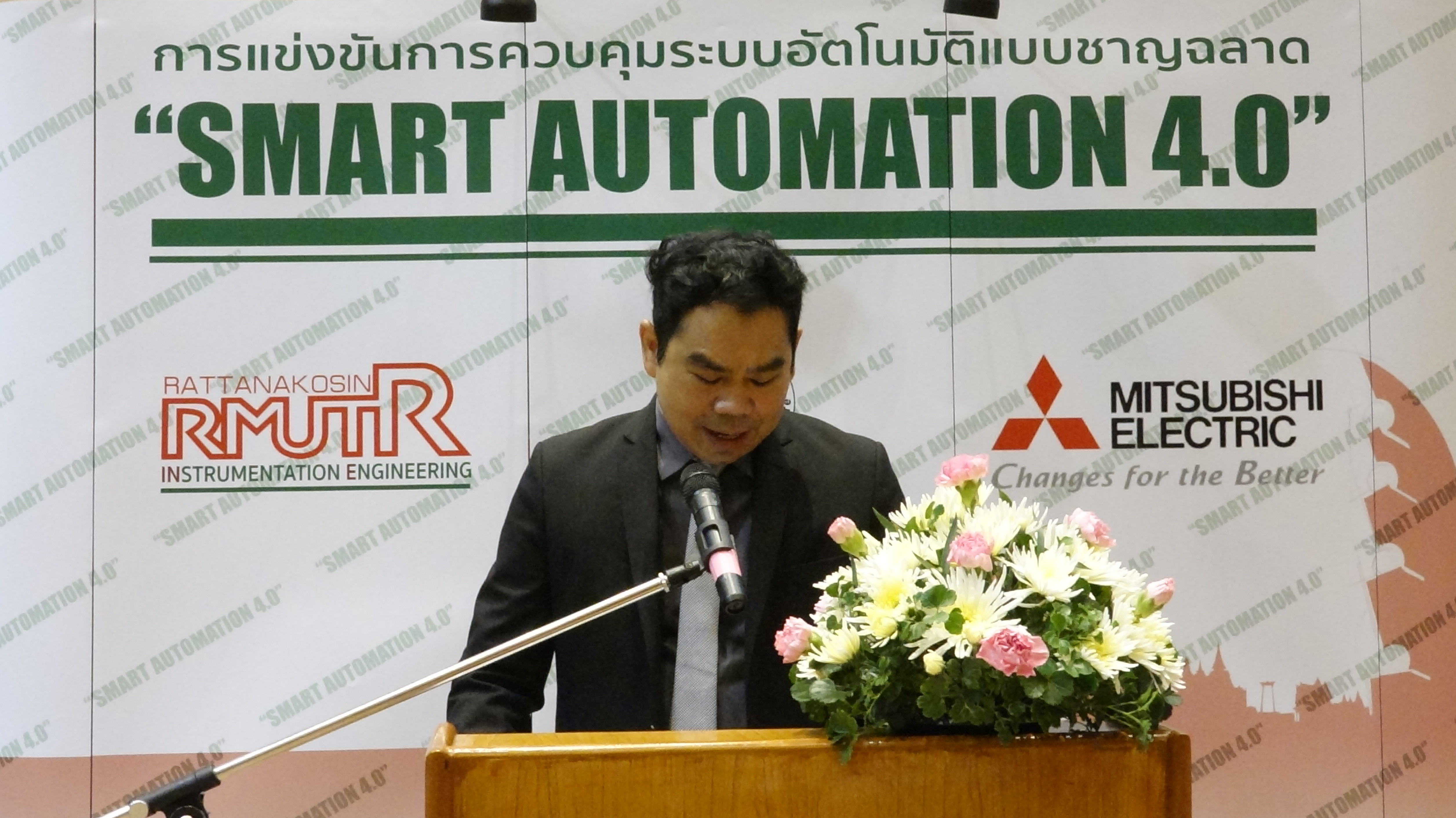 นายภิญโญ ประกอบผล รองผู้ว่าราชการจังหวัดนครปฐม เป็นประธานในพิธีเปิดการ “แข่งขัน การควบคุม ระบบอัตโนมัติแบบชาญฉลาด”หรือ SMART AUTOMATION 4.0 โดยมี ผศ.ดร.กฤชกนก สุทัศน์ ณ อยุธยา รองอธิการบดี มทร.รัตนโกสินทร์ กล่าวรายงาน วัตถุประสงค์ในการจัดการแข่งขัน พร้อมด้วยคณะอาจารย์ นักศึกษาจำนวน45 ทีม ร่วมการแข่งขัน ซึ่งจัดโดย คณะวิศวกรรมศาสตร์ สาขาวิชาวิศวกรรมการวัดคุม ร่วมกับบริษัท ออโต ไดแด๊กติก จำกัด บริษัท มิตซูบิชิ อีเล็คทริค แฟคทอรี่ ออโตเมชั่น (ประเทศไทย) จำกัด ร่วมกันจัดโครงการ “แข่งขัน การควบคุม ระบบอัตโนมัติแบบชาญฉลาด”หรือ SMART AUTOMATION 4.0 เพื่อสร้างเครือข่ายความร่วมมือมหาวิทยาลัย และภาคอุตสาหกรรมในการจัดกิจกรรม ส่งเสริมการเรียนรู้เกี่ยวกับการควบคุมด้วย PLC ในระบบอุตสาหกรรม 4.0 ในกลุ่มนักศึกษาระดับอุดมศึกษา ตลอดจนส่งเสริมให้นักศึกษามีทักษะและความชำนาญ ความคิดริเริ่มรู้จักแก้ไขปัญหาเฉพาะหน้า เพื่อนำไปใช้ในการเรียน และการทำงานในภาคอุตสาหกรรม