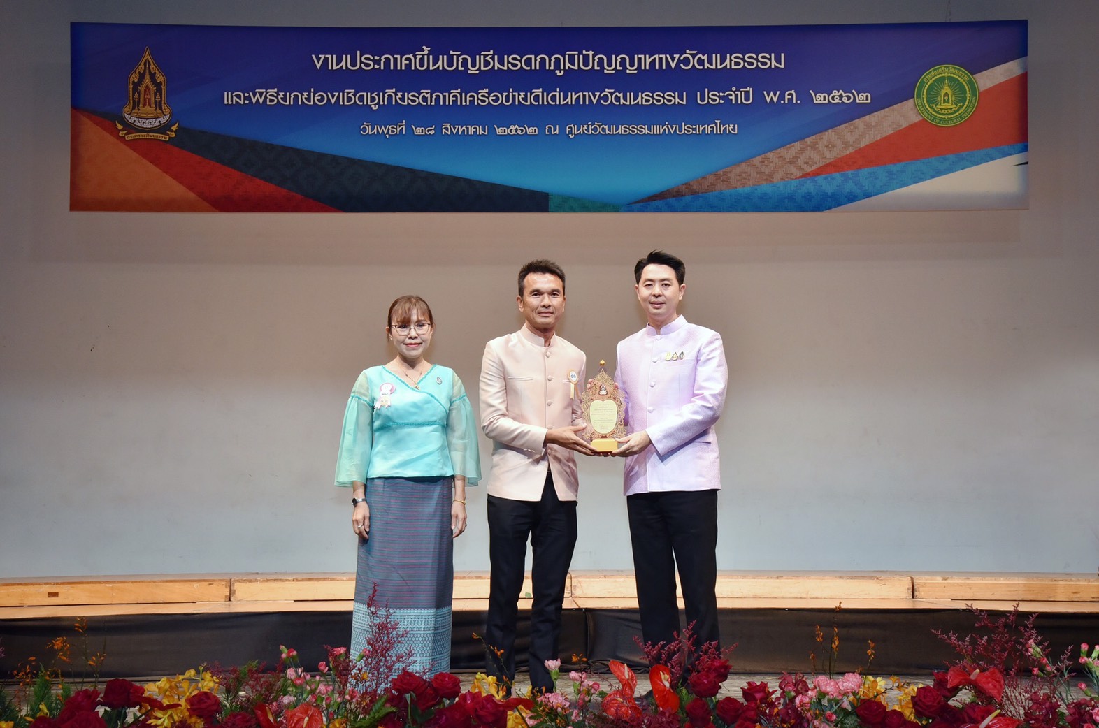 นายวีระ โรจน์พจนรัตน์ รัฐมนตรีว่การกระทรวงวัฒนรรมประธานในพิธี มอบรางวัล ในงานประกาศขึ้นบัญชีมรดกภูมิปัญญาทางวัฒธรรมและพิธียกย่องเชิดชูเกียรติภาคีเครือข่ายทางวัฒนธรรมประจำปี พ.ศ. 2562 โดยมีอธิบดีกรมส่งเสริมวัฒนธรรม กล่าวรายงานความเป็นมาการประกาศขึ้นบัญชีมรดกภูมิปัญญาทางวัฒนธรรมประจำปี พ.ศ. 2562และผลการคัดเลือกภาคีเครือข่ายทางวัฒนธรรม ประจำปี พ.ศ. 2562