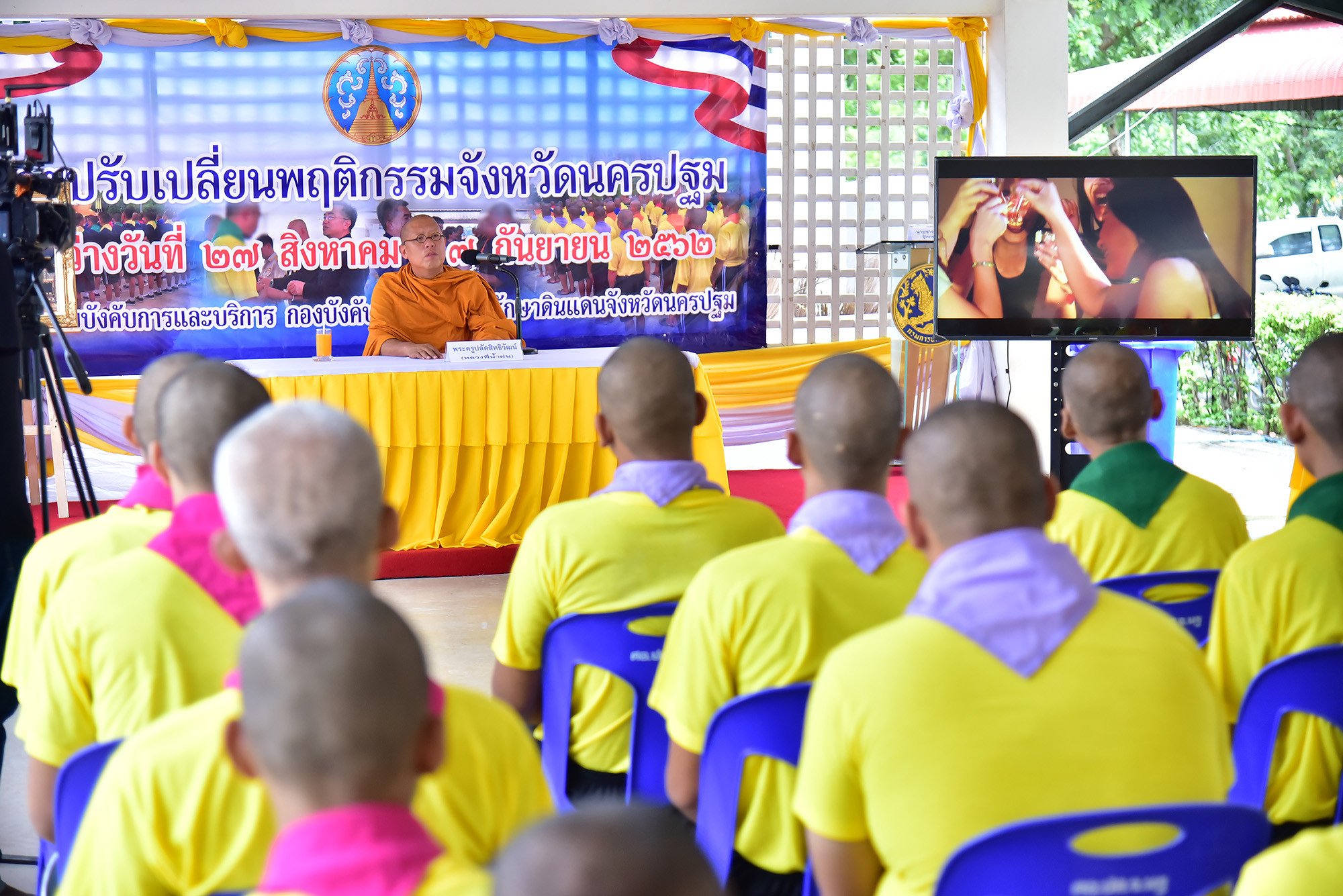 นครปฐม หลวงพี่น้ำฝน เจ้าอาวาสวัดไผ่ล้อม บรรยายธรรมให้แสงสว่างค่ายปรับเปลี่ยนพฤติกรรมรุ่นที่5เพื่อแก้ไขปัญหายาเสพติด โดยยึดหลักผู้เสพคือผู้ป่วยที่ต้องได้รับการบำบัดรักษาให้กลับมาเป็นคนดีของสังคมต่อไป