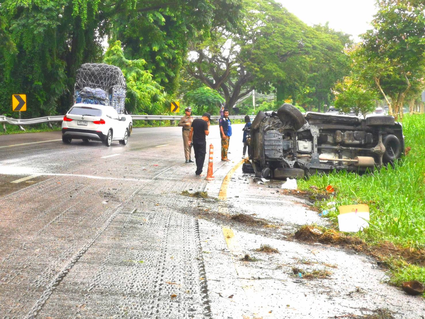 ประจวบคีรีขันธ์ เรือโทลูกประดู่ ควบกระบะคู่ใจพาครอบครัว เยี่ยมแม่ภาคใต้ ฝนตกถนนลื่นพลิกคว่ำหลายตลบ เดชะบุญ ห้อยหลวงพ่อพันธ์ รอดตายปาฏิหาริย์