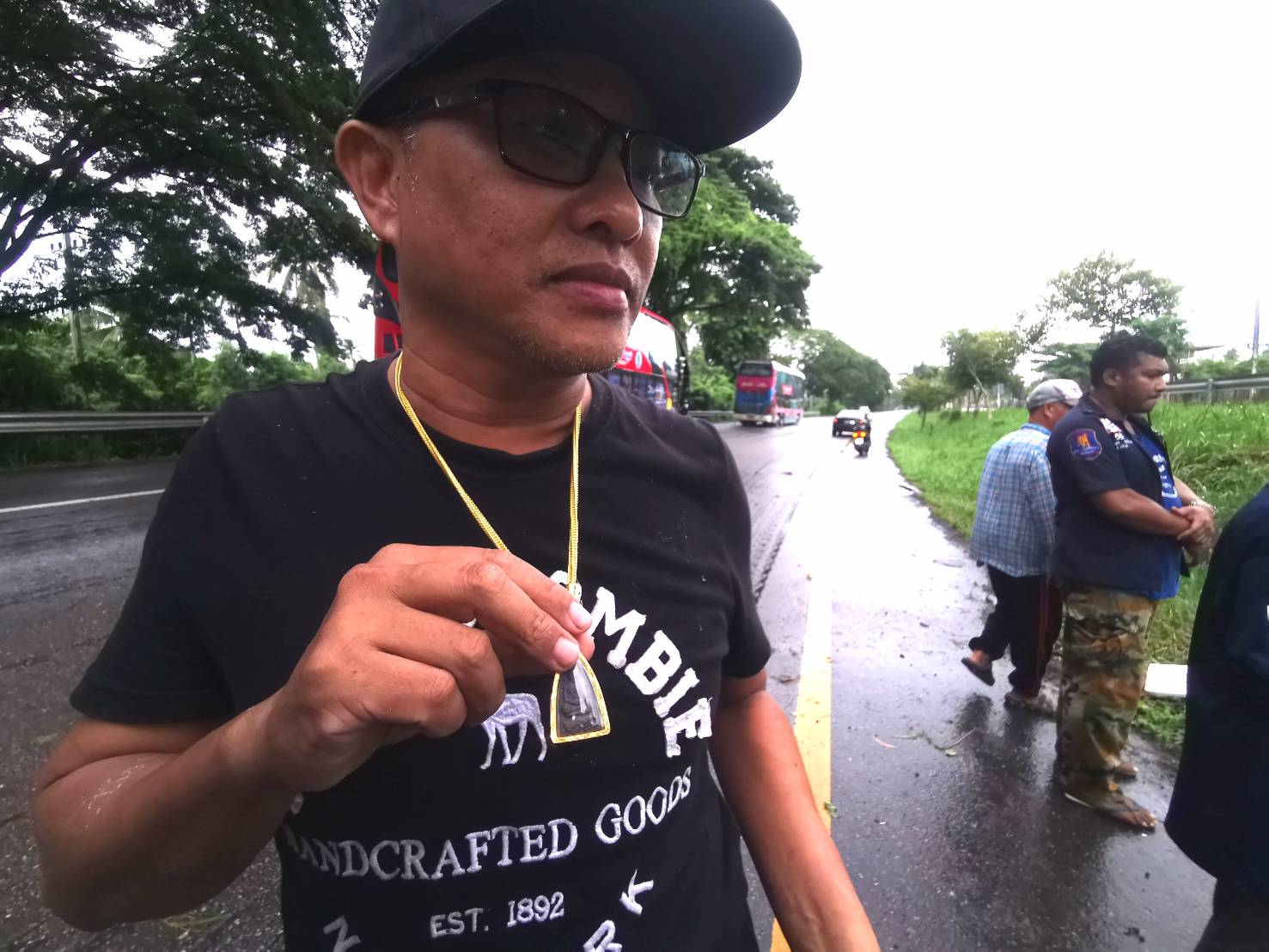 จากการสอบถาม ร.ท.มานิตย์ ทราบว่า ตนเองกำลังพาครอบครัว ภรรยา และบุตรชาย ลงไปเยี่ยมแม่ที่อำเภอหลังสวน จังหวัดชุมพร เมื่อมาถึงที่เกิดเหตุ จังหวะที่ ฝนตก ลงมาตลอดและถนนลื่นทำให้รถหมุนพลิกคว่ำดังกล่าว โดยเรือโท มานิตย์ ยังได้กล่าวอีกว่า เพราะได้บารมีหลวงพ่อพันธ์ แห่งวัด ในเขา อำเภอหลังสวน จังหวัดชุมพร ที่ตนเองนับถือห้อยคอ ซึ่งเมื่อวานนี้ ตนเองได้เอาไปเลี่ยมทอง และพึ่งนำมาห้อยคอ และก่อนเดินทางกลับบ้านได้ยกมือไว้ขอให้ตนเองเดินทางปลอดภัย ส่วนบุตรชายตนนั้นก็ยังห้อยคอหลวงพ่อพันธ์ และ พระที่บูชาหน้ารถ ก็เป็นหลวงพ่อพันธ์ ตนเองคิดว่าเพราะบารมีหลวงพ่อพันธ์ที่ตนเองนับถือทำให้ตนเองและครอบครัว ไม่ได้รับบาดเจ็บ แต่เมื่อดูสภาพรถแล้ว ก็ยังไม่เชื่อสายตา โดยชาวบ้านที่ได้มามุงดูที่เกิดเหตุ ก็พูดเป็นเสียงเดียวกันว่า ไม่น่าเชื่อว่า รอดปาฏิหาริย์จริงๆ