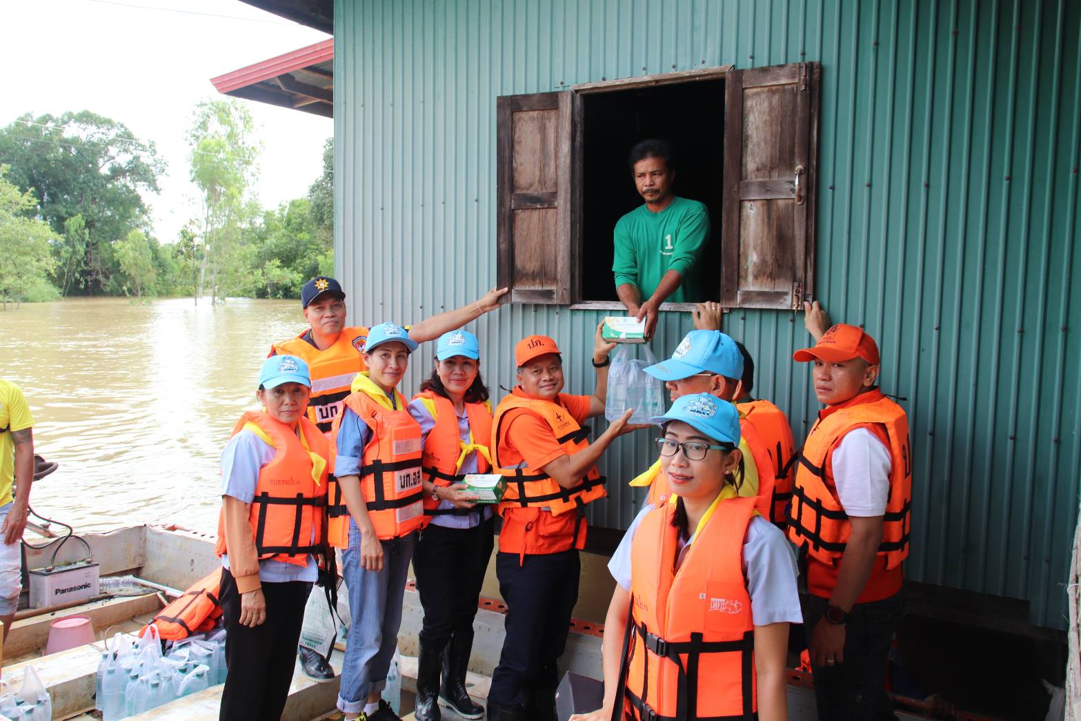 จังหวัดอุบลราชธานี นำเครื่องอุปโภคบริโภคยาเวชภัณฑ์และน้ำดื่มช่วยเหลือราษฎรที่ประสบภัยน้ำท่วม ผลกระทบจากพายุ”โพดุล”