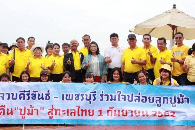 ในวันอาทิตย์ที่ 1 กันยายน 2562 ผศ.นภาพร นาคทิม รองอธิการบดีประจำวิทยาเขตวังไกลกังวล อาจารย์คงศักดิ์ นาคทิม รองอธิการบดี คณาจารย์ เจ้าหน้าที่ และนักศึกษา มทร.รัตนโกสินทร์ วิทยาเขตวังไกลกังวล เข้าร่วมกิจกรรม “ชาวประจวบฯ – เพชรบุรี ปล่อยพันธุ์สัตว์น้ำและลูกปูม้า คืนปูม้าสู่ทะเลไทย” โดยมี น.ส.สุกัญญา ธีระกูรณ์เลิศ ประธานคณะทำงานการขยายผลกิจกรรมธนาคารปูม้า สำนักงานการวิจัยแห่งชาติ (วช.) เป็นประธานเปิดกิจกรรม ปล่อยพันธุ์ปูม้าจำนวน 50 ล้านตัว ลูกปูม้า 200 ตัว และแมงดาทะเล 50 ตัวลงสู่ทะเล ณ บริเวณชายหาดหน้าอาคารปฏิบัติการการโรงแรมและการท่องเที่ยว (ราชมงคลชมคลื่น)