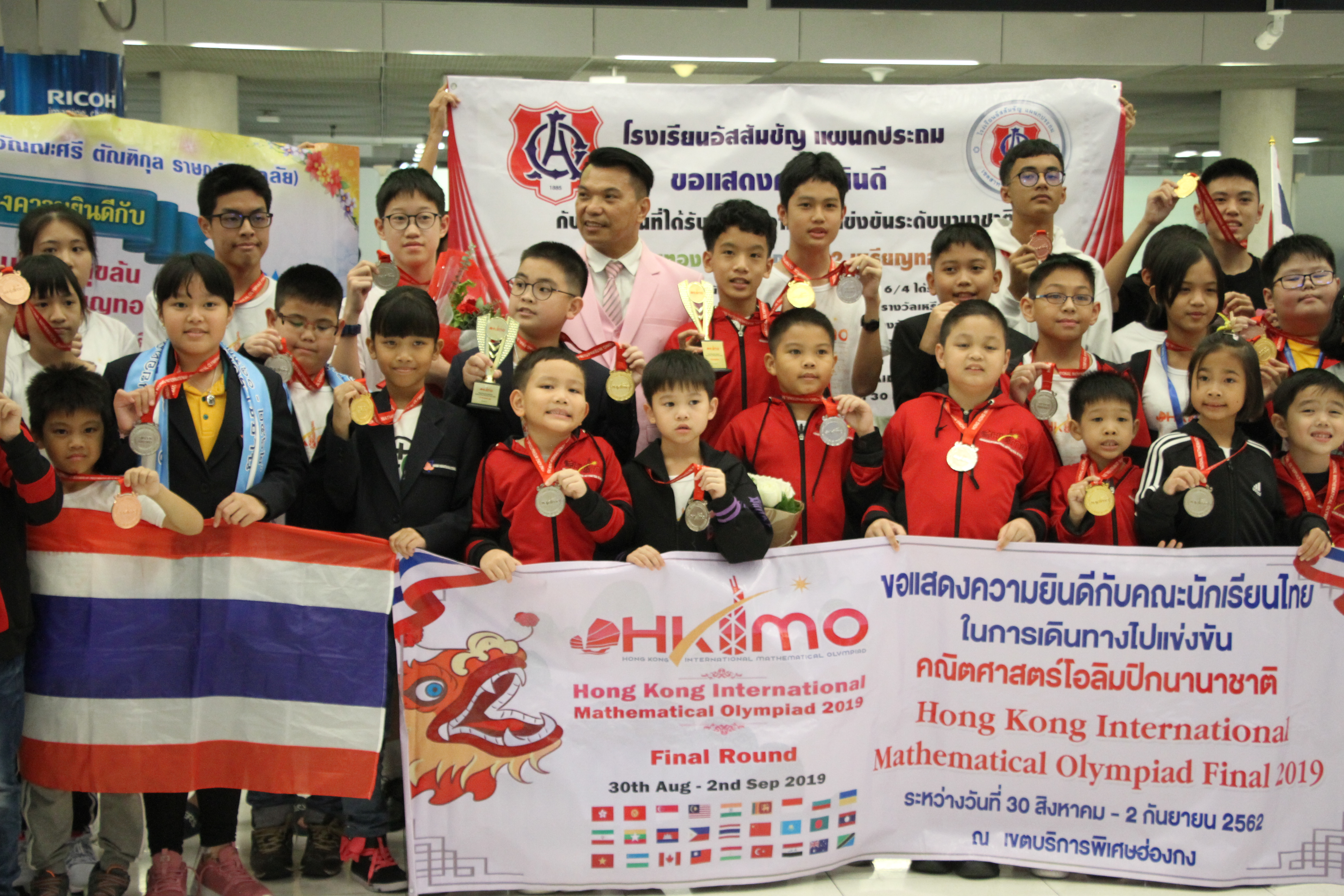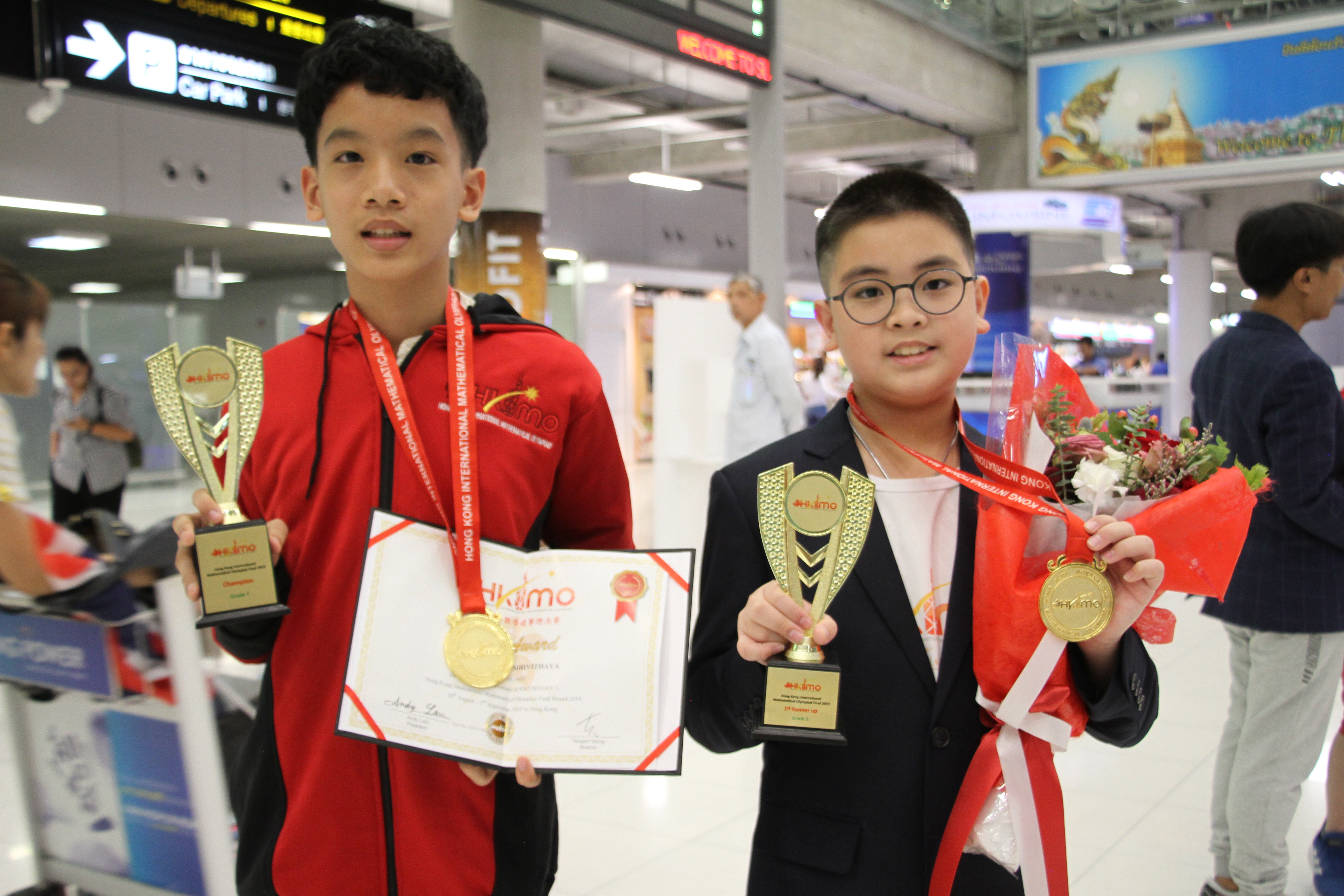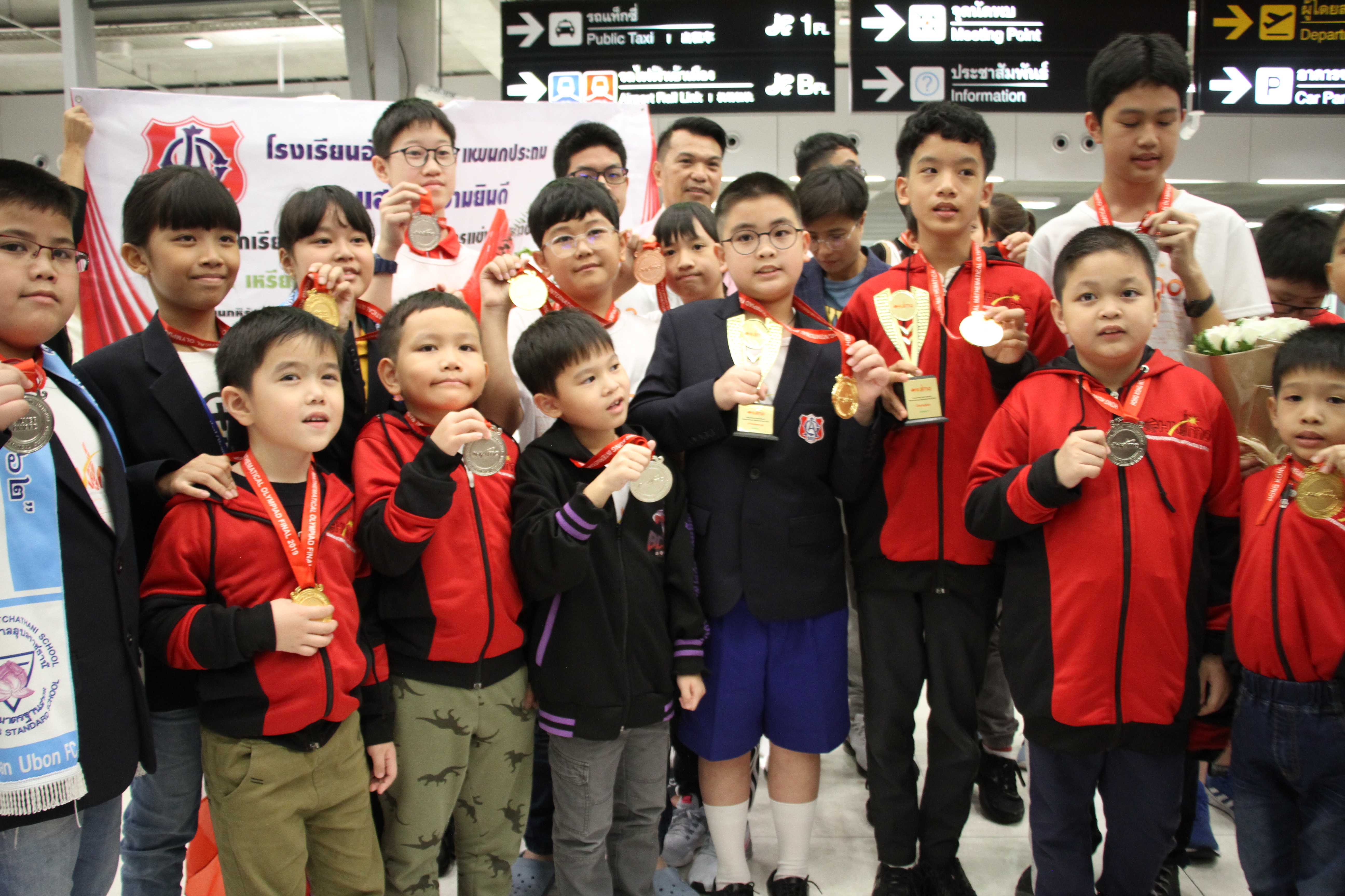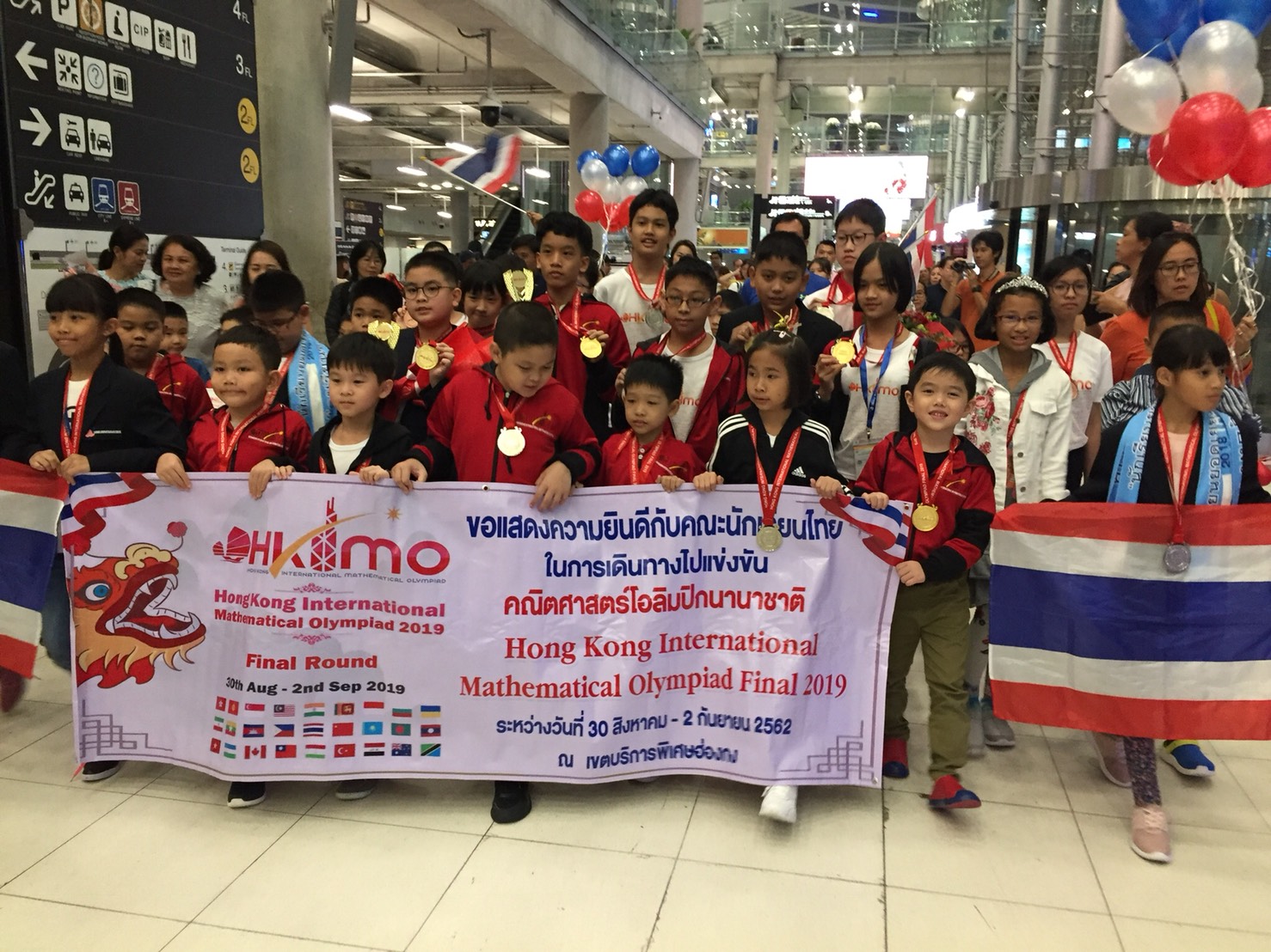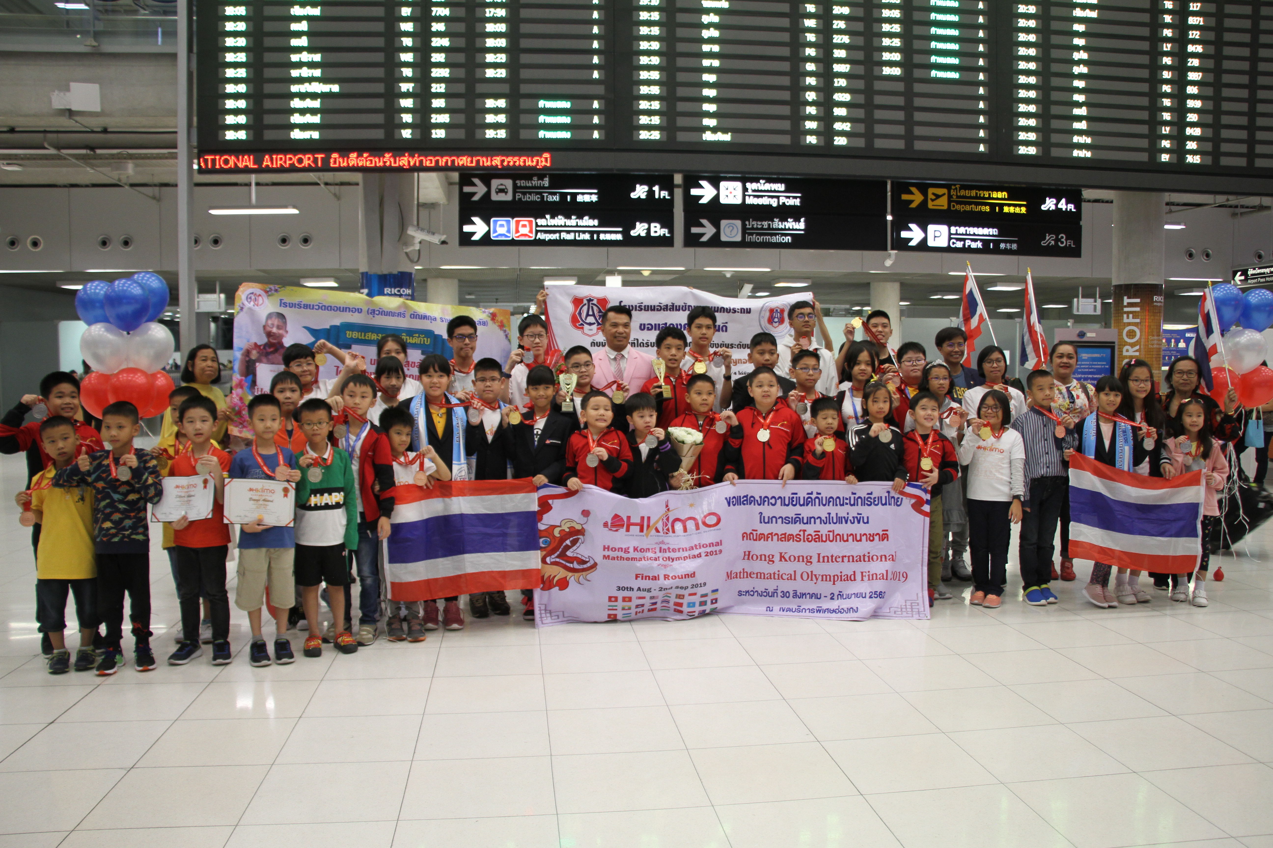***** เมื่อวันที่ 2 กันยายน 2562 เวลา 18.30น.ที่สนามบินสุวรรณภูมิ อ.บางพลี จ.สมุทรปราการ Mr. Robert Fordan เลขาธิการของ Olympiad Champion Education Center (OCEC) พร้อมคณะนักเรียน เดินทางกลับถึงประเทศไทยเที่ยวบินที่ TG629 เครื่องลงเวลา 17.30 น. หลังจากเดินทางไปร่วมการแข่งขันคณิตศาสตร์นานาชาติ ในรายการ Hongkong International Mathematics Olympiad (HKIMO) 2019 Final Round ที่เขตบริหารพิเศษฮ่องกง สาธารณรัฐประชาชนจีน ระหว่างวันที่ 30 สิงหาคม – 2 กันยายน 2562 โดยมี ผู้ปกครองและครู รอรับและร่วมแสดงความยินดี