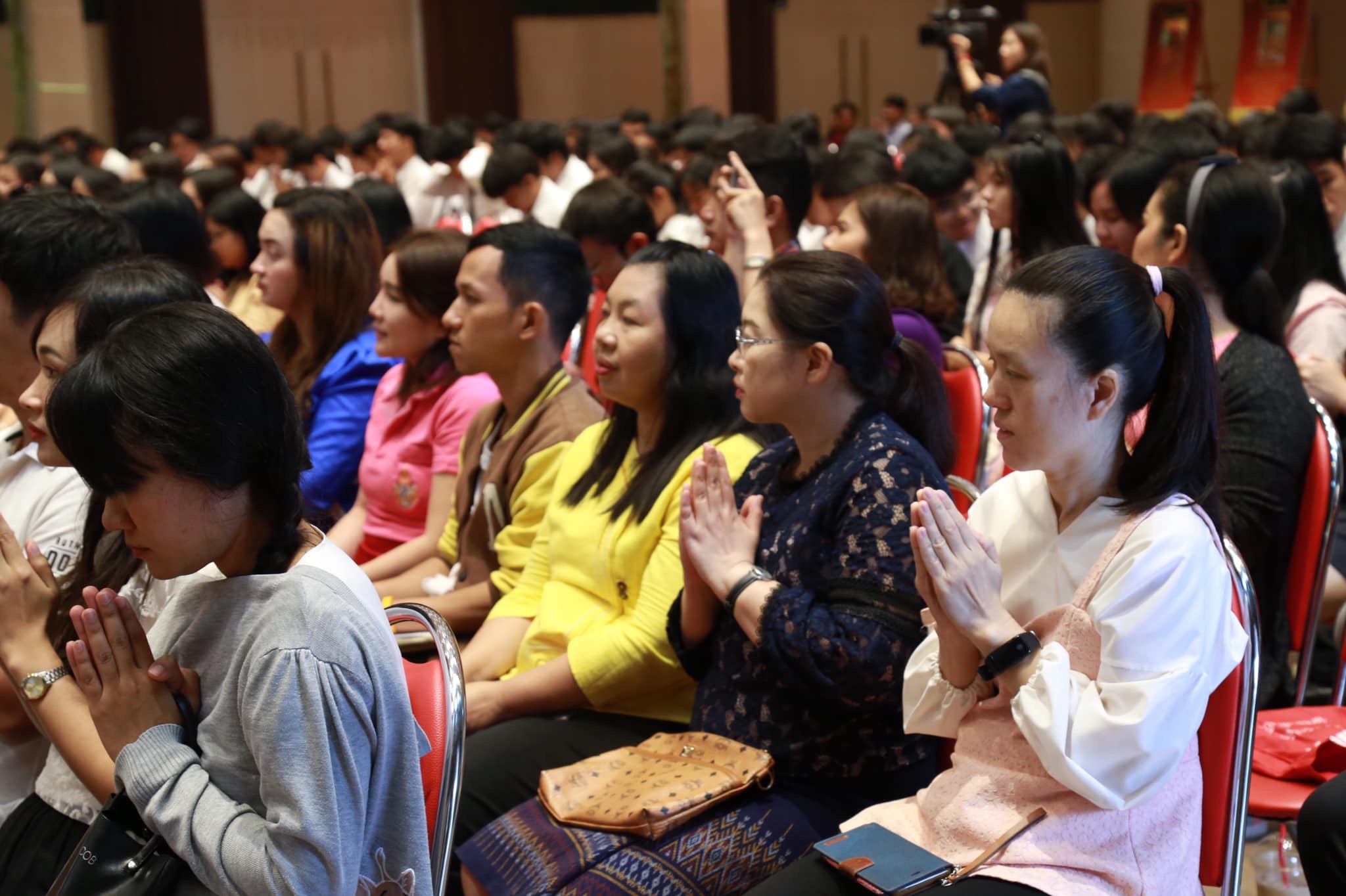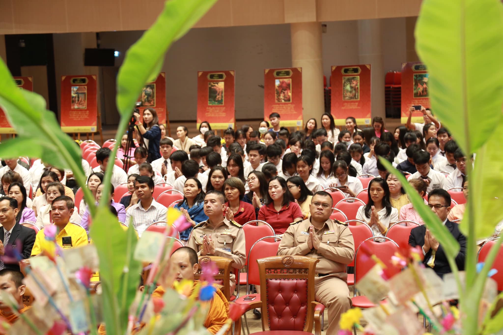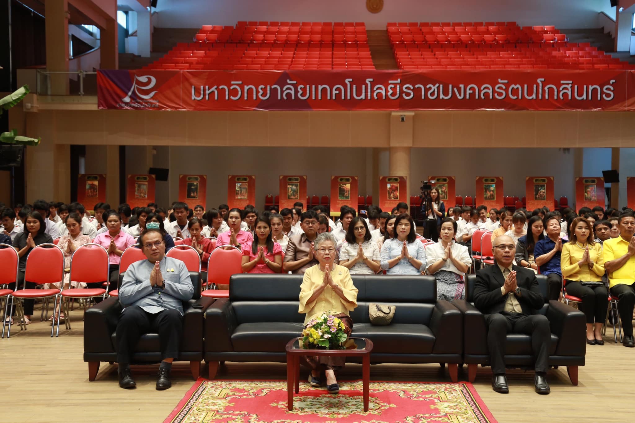 อาจารย์วัชรี จิวาลักษณ์ รองอธิการบดีมทร.รัตนโกสินทร์พื้นที่ศาลายาเป็นประธานเปิดโครงการค่ายจริยธรรมคุณธรรมเรื่อง“การส่งเสริมจริยธรรมคุณธรรมในสังคมไทยเทศน์มหาชาติ13 กัณฑ์พันพระคาถา” เพื่อเสริมสร้างให้อาจารย์บุคลากรนักศึกษาและประชาชนทั่วไปบริเวณใกล้เคียงทั้งหน่วยงานภายในและภายนอกได้พัฒนาคุณภาพชีวิตและจิตใจมีศีลธรรมอันดีงามยึดมั่นในพระพุทธศาสนา