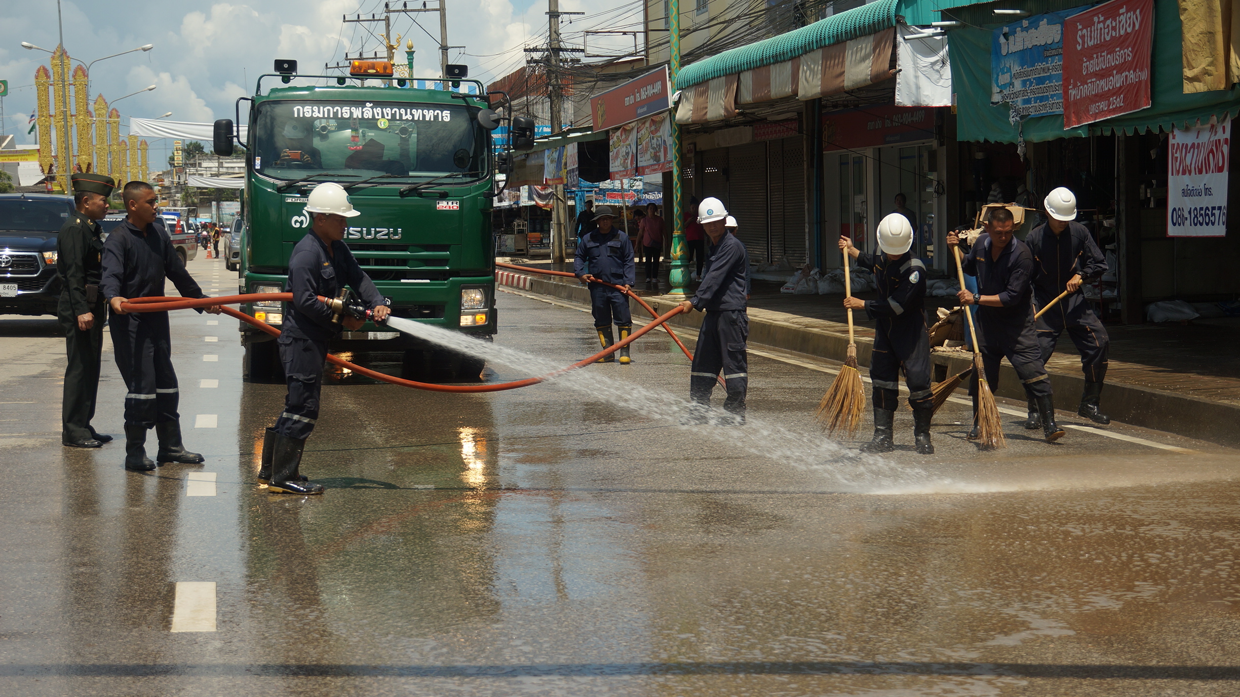 นำชุดจิตอาสาเข้าทำการช่วยเหลือประชาชนและสังคมโดยการนำกำลังพล50 นาย และรถน้ำอีก4 คัน ซึ่งบรรจุน้ำได้คันละ20,000 ลิตร เข้าร่วมกับเทศบาลตำบลเวียงฝางเพื่อทำการล้างทำความสะอาดในพื้นที่บริเวณที่ถูกน้ำท่วม ซึ่งได้ใช้เวลาประมาณ 2 วันถึงจะแล้วเสร็จ โดยใช้รถน้ำทั้งหมดจำนวน 6 คัน และยังมีเจ้าหน้าที่จากเทศบาลตำบลเวียงฝาง และเจ้าหน้าที่อาสารักษาดินแดนฝาง เจ้าหน้าที่ตำรวจสถานีตำรวจภูธรฝาง ได้เข้าร่วมและอำนวยความสะดวกในการที่ทำความสะอาด