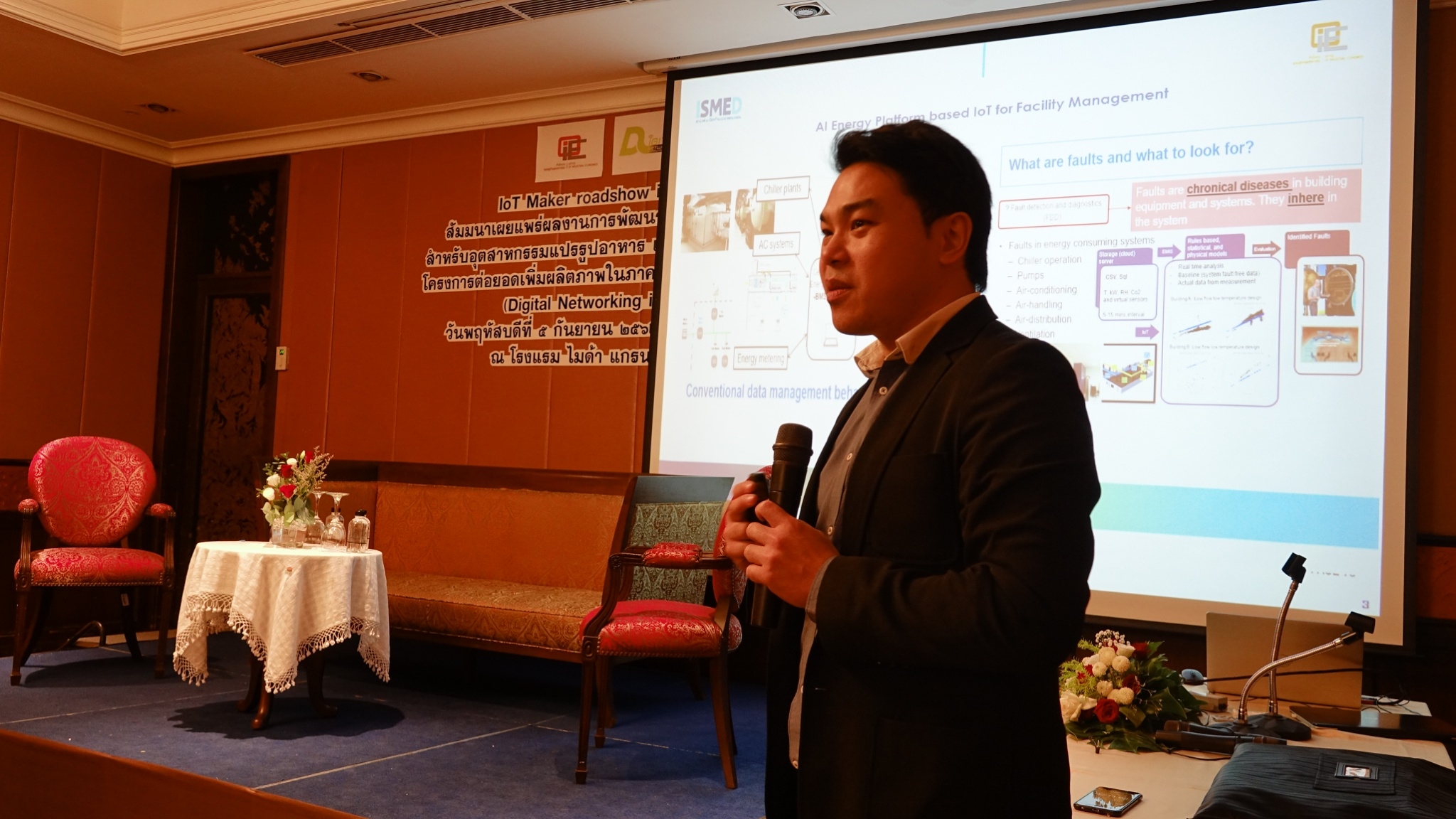 นายธนันธน์ อภิวันทนาพร ผู้อำนวยการฝ่ายพัฒนาธุรกิจต่างประเทศและการตลาด ISMED เปิดเผยว่า จากการดำเนินโครงการต่อยอดเพิ่มผลิตภาพในภาคอุตสาหกรรมด้วยเครือข่ายดิจิทัล สถาบันพัฒนาวิสาหกิจขนาดกลางและขนาดย่อม หรือ ISMED เล็งเห็นถึงความสำคัญของเครือข่ายนักพัฒนาเทคโนโลยี Internet of Thing จากกระบวนการพัฒนาที่ผ่านมา รูปแบบเทคโนโลยีที่นักพัฒนาได้จัดทำขึ้นผนวกกระบวนการแก้ปัญหาในอุตสาหกรรมแปรรูปอาหารตลอดระยะเวลาการดำเนินงานโครงการฯ สถาบันฯ จึงกำหนดจัดงานสัมมนาแนะนำเครือข่ายนักพัฒนาเทคโนโลยี Internet of Thing ขึ้น 4 ภูมิภาค ได้แก่ เชียงใหม่ ขอนแก่น ชลบึรี และ นครปฐม เพื่อสร้างการรับรู้และเข้าถึงเทคโนโลยี สำหรับอุตสาหกรรมแปรรูปอาหารที่กระจายอยู่ในส่วนภูมิภาคและแนะนำเครือข่าย IoT maker ที่เหมาะสมกับปัญหาอุตสาหกรรมแปรรูปอาหาร ตามพื้นที่ตั้งของอุตสาหกรรมและประชาสัมพันธ์สร้างการรับรู้ถึงแพลตฟอร์มเครือข่ายดิจิทัล www.digitaltechmaker.com ที่ช่วยให้ภาคอุตสาหกรรมไทย สามารถเข้าถึงนักพัฒนาเทคโนโลยี Internet of Thing (IoT) ได้ง่าย โดยสามารถรับชมผลงานการพัฒนาที่ผ่านมา เพื่อเป็นการส่งเสริมช่องทางการตลาดและสร้างการรับรู้ สนับสนุนให้อุตสาหกรรมและภาคผลิตระดับ SMEs ไทย เชื่อมต่อกันกับผู้พัฒนา IoT ได้บนแพลตฟอร์ม ดังกล่าว ซึ่งจะช่วยขับเคลื่อนโรงงานอุตสาหกรรมรวมถึงภาคการผลิตในส่วน SME เข้าสู่ยุค 4.0 ด้วยเทคโนโลยีดิจิทัลต่อไป