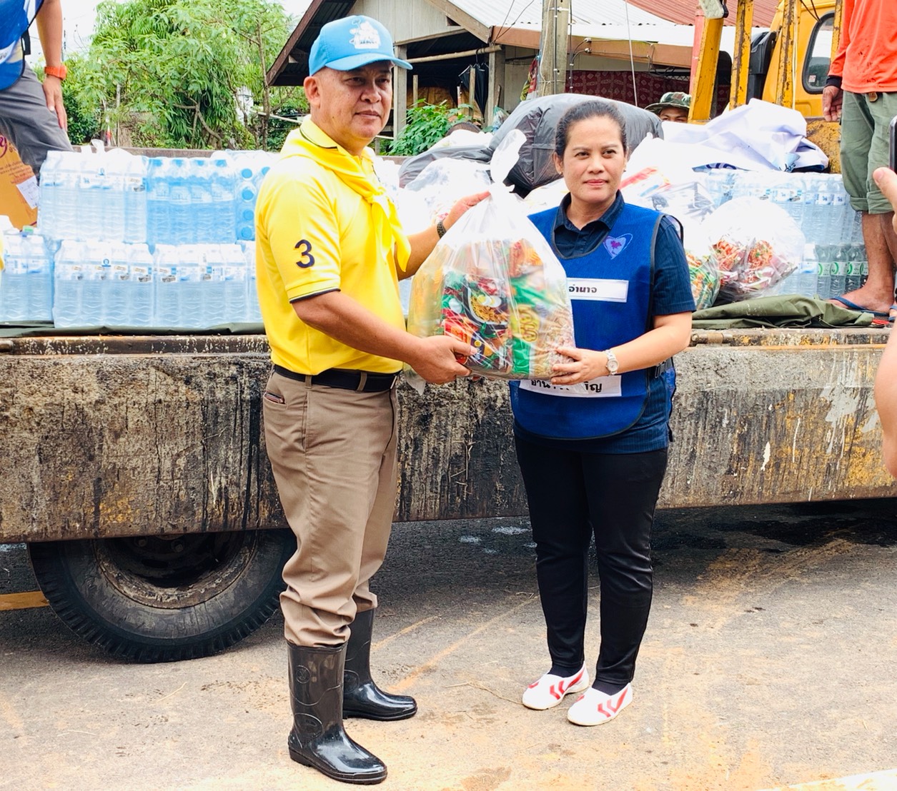 ได้มอบเครื่องอุปโภค บริโภค ถุงยังชีพมาช่วยเหลือผู้ประสบภัยน้ำท่วม