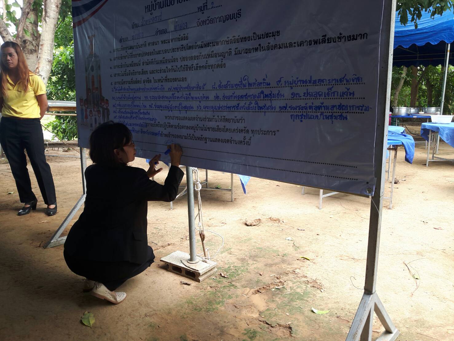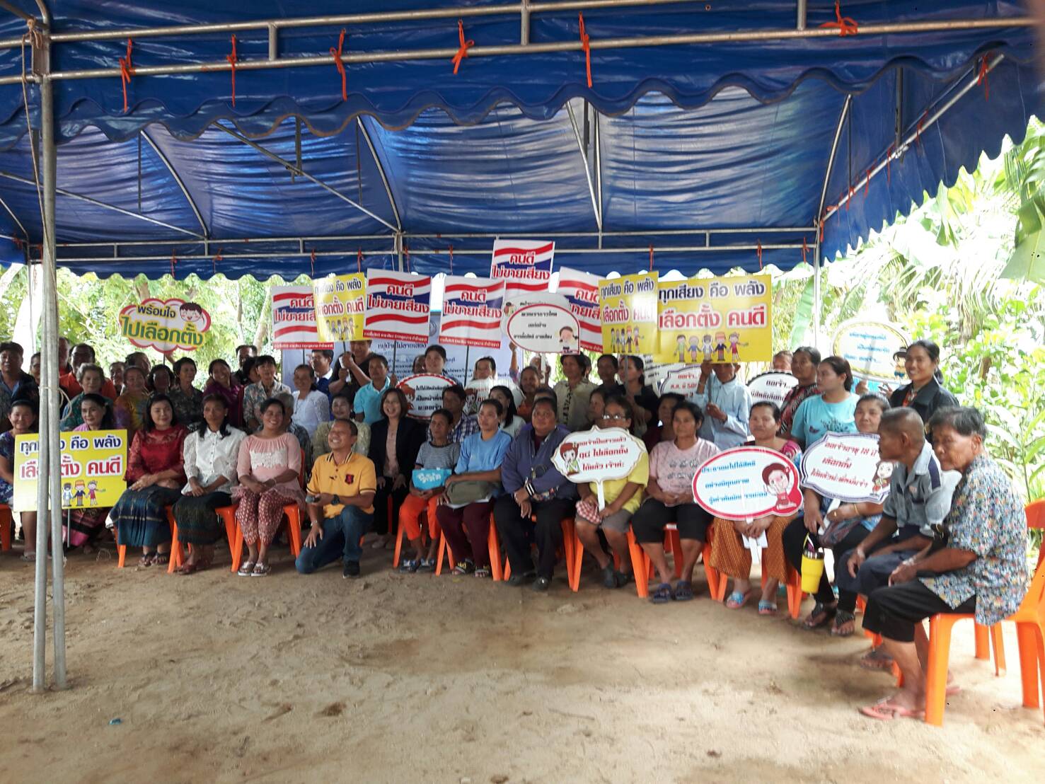 ทั้งนี้เพื่อเป็นการกระตุ้นเตือนให้ประชาชนในหมู่บ้าน ร่วมกันรณรงค์ไม่ซื้อสิทธิขายเสียง ส่งผลให้การเลือกตั้งเกิดความสุจริต โปร่งใสและเที่ยงธรรม ตลอดจนส่งเสริมและสนับสนุนให้ประชาชนในหมู่บ้าน เข้ามามีส่วนร่วมทางการเมือง ในกระบวนการเลือกตั้งและการออกเสียงประชามติส่งเสริมให้การเลือกตั้งท้องถิ่นที่จะเกิดขึ้นในอนาคต เป็นการเลือกตั้งคุณภาพที่ไม่มีการทุจริต ซื้อสิทธิขายเสียง ประชาชนไปใช้สิทธิ มีส่วนร่วมทางการเมือง สามารถเลือกผู้แทนที่ดีมีคุณภาพต่อไป ในการนี้ผู้นำชุมชน และประชาชนในพื้นที่ ได้ลงนามไว้เป็นหลักฐานแสดงเจตจำนงในครั้งนี้…..