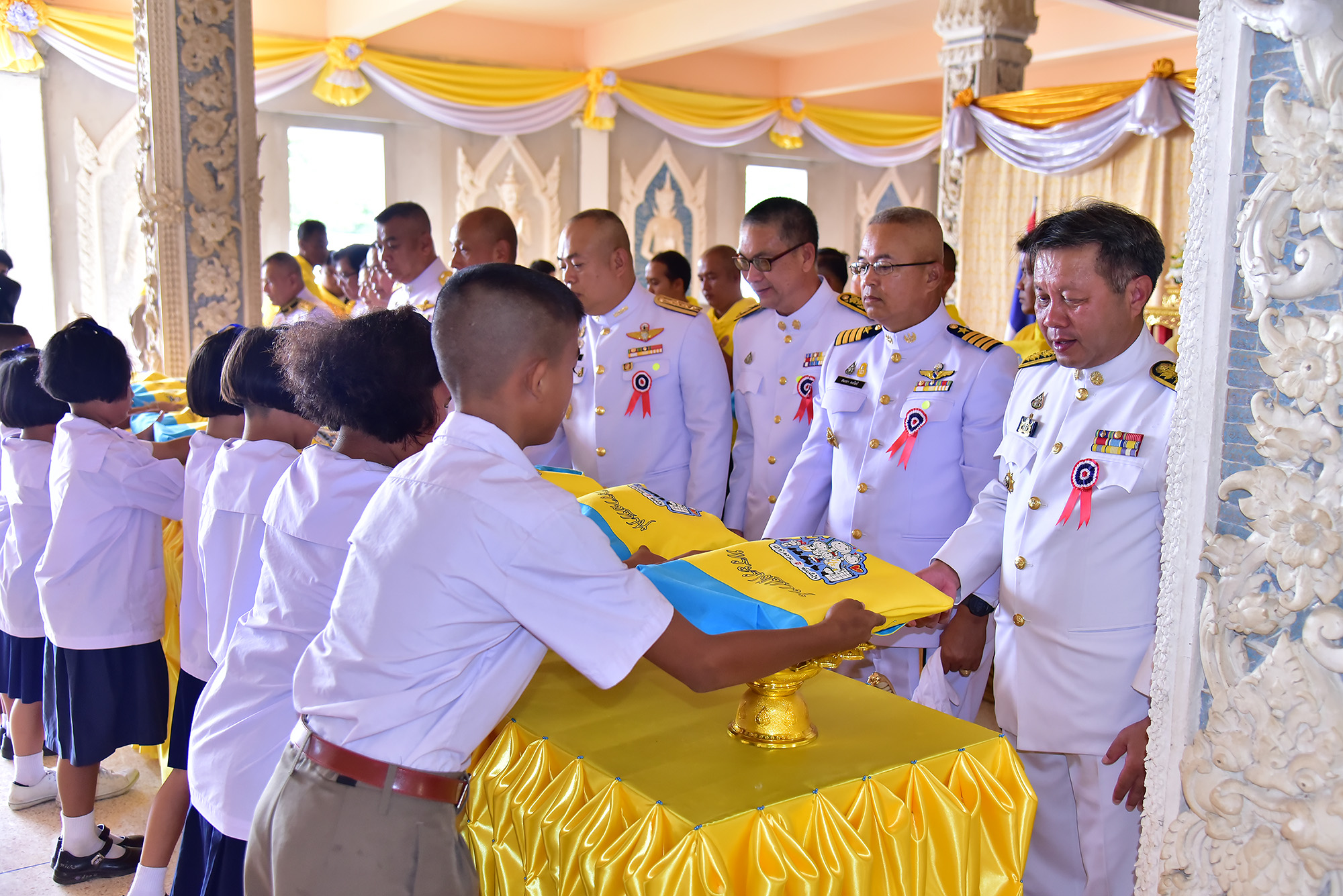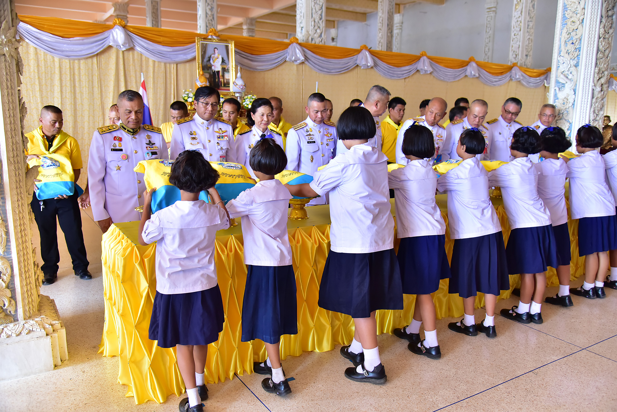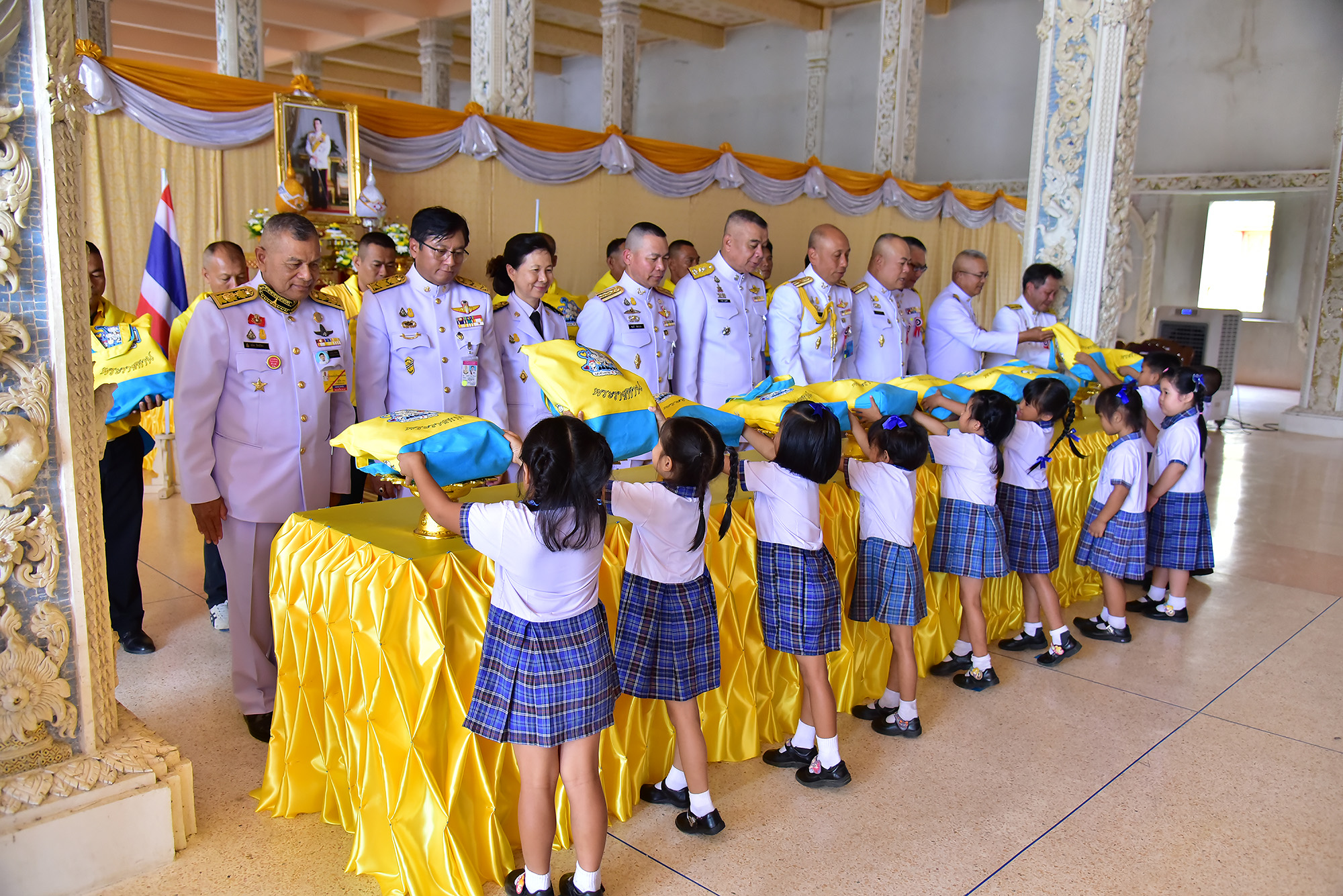 พระบาทสมเด็จพระเจ้าอยู่หัวฯ ทรงพระกรุณาโปรดเกล้าโปรดกระหม่อม ให้ผู้แทนพระองค์อัญเชิญผ้าไตร สังฆทาน และเครื่องไทยธรรมพระราชทาน ถวายแด่พระสงฆ์ และทรงพระกรุณาโปรดเกล้าโปรดกระหม่อม ให้ผู้อัญเชิญกระเป๋าเครื่องเขียนพระราชทาน มอบให้แก่นักเรียน ที่จังหวัดนครปฐม