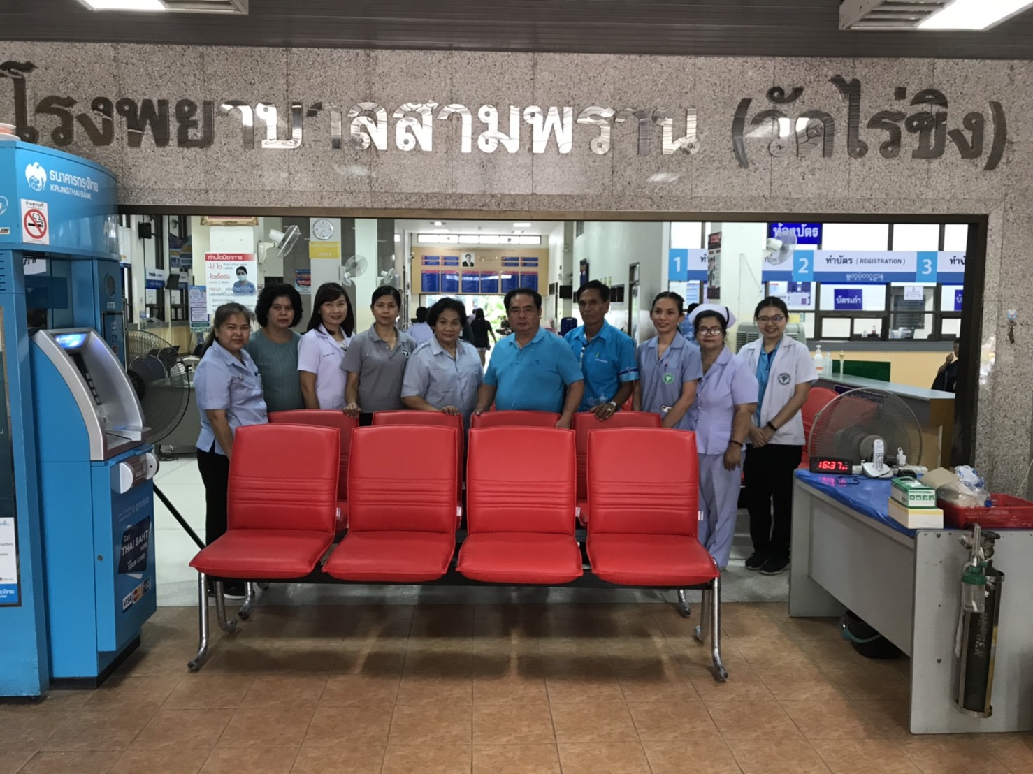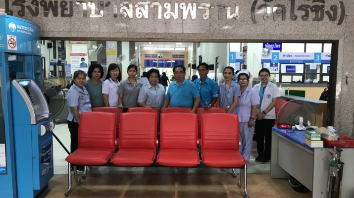 กองบุญเมืองไร่ขิงมอบเก้าอี้นวมให้โรงพยาบาลสามพรานและรพ.สต.บ้านท่าพูด