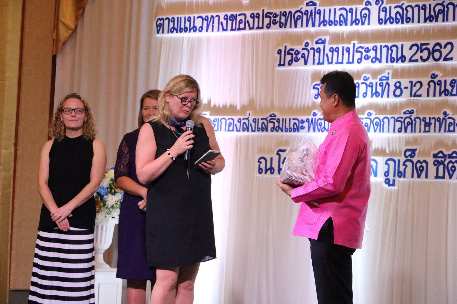 ในวันนี้ จึงนับว่าเป็นสิ่งที่น่ายินดีเป็นอย่างยิ่งที่ทุกท่านได้มีโอกาสเข้าร่วม “โครงการประชุมสัมมนาเชิงปฏิบัติการเพื่อพัฒนาศักยภาพครูสู่การบูรณาการเรียนรู้ ตามแนวทางของประเทศฟินแลนด์ ในสถานศึกษาสังกัดองค์กรปกครองส่วนท้องถิ่น” นี้ ก็ต้องขอขอบคุณ ท่านนพพร อัจฉริยวนิช เอกอัครราชทูต ณ กรุงเฮลซิงกิ ประเทศฟินแลนด์ ที่เป็นคนแรกที่กรุณาแนะนำ และส่งเสริมให้ สถ. ได้มีโอกาสนำแนวทางการจัดการเรียนการสอนของประเทศฟินแลนด์มาสู่เด็กๆในท้องถิ่น และขอขอบคุณคณะครูจากประเทศฟินแลนด์ทุกท่าน ขอขอบคุณผู้บริหารองค์กรปกครองส่วนท้องถิ่น ผู้อำนวยการสำนัก/กองการศึกษา ผู้บริหารสถานศึกษา ครู และบุคลากรทางการศึกษาในสังกัดองค์กรปกครองส่วนท้องถิ่น และผู้มีส่วนเกี่ยวข้องทุกท่าน ที่ได้ร่วมกันพัฒนาศักยภาพครูเพื่อคุณภาพของนักเรียน ให้เด็กๆ ลูกหลานของเรา ได้มีโอกาสรับการศึกษาที่ดี มีแนวทางในการเรียนรู้ที่ดี เป็นหนทางเพื่อต่อยอดให้เติบโตไปเป็นผู้ใหญ่ที่มีคุณภาพของประเทศไทยในอนาคต นายสุทธิพงษ์กล่าว