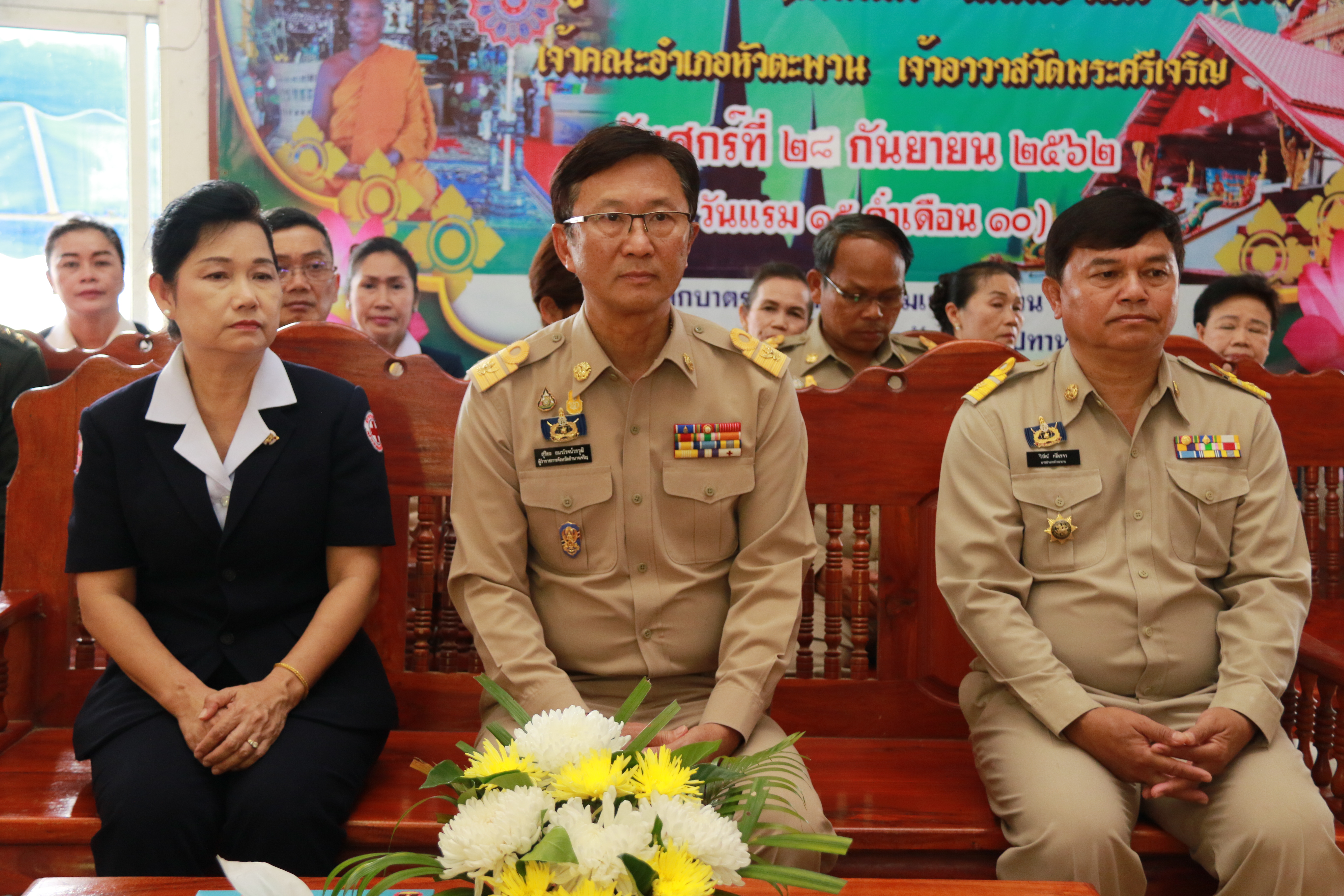 จากนั้นผู้ว่าราชการจังหวัดอำนาจเจริญ พร้อมคณะได้เดินทางไปที่วัดพระศรีเจริญ อำเภอหัวตะพาน จังหวัดอำนาจเจริญ เพื่อมอบถุงยังชีพพระราชทาน มูลนิธิอาสาเพื่อนพึ่ง ภาฯ ยามยาก สภากาชาดไทย