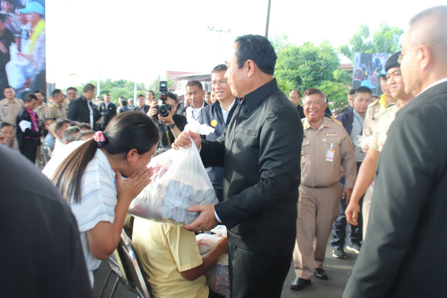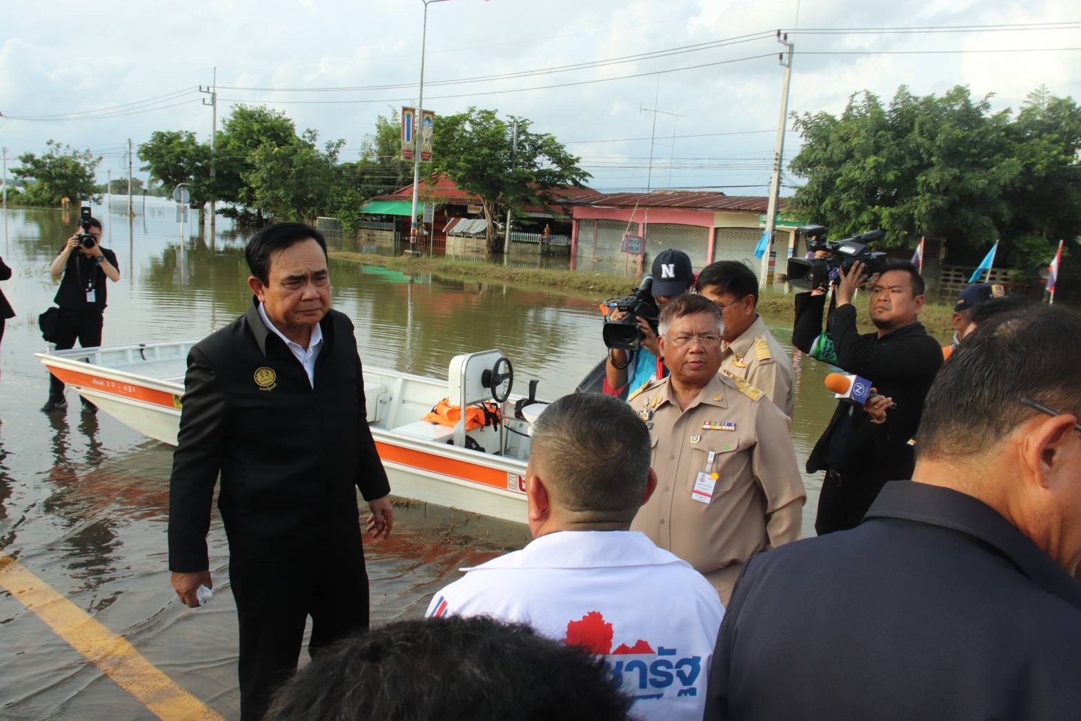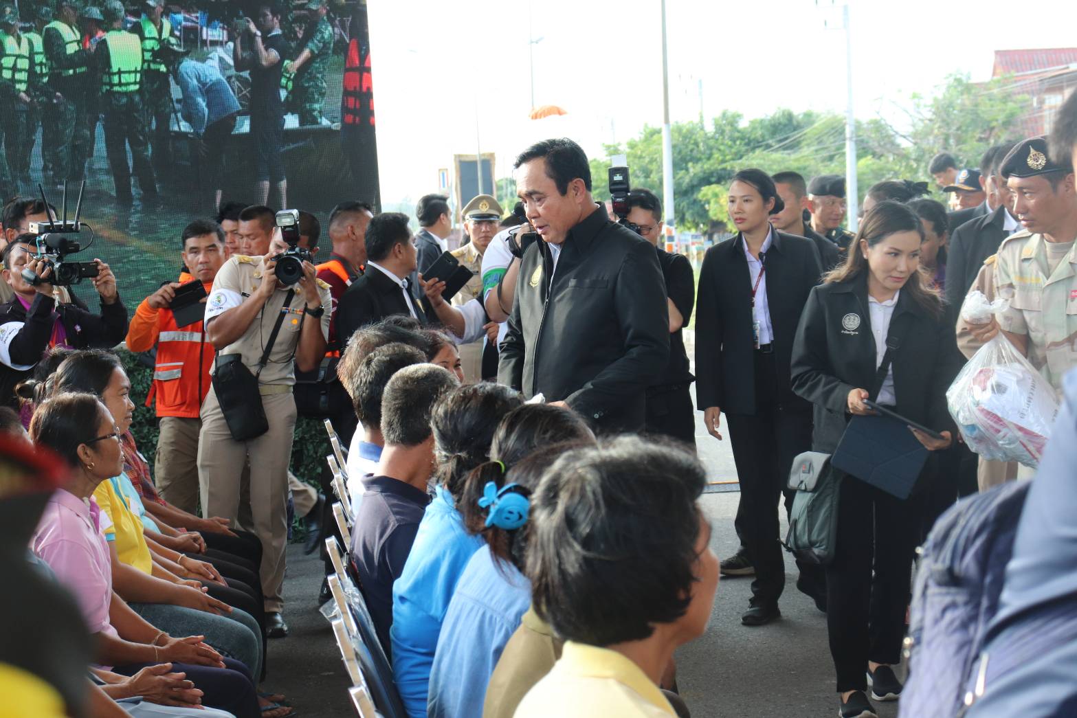 นายกรัฐมนตรี ได้กล่าวทักท้ายประชาชน โดยรู้ว่าทุกคนลำบาก ทุกคนเดือดร้อน ก็เป็นห่วงทุกจังหวัด ที่ได้รับผลกระทบจากพายุ ส่วนการซ่อมแซมต้องรอให้น้ำลด รัฐบาลมีความห่วงใย ซึ่งพระบาทสมเด็จพระเจ้าอยู่หัว และสถาบันทุกพระองค์มีความห่วงใย และมีพระมหากรุณาธิคุณพระราชทานสิ่งของช่วยเหลือ พร้อมกันนี้ ทุกอย่างรัฐบาลดูแลให้ตามขั้นตอน กติกา และยืนยันว่า รัฐบาลจะใช้เม็ดเงินในการดูแลที่เกิดประโยชน์สูงสุด